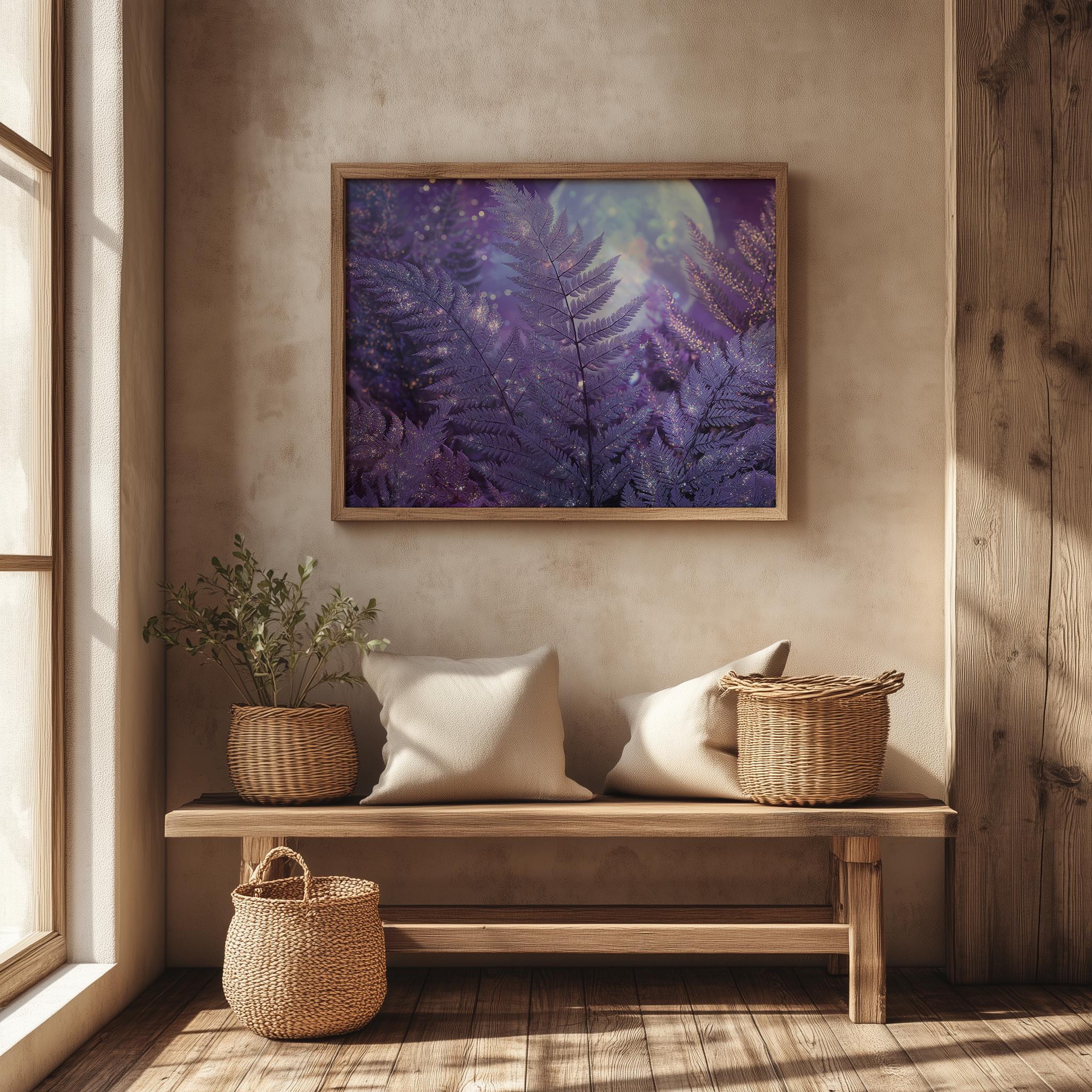 Purple Abstract Fern Art Print - A Mystical Touch for Your Walls This stunning Purple Abstract Fern Art Print captures the essence of nature with its rich botanicals and moody atmosphere. Perfect for adding a touch of mystique to any room, this printable wall art showcases oversized glowing ferns that transform your space into a serene oasis. Whether you're looking to enhance your rustic home or embrace a cottagecore aesthetic, this digital print is designed to inspire and uplift. Ideal for all seasons, bringing a sense of tranquility and beauty year-round.