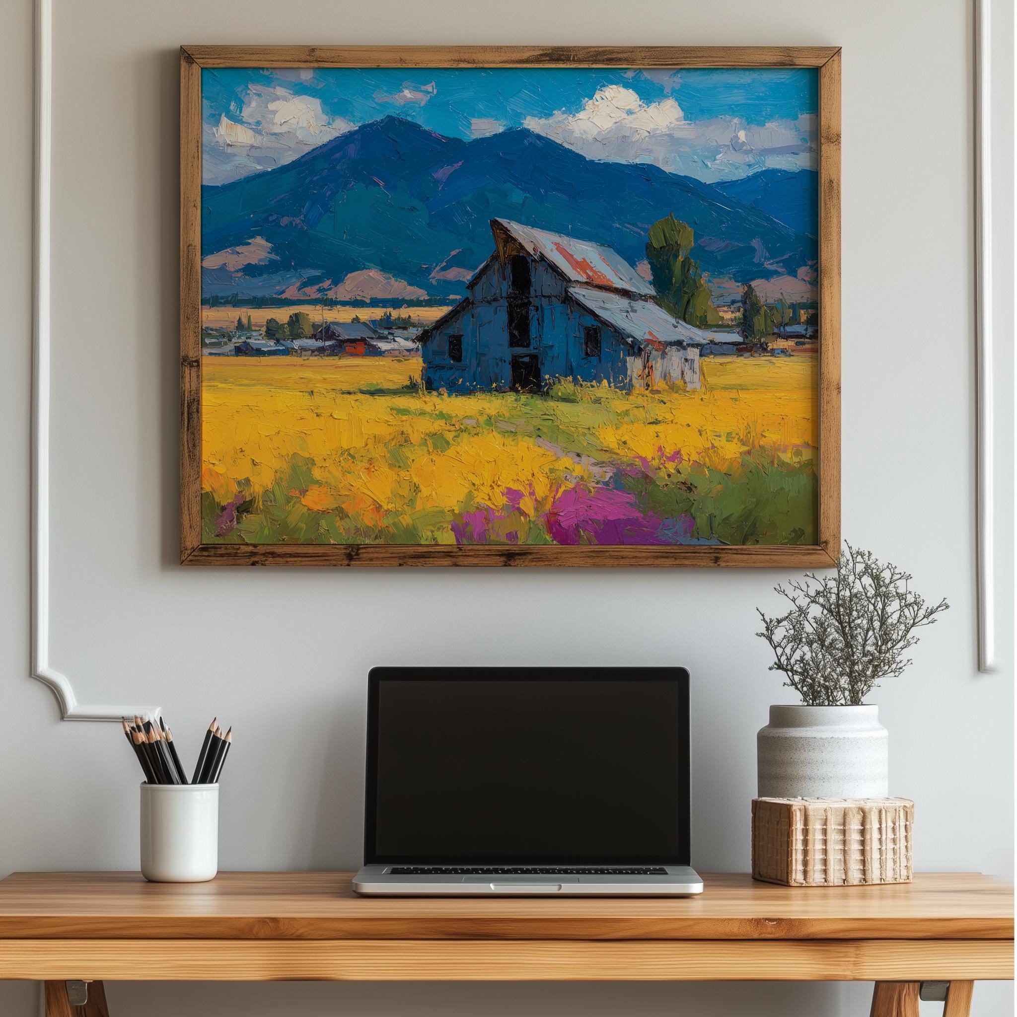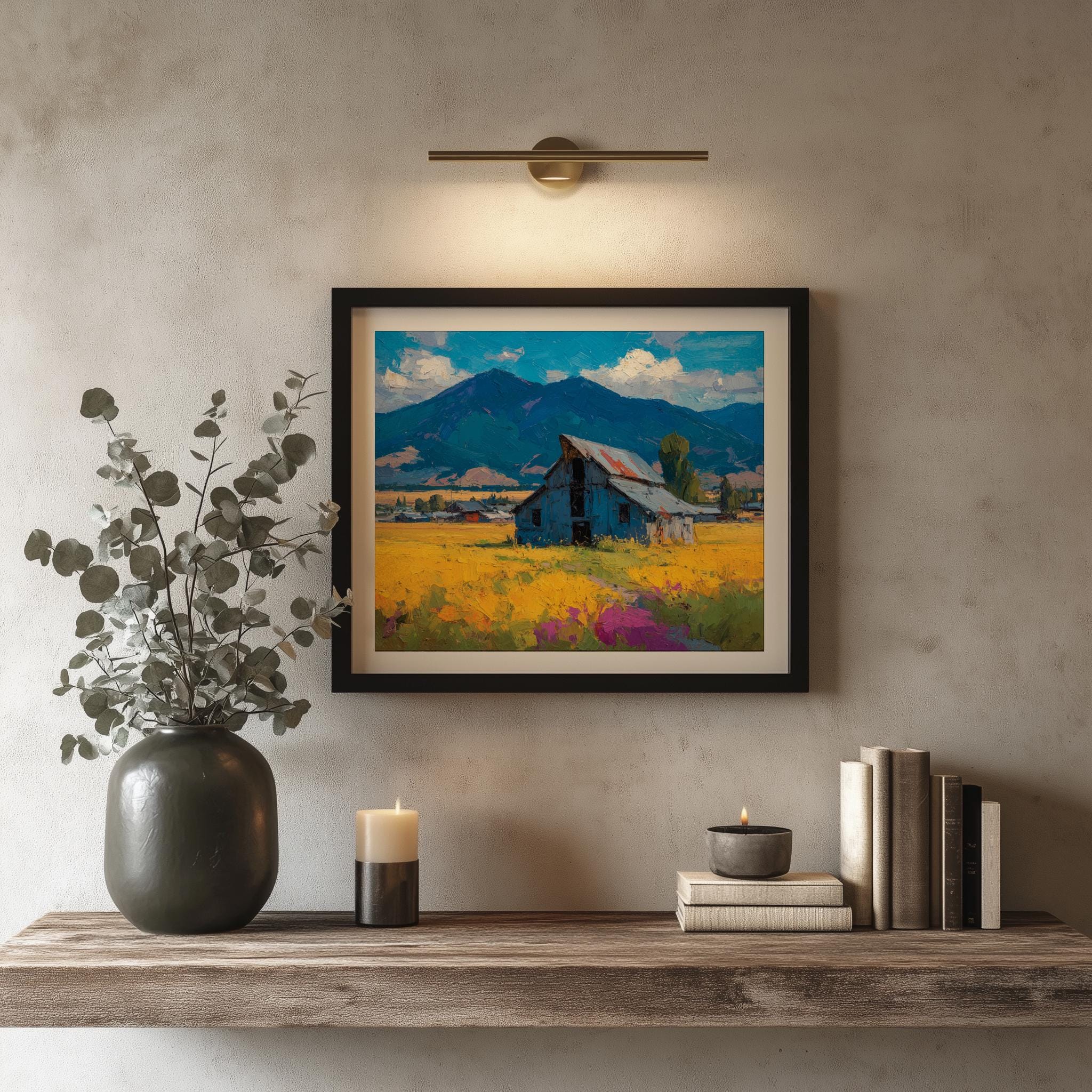 Rustic Barn Landscape Printable - A Serene Autumn Escape for Your Home Immerse yourself in the tranquil beauty of our Rustic Barn Landscape Printable, featuring charming fall scenery that captures the essence of country living. This vintage-inspired wall art showcases a serene oil painting print, perfect for adding a touch of warmth and nostalgia to your living space. Ideal for farmhouse decor enthusiasts, this printable art piece brings the vibrant hues of autumn to life, transforming any room into a cozy retreat. Autumn