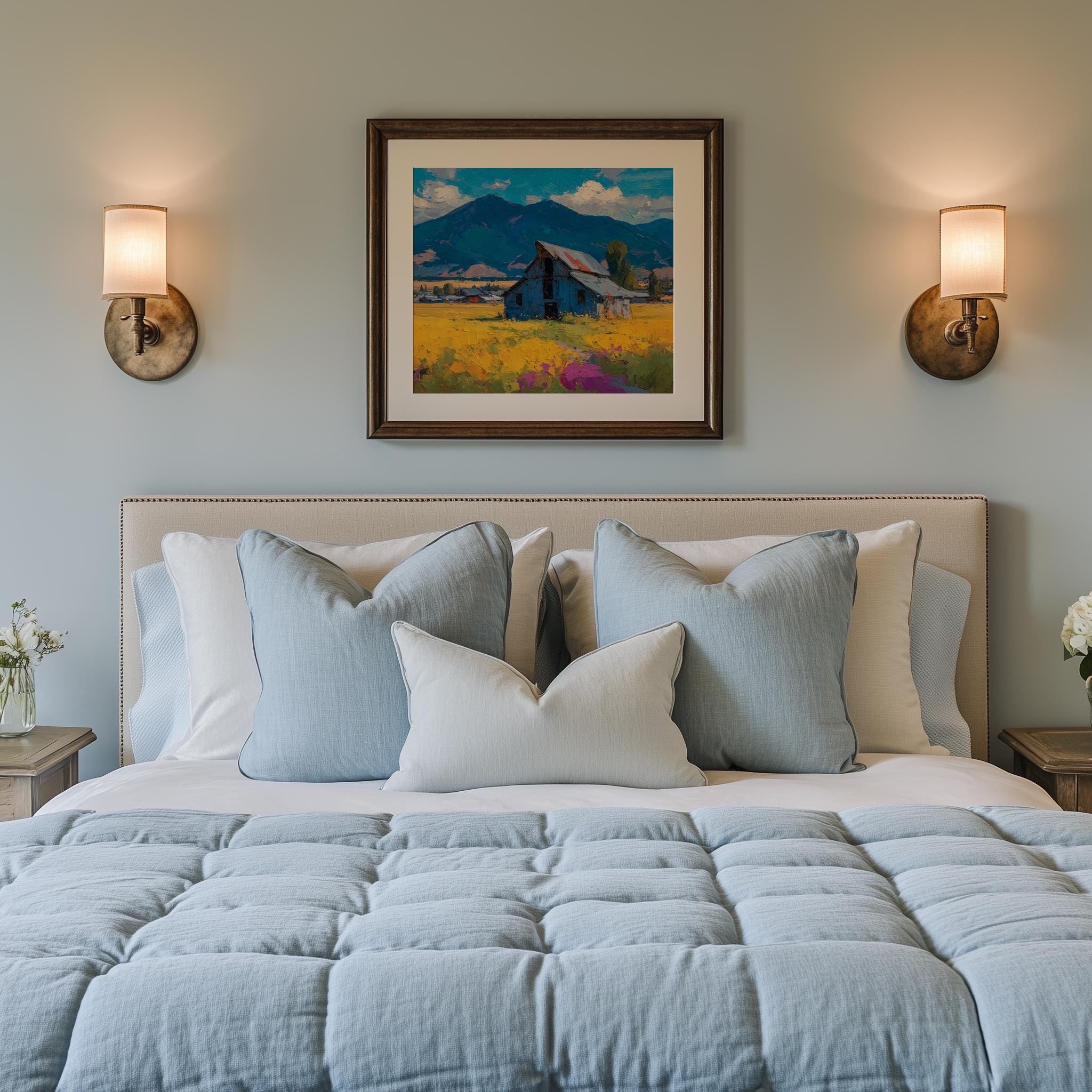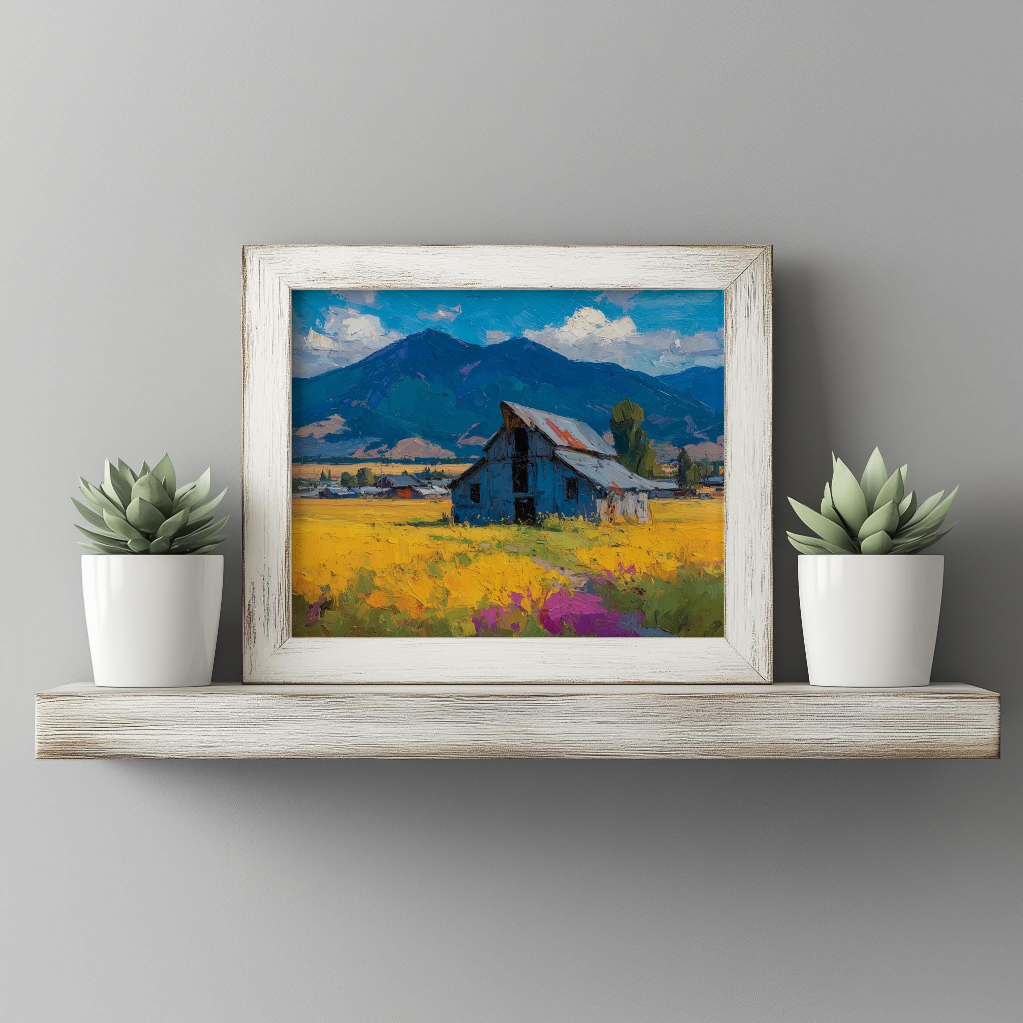 Rustic Barn Landscape Print: Vintage Farmhouse Autumn Oil Painting (Digital Download)