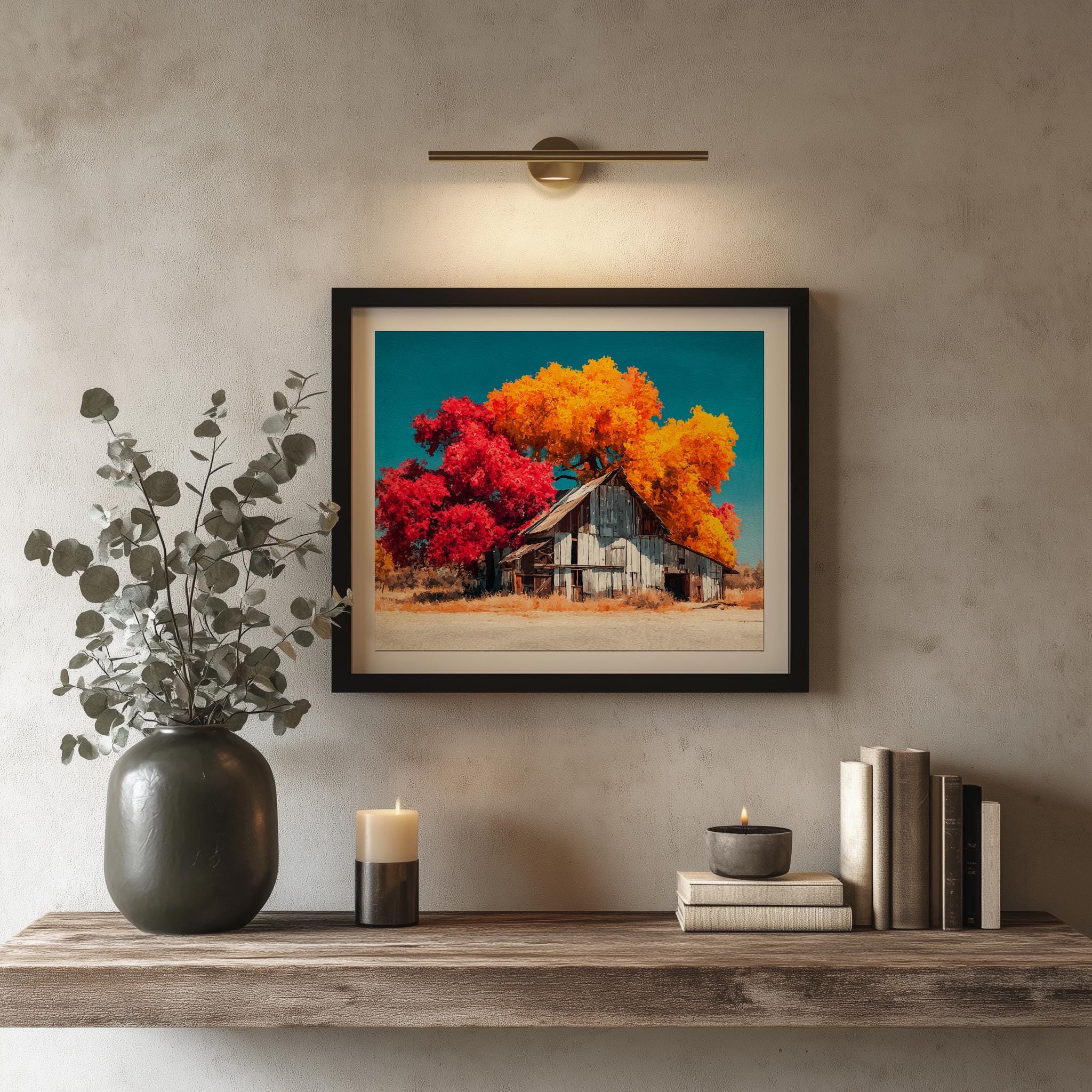 Rustic Barn Autumn Landscape Print: Vintage Cottagecore Wall Art (Digital Download))