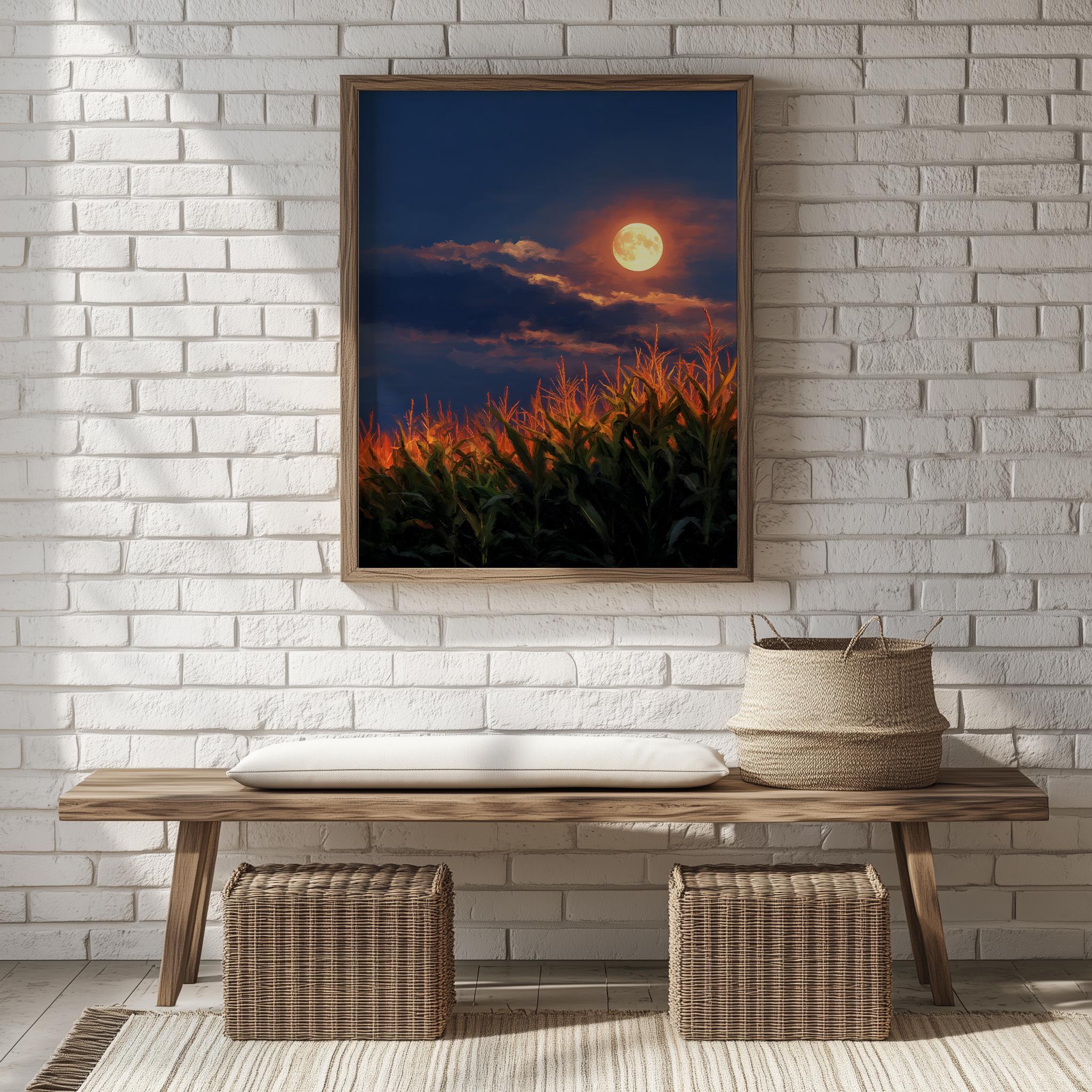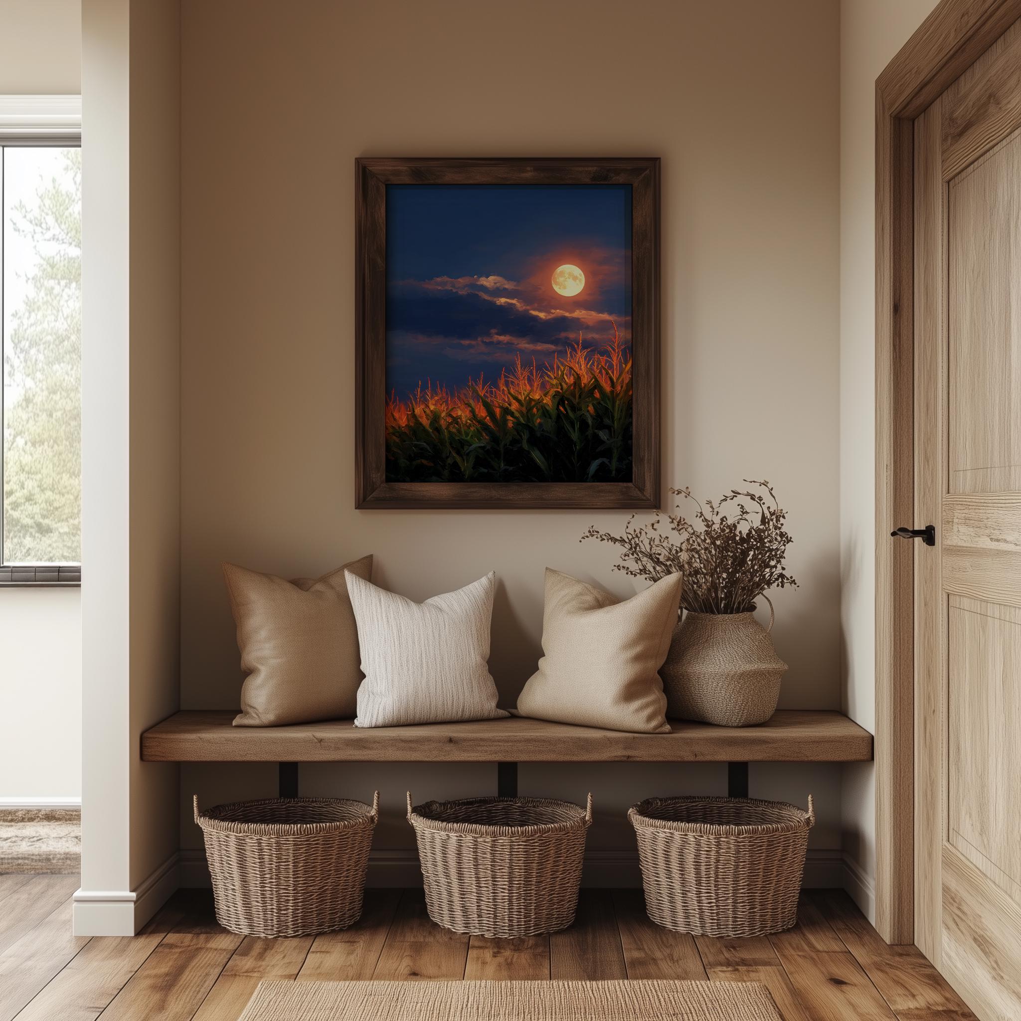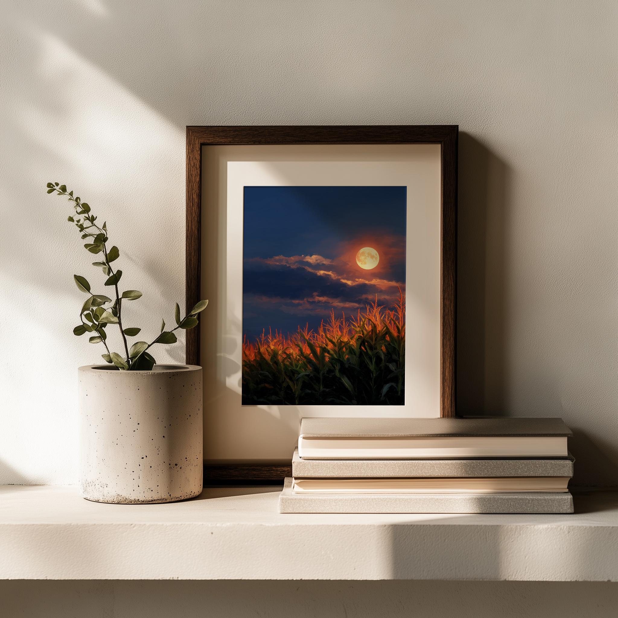Harvest Moon Cornfield Print: Rustic Cottagecore Fall Landscape (Digital Download)