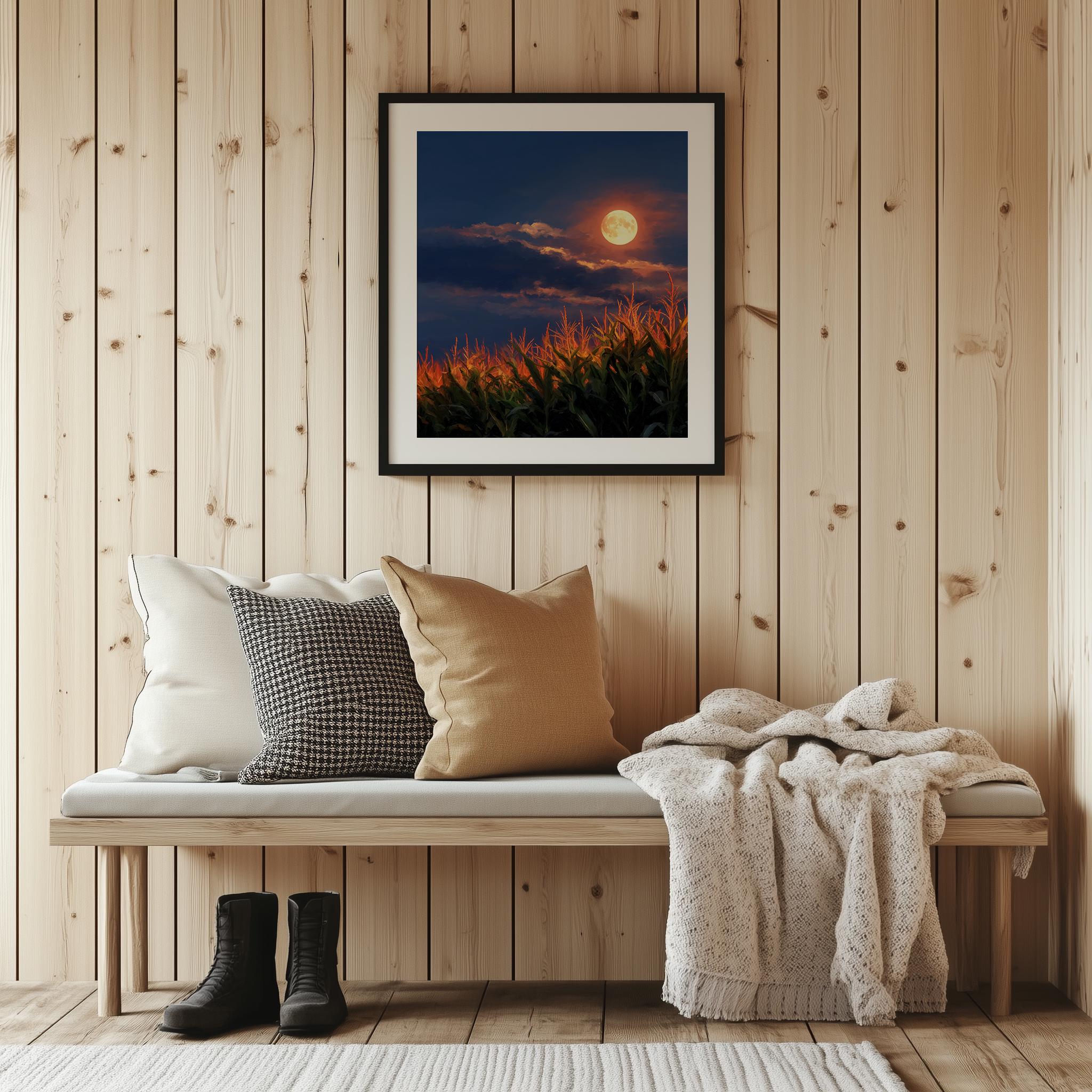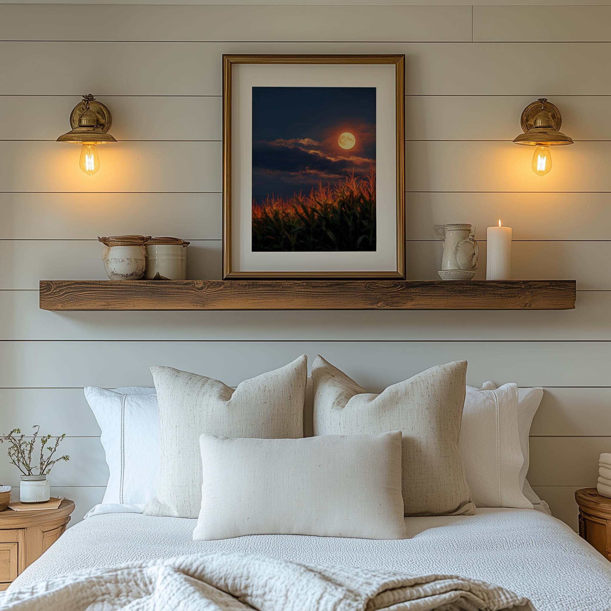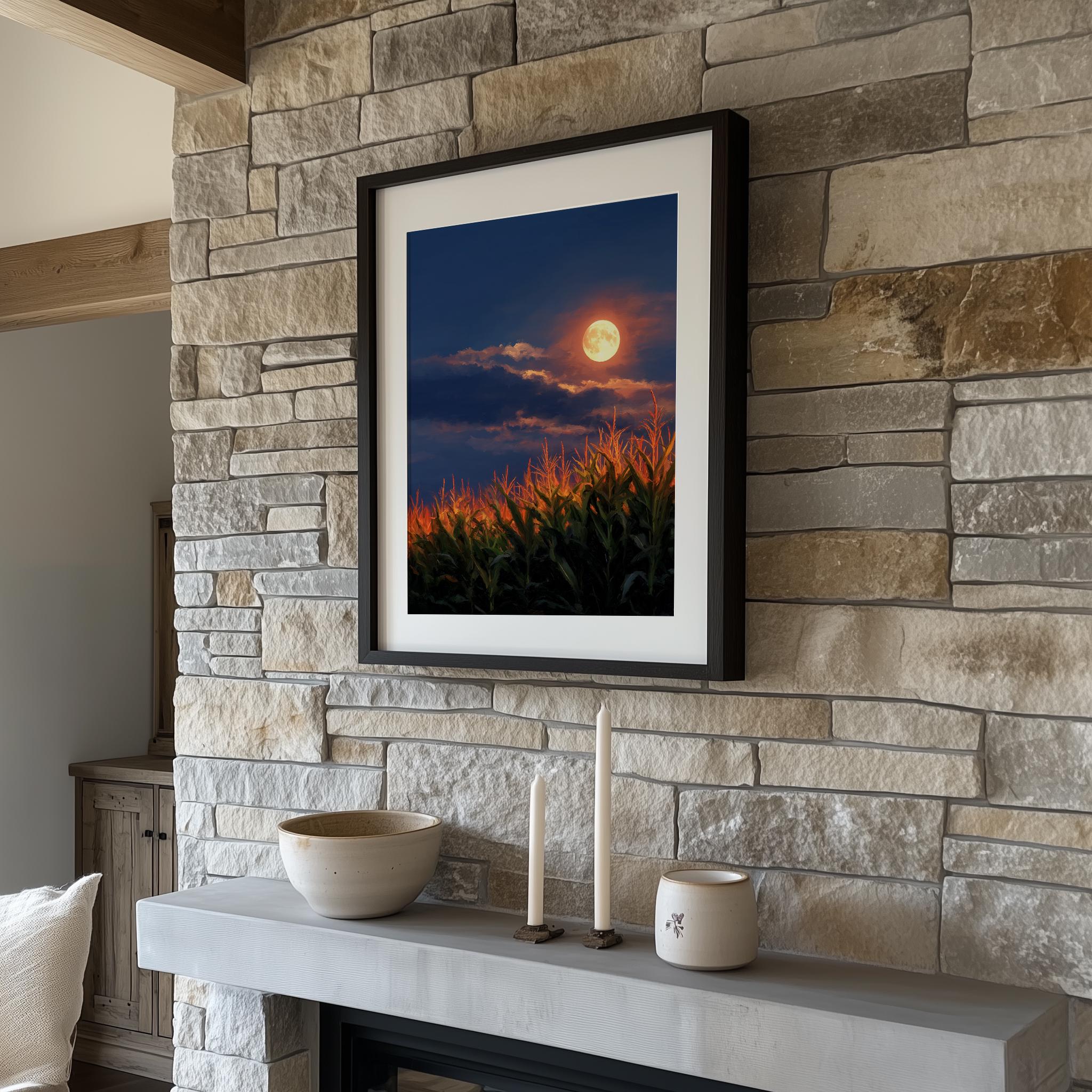 Harvest Moon Cornfield Print: Rustic Cottagecore Fall Landscape (Digital Download)