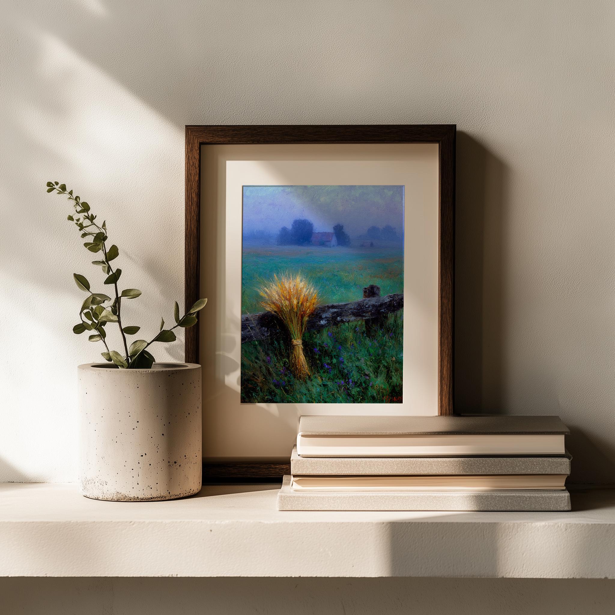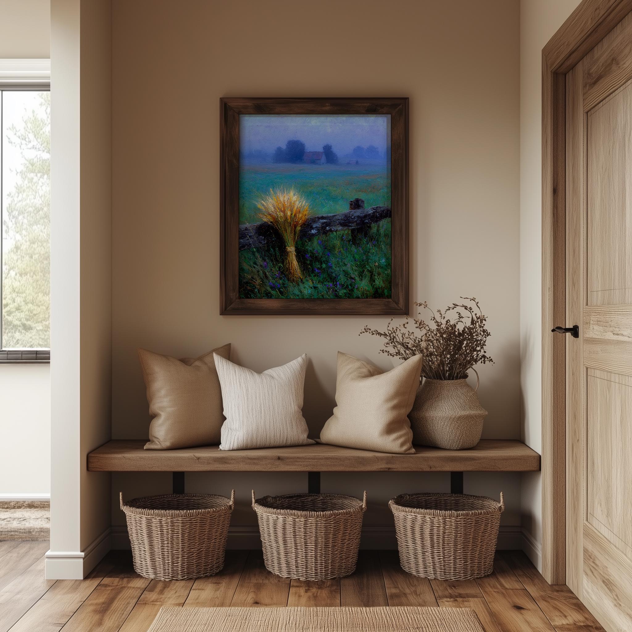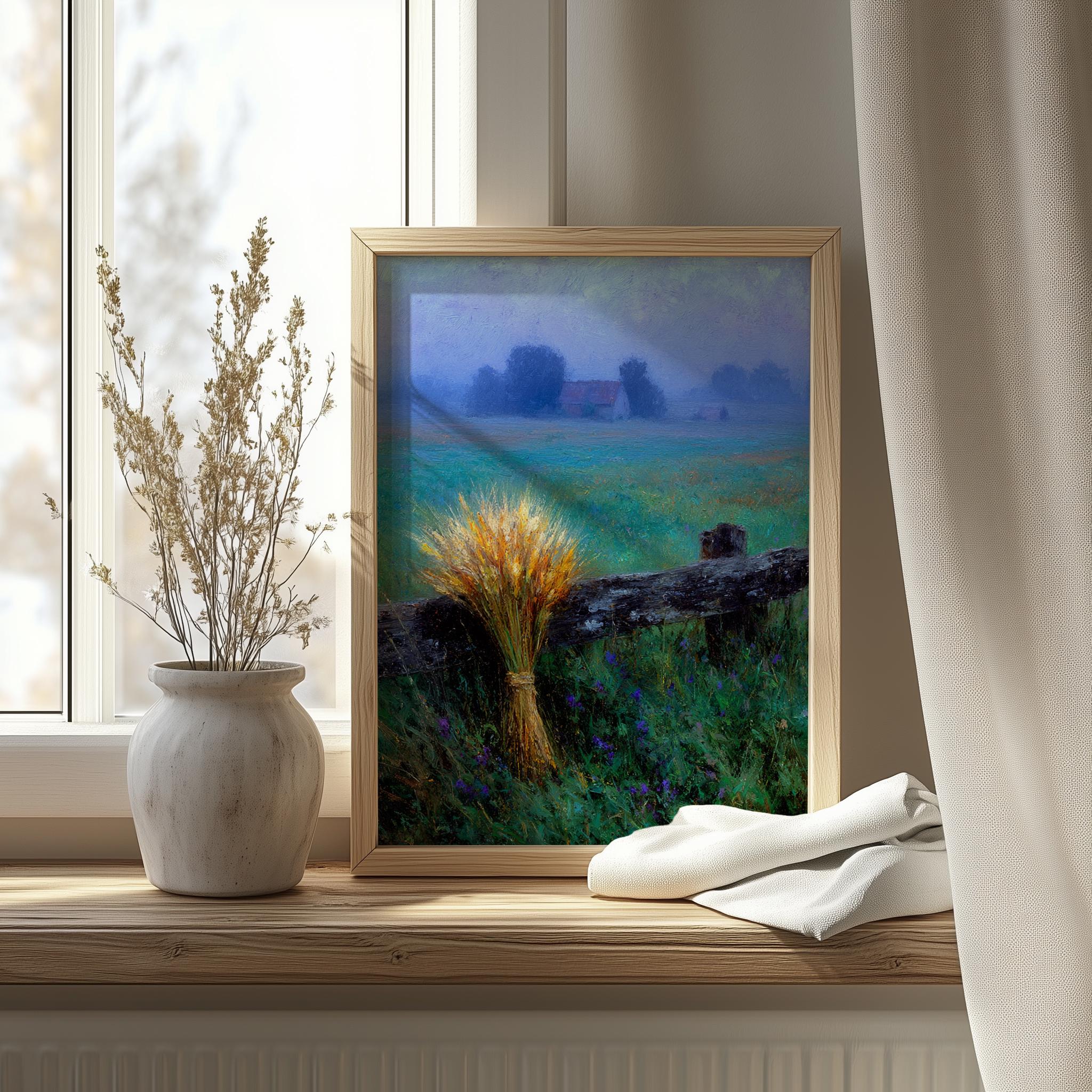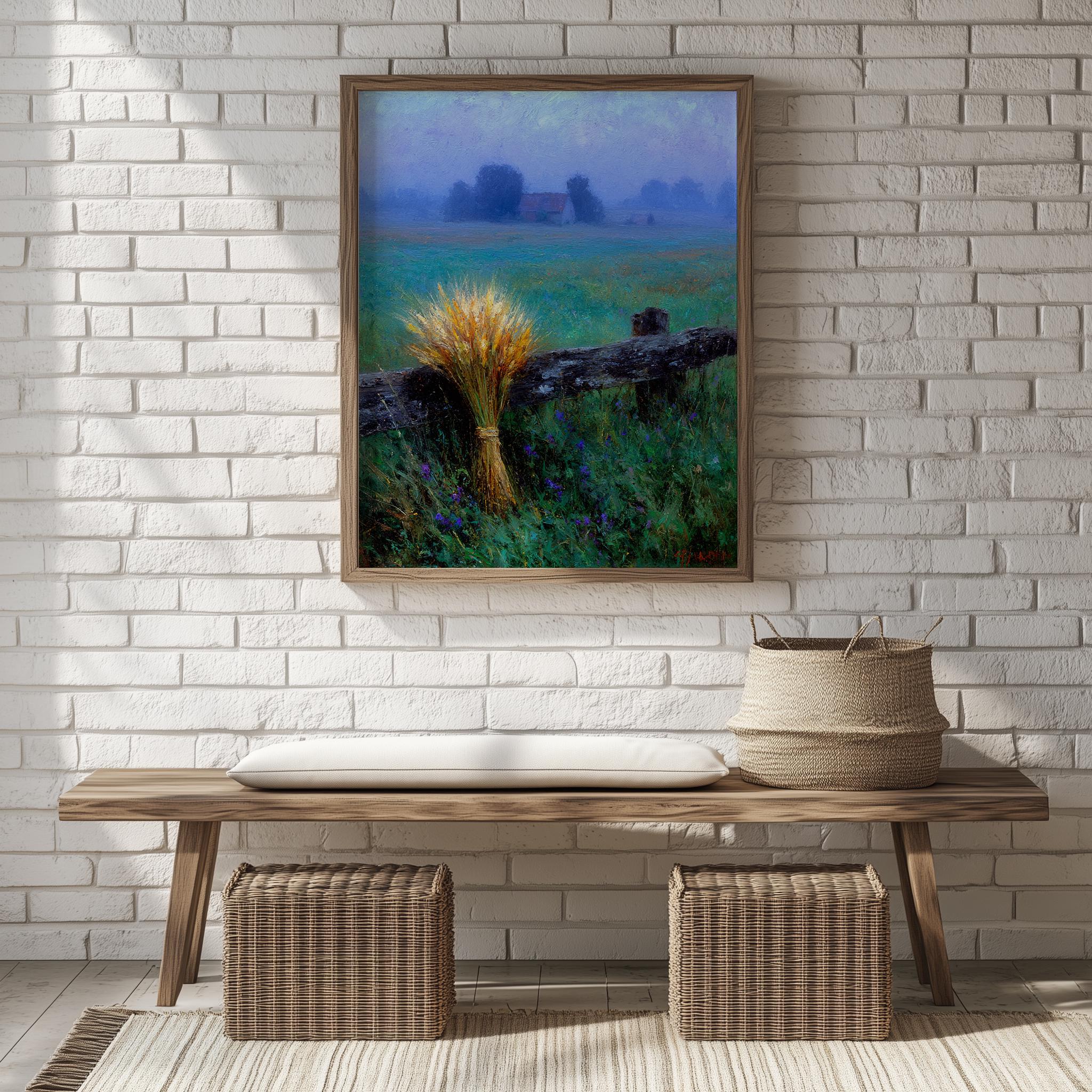 Rustic Wheat Field Oil Painting: Vintage Farmhouse Wall Art (Digital Download)