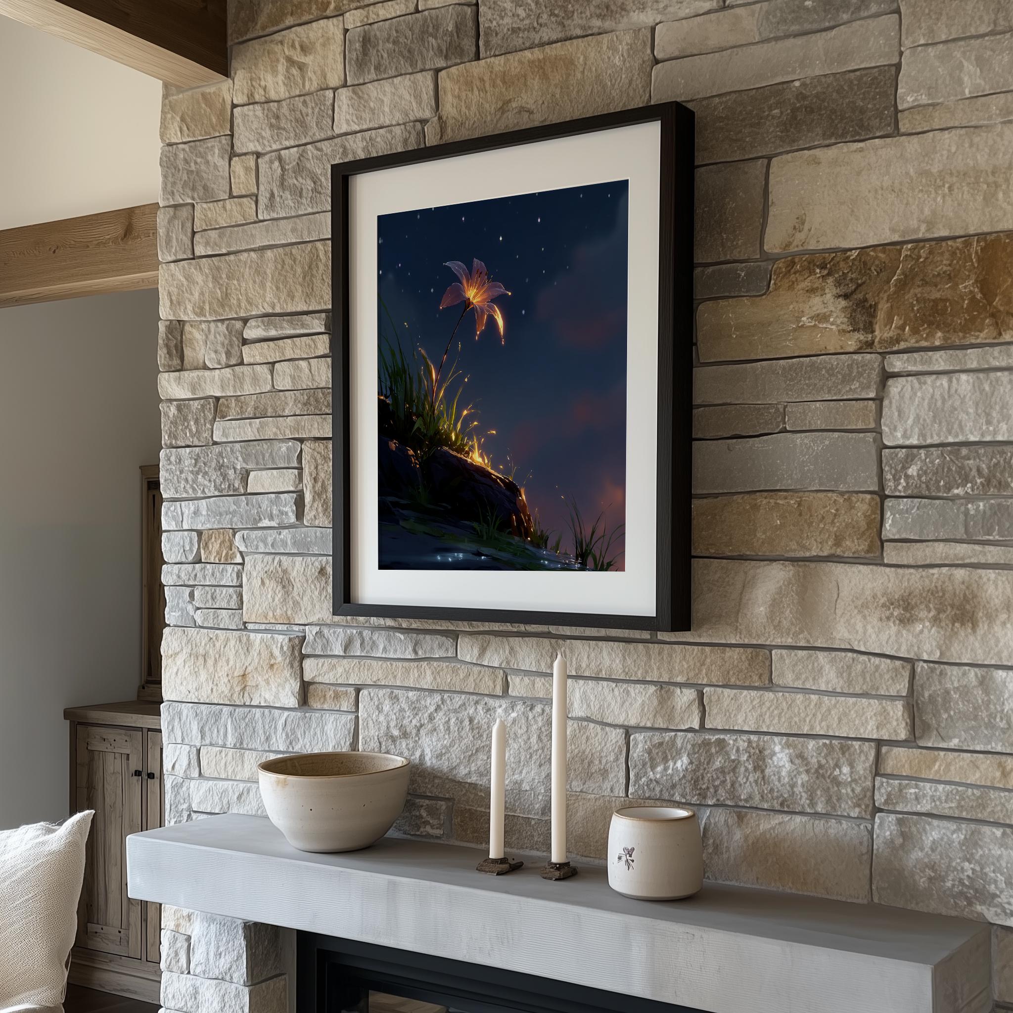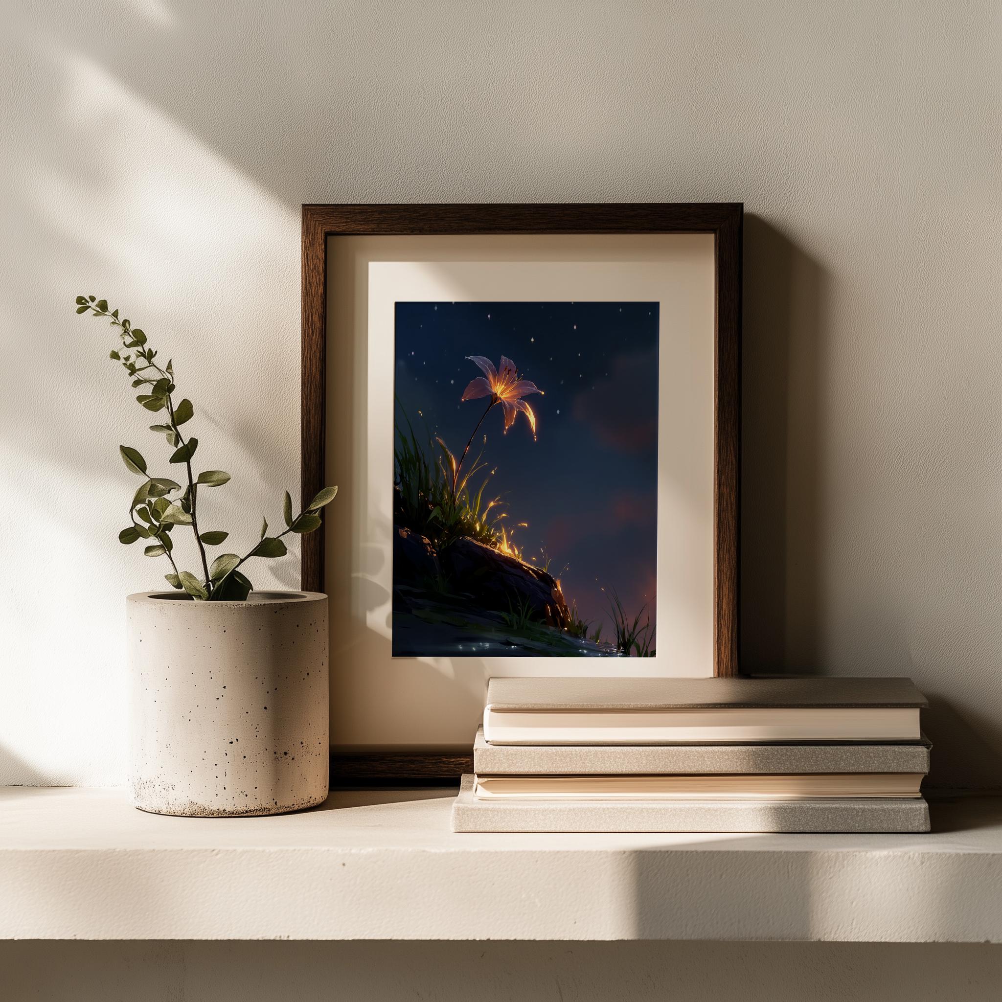 Mystical Starflower Night Scene Print: Moody Floral Garden Art (Digital Download)