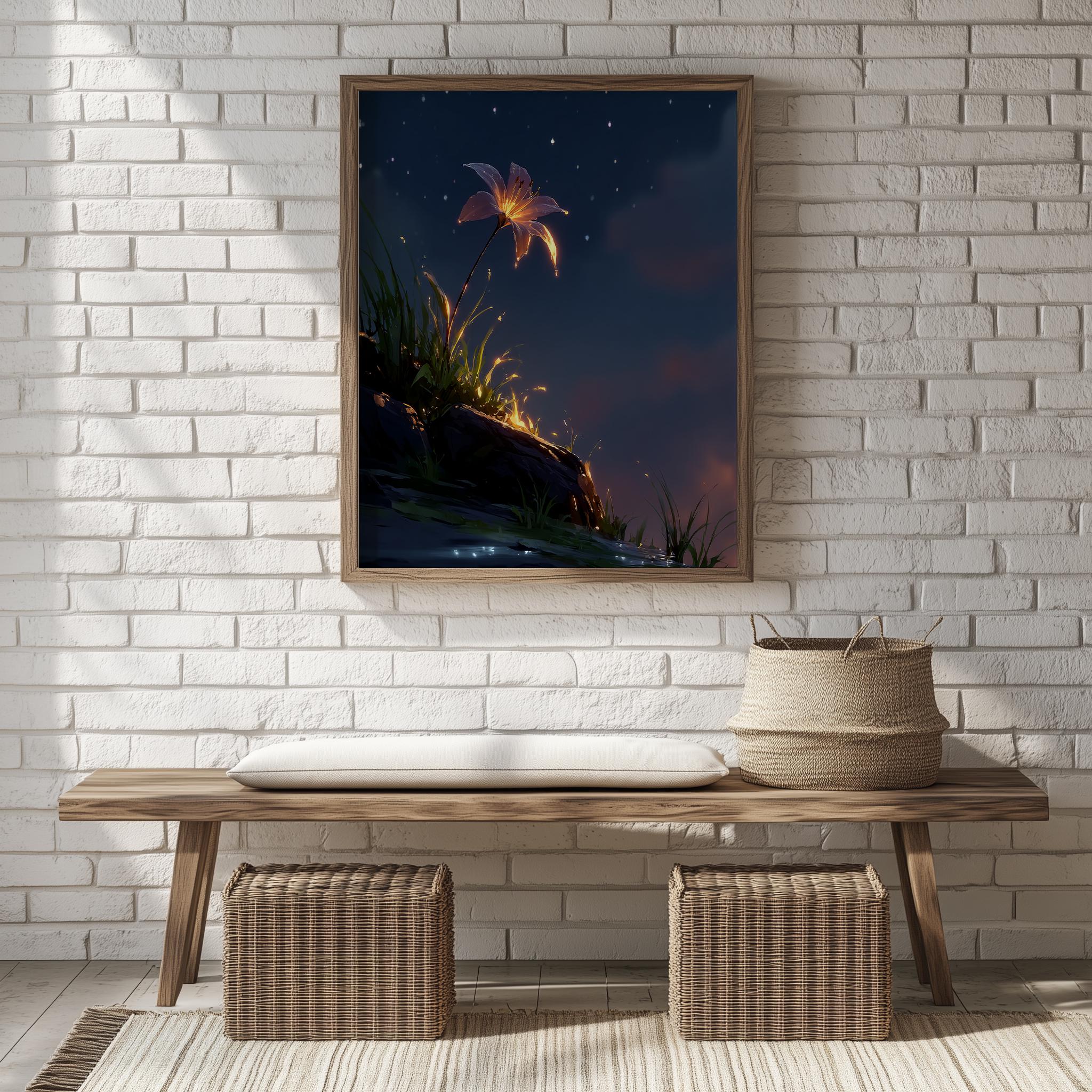 Starflower Bloom Night Scene Printable - Mystical Floral Wall Art for Enchanting Spaces Immerse yourself in the enchanting beauty of nature with our Starflower Bloom Night Scene Printable. This stunning piece features radiant flowers set against a moody garden backdrop, creating a dreamscape that captures the essence of a mystical evening. Perfect for adding a touch of whimsy and charm to your decor, this digital download allows you to bring the tranquility of a blooming garden into your home with ease. Ideal for year-round decoration, this artwork brings a seasonal touch of magic and wonder.