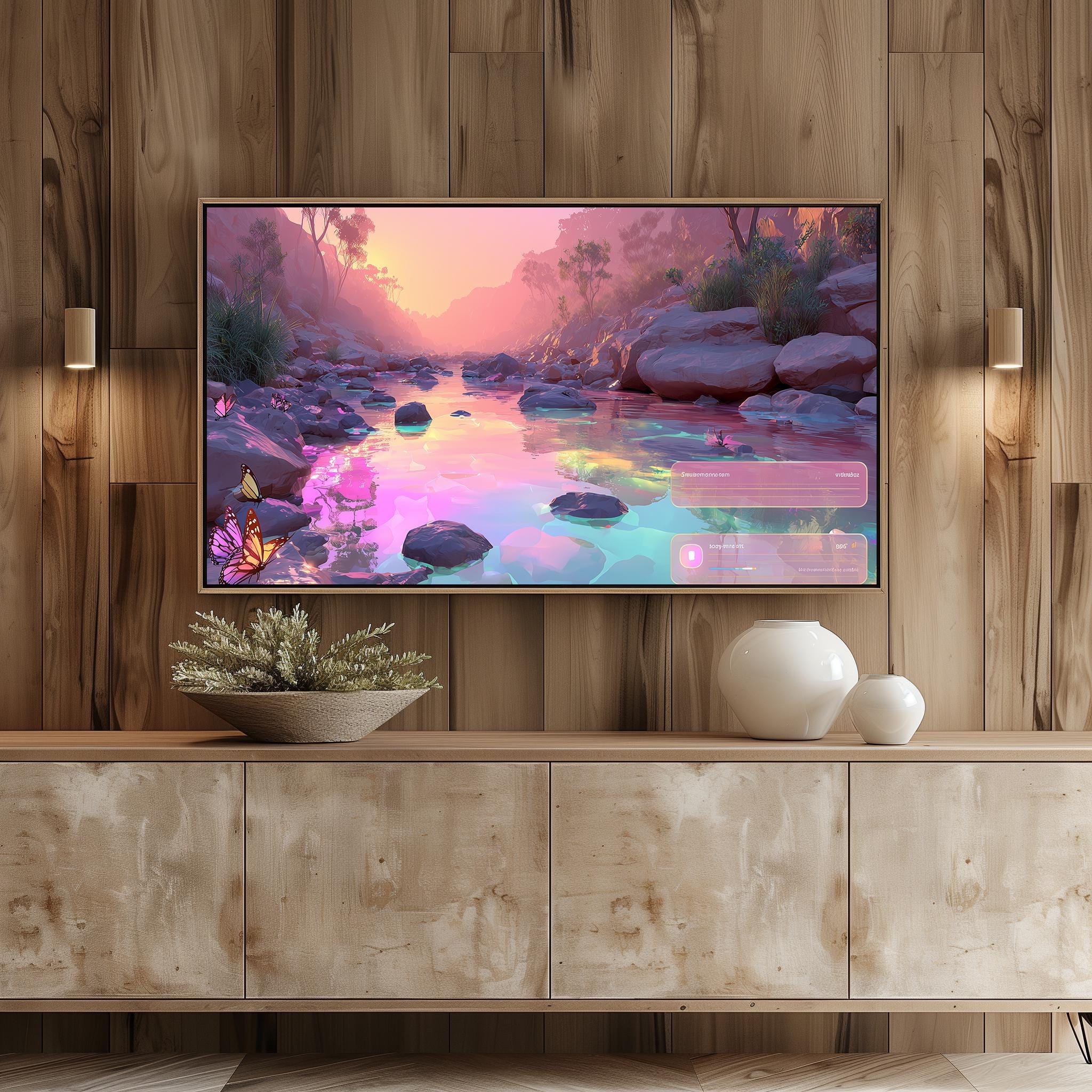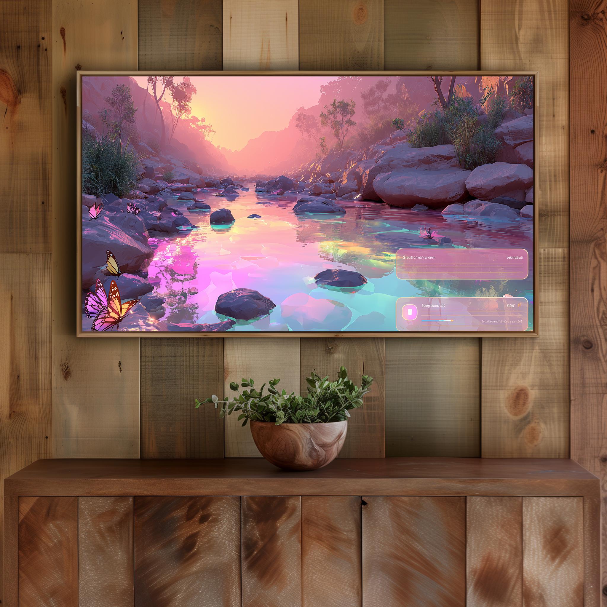 Surreal River Landscape Frame TV Art, Dreamy Sunset (Digital Download)