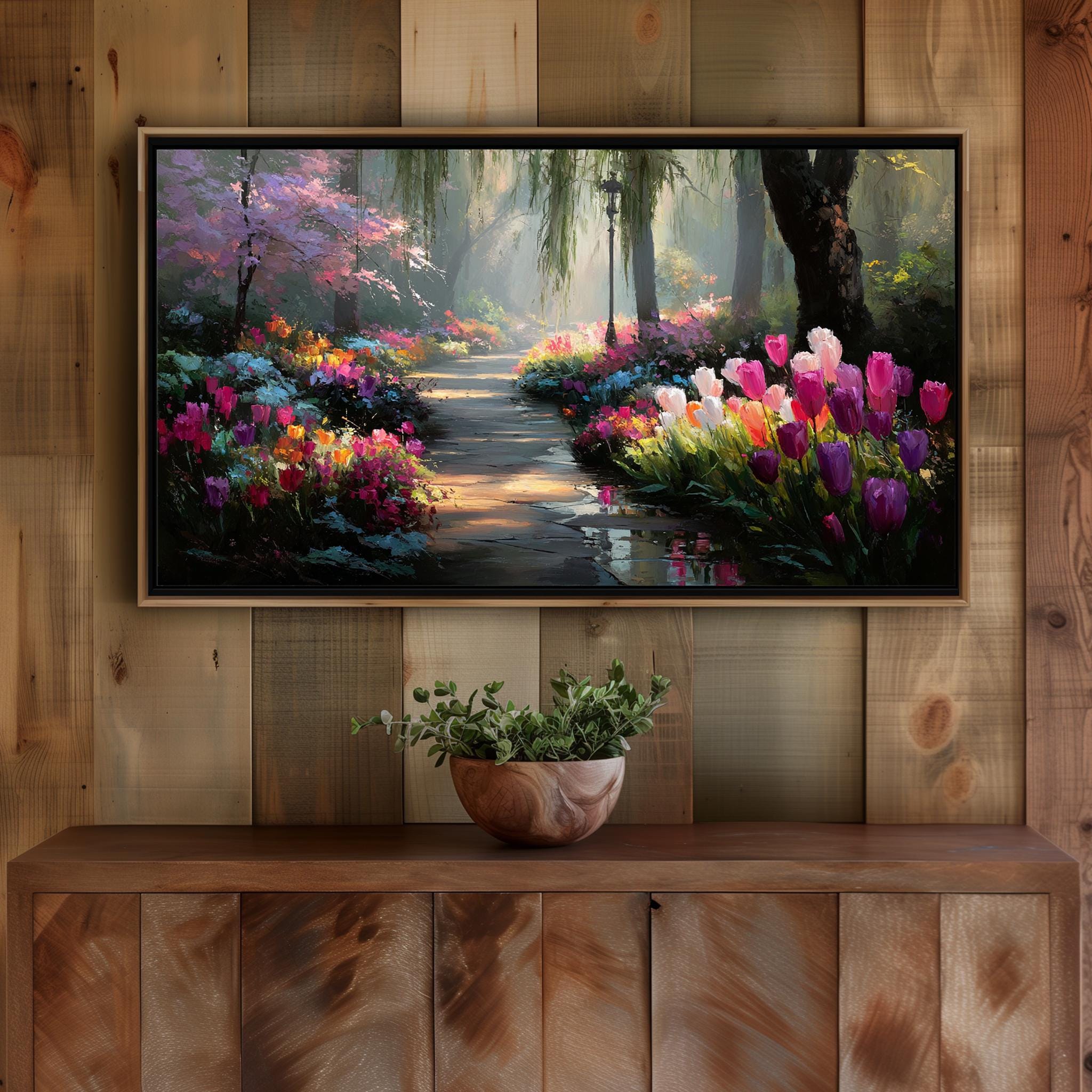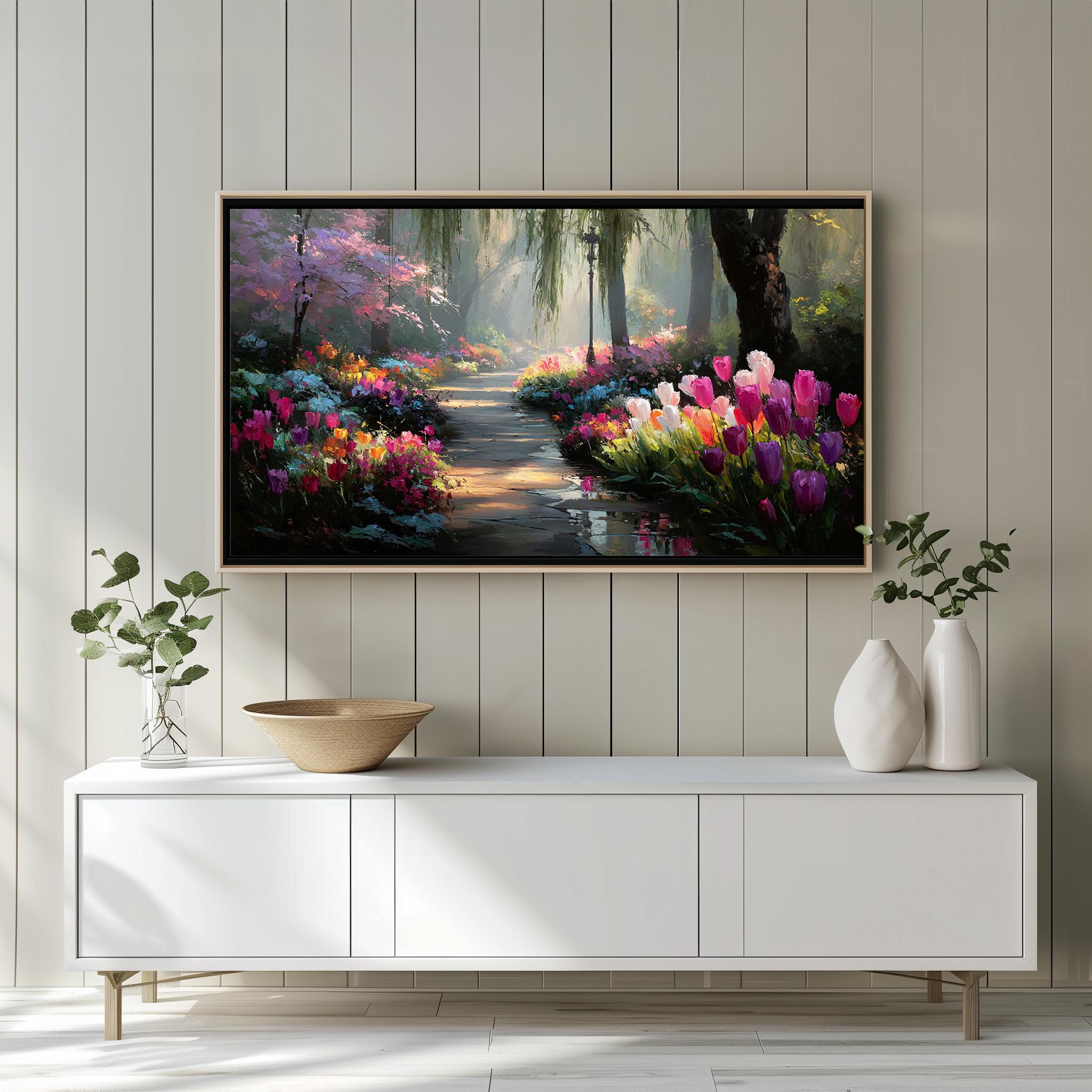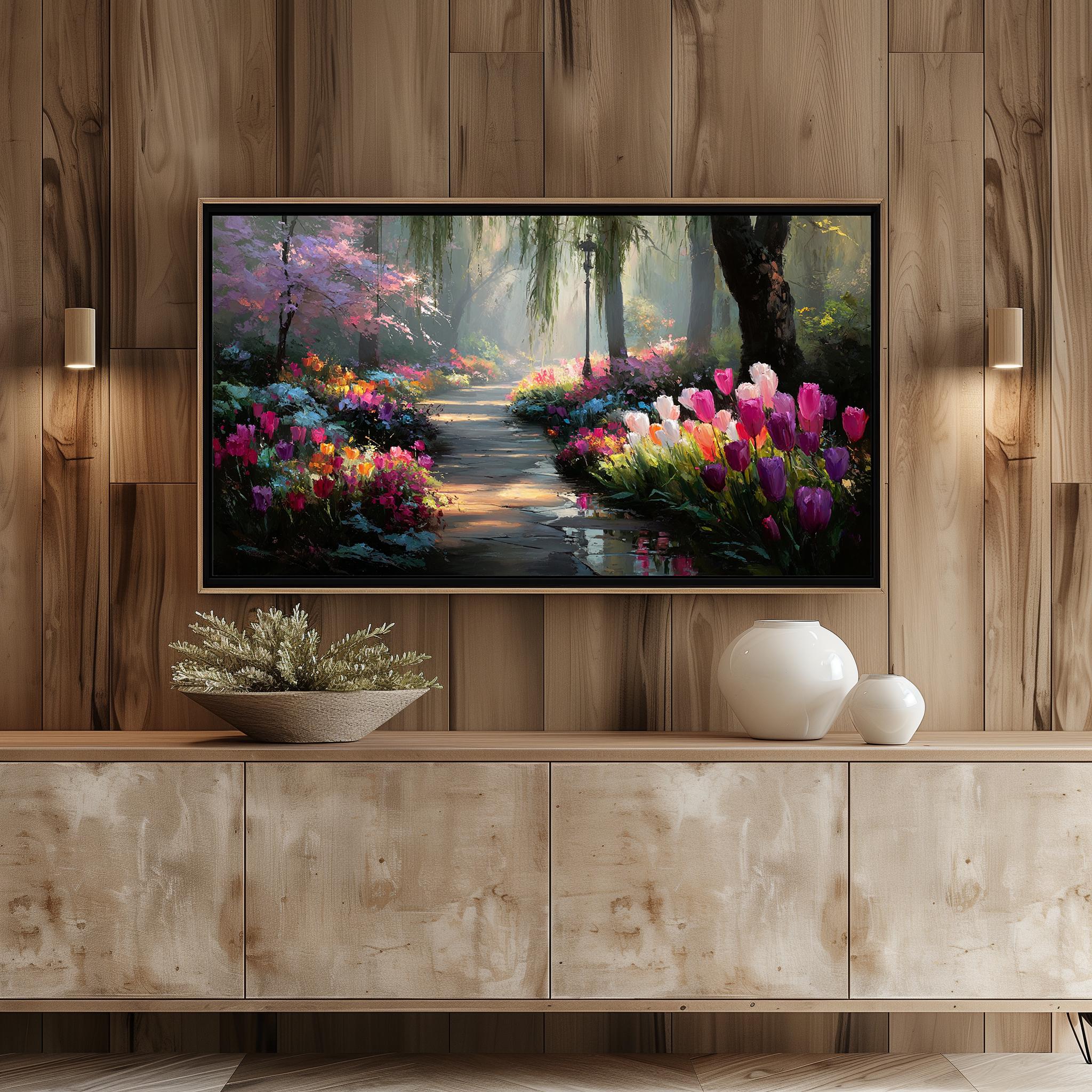 Tranquil Garden Path Frame TV Art: Rustic Cottagecore Oil Painting (Digital Download 65