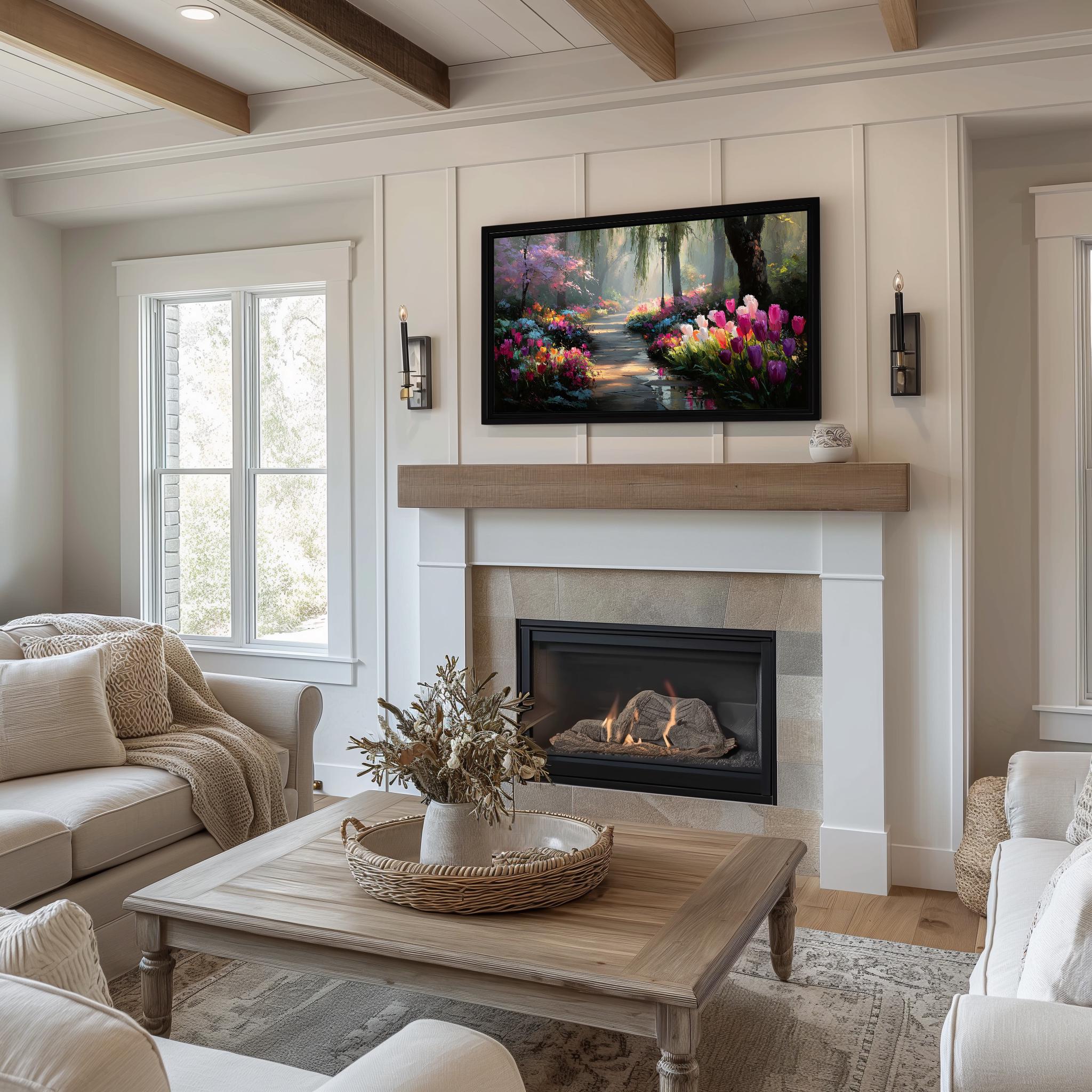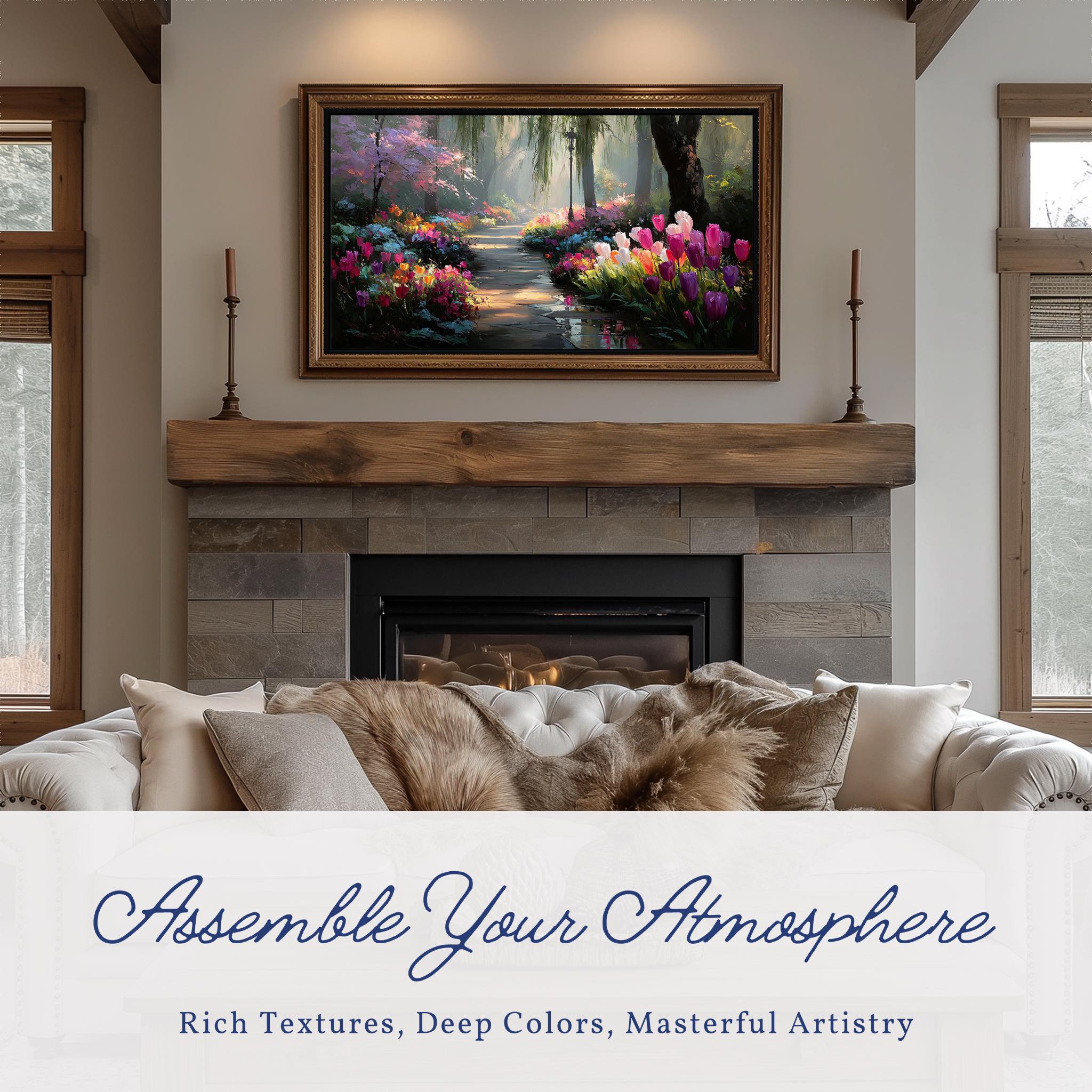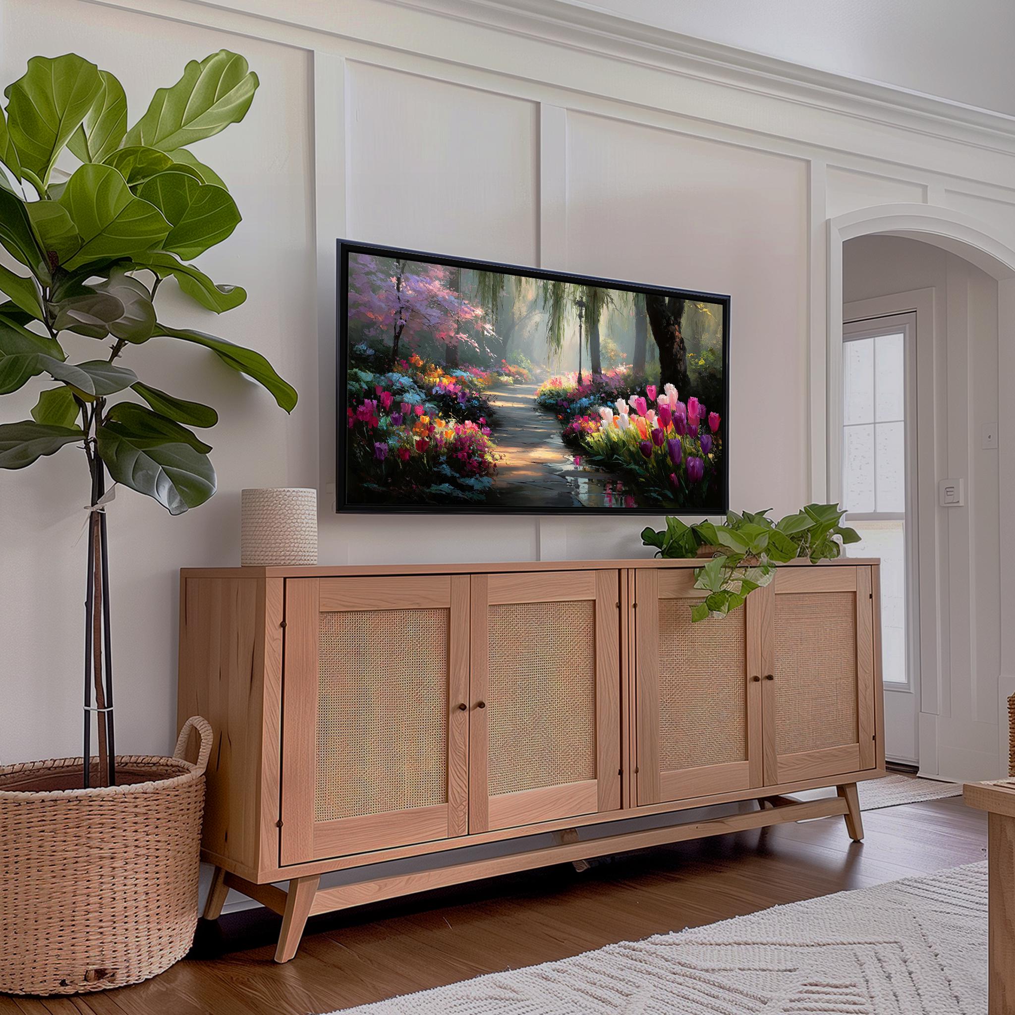 Tranquil Garden Path Frame TV Art: Rustic Cottagecore Oil Painting (Digital Download 65