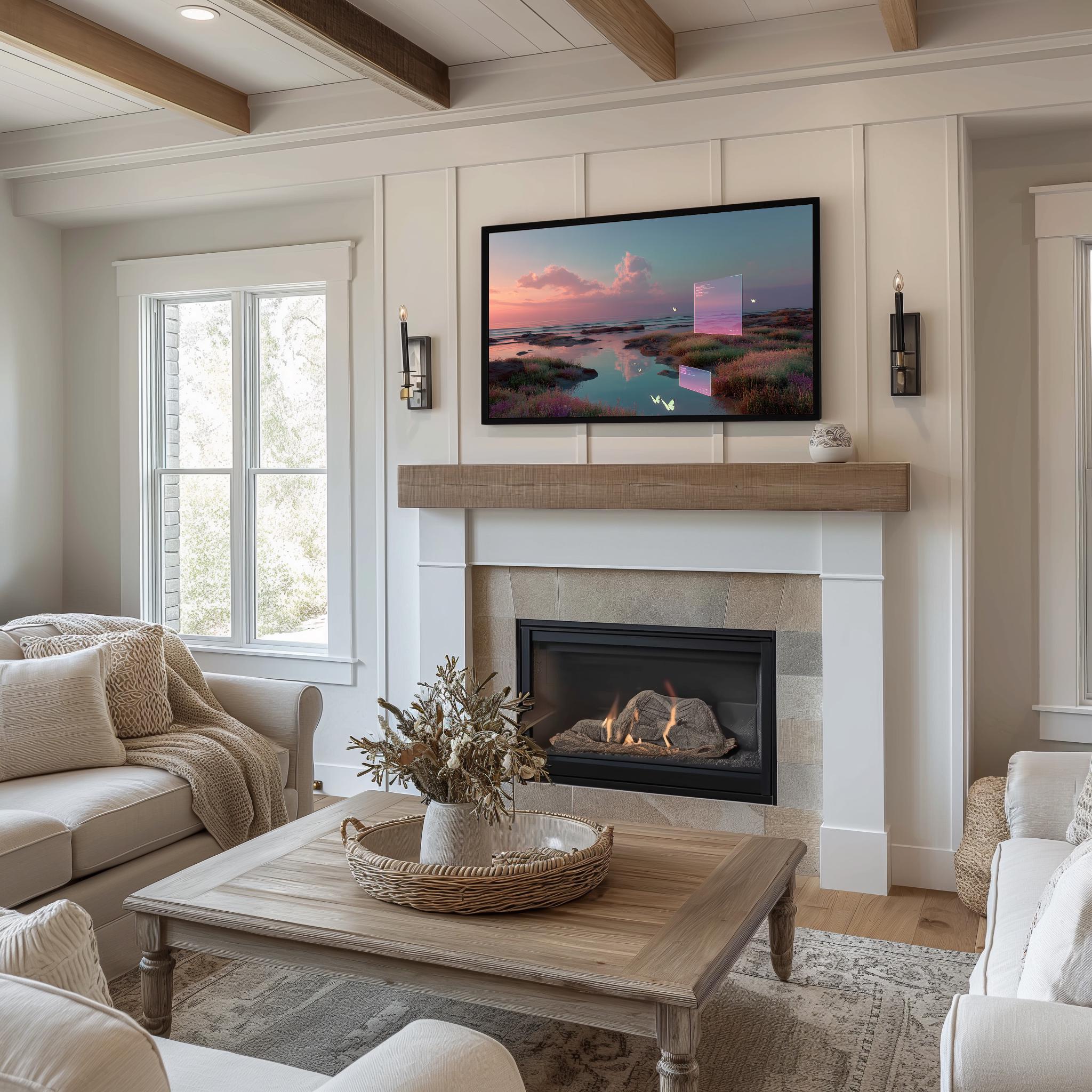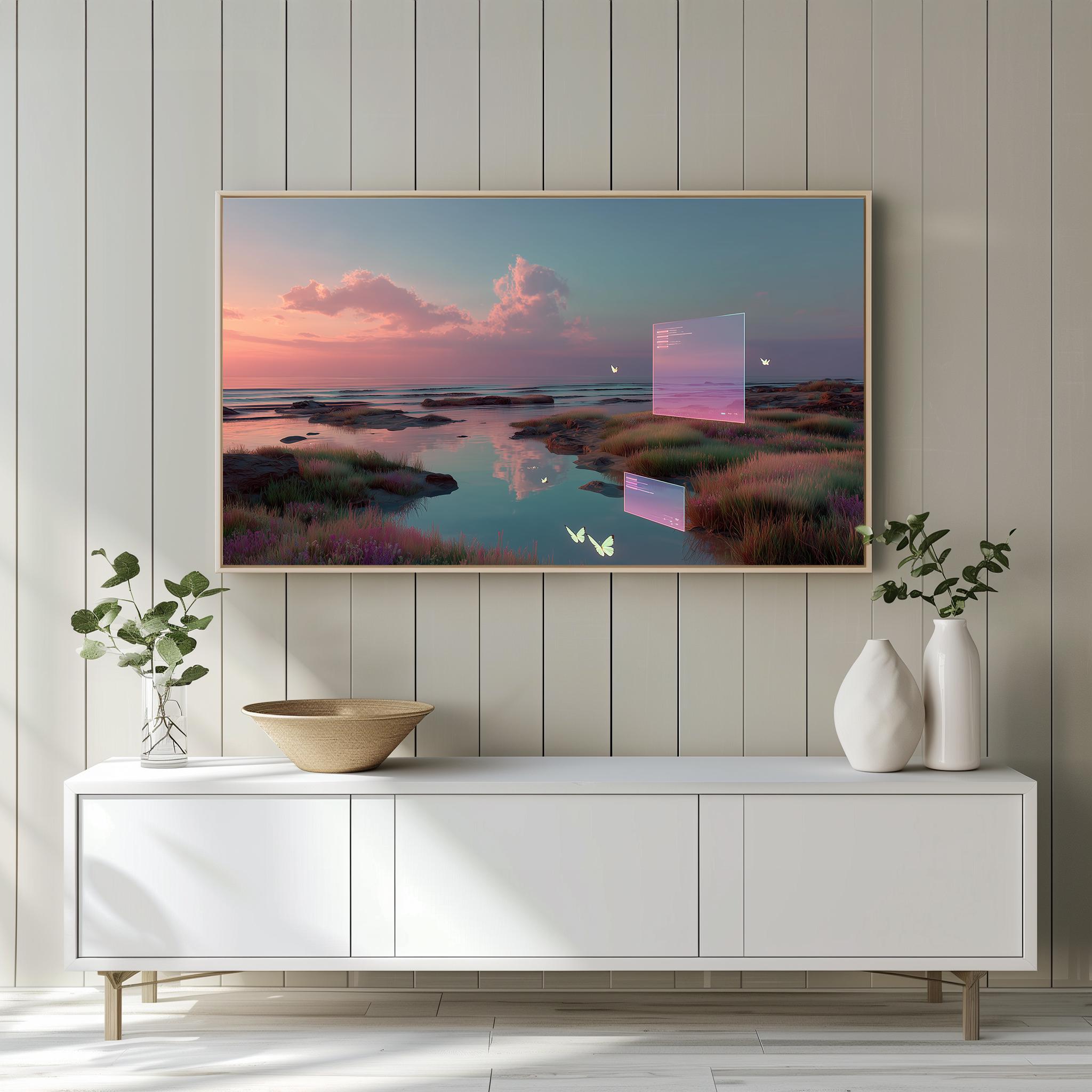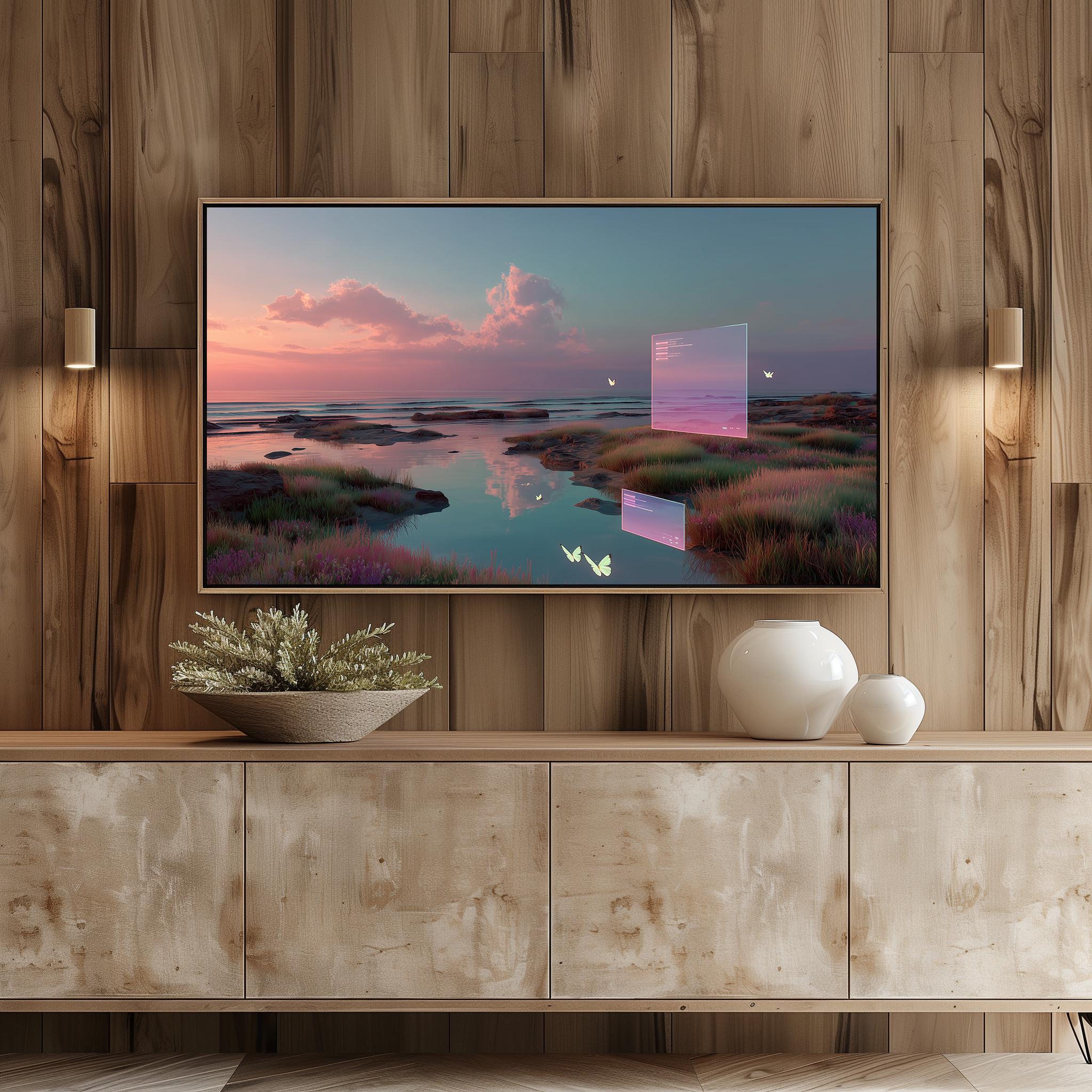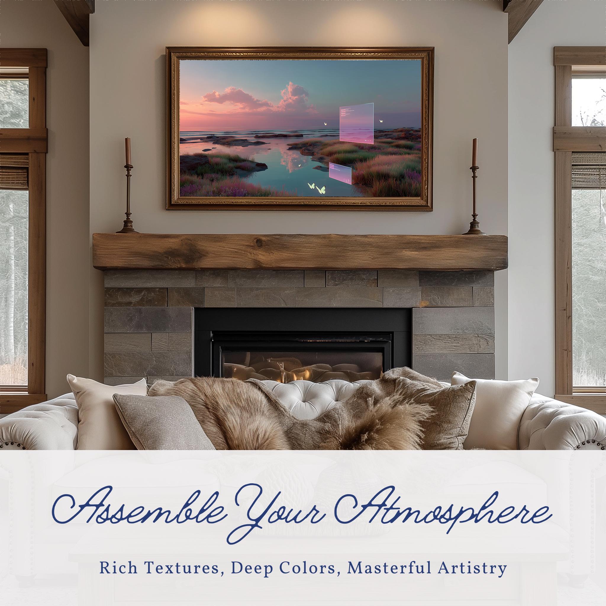 Serene Sunset Landscape Frame TV Art: Cozy Living Room Digital Decor