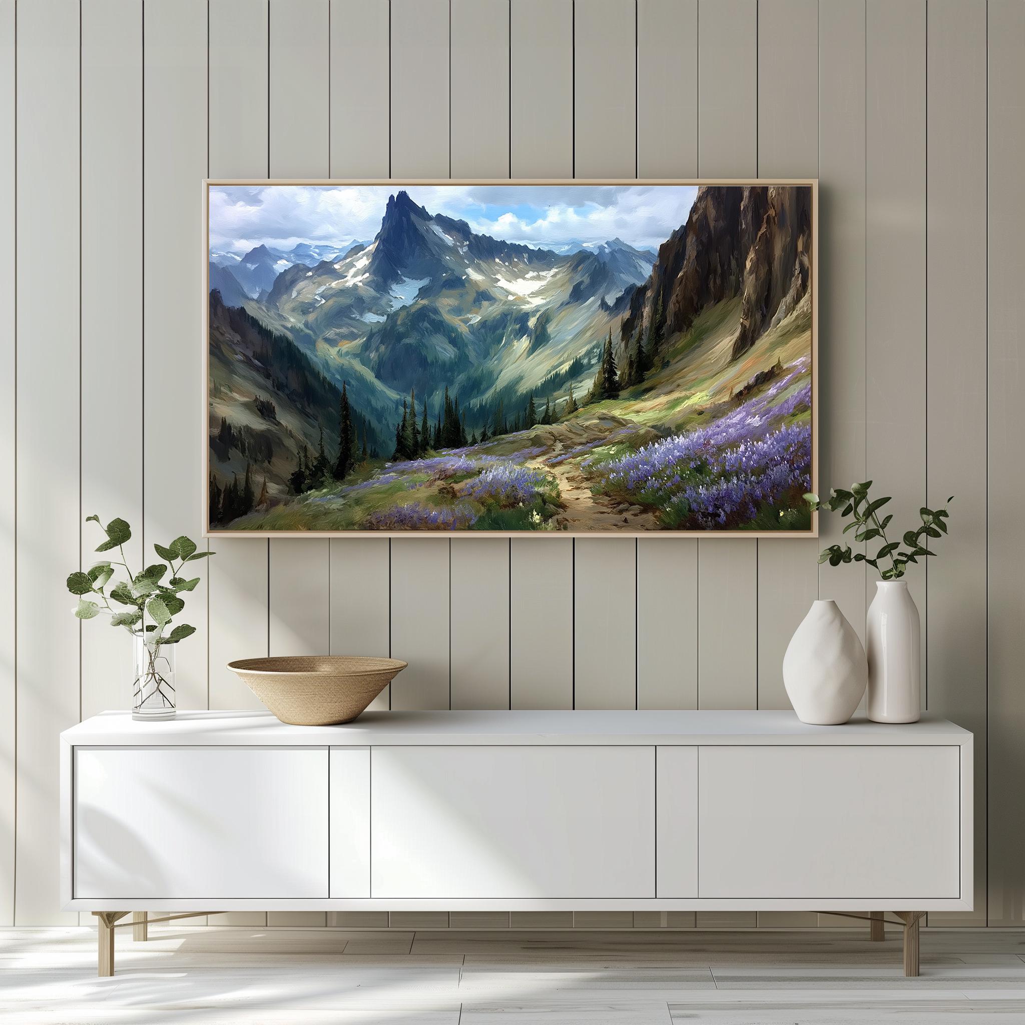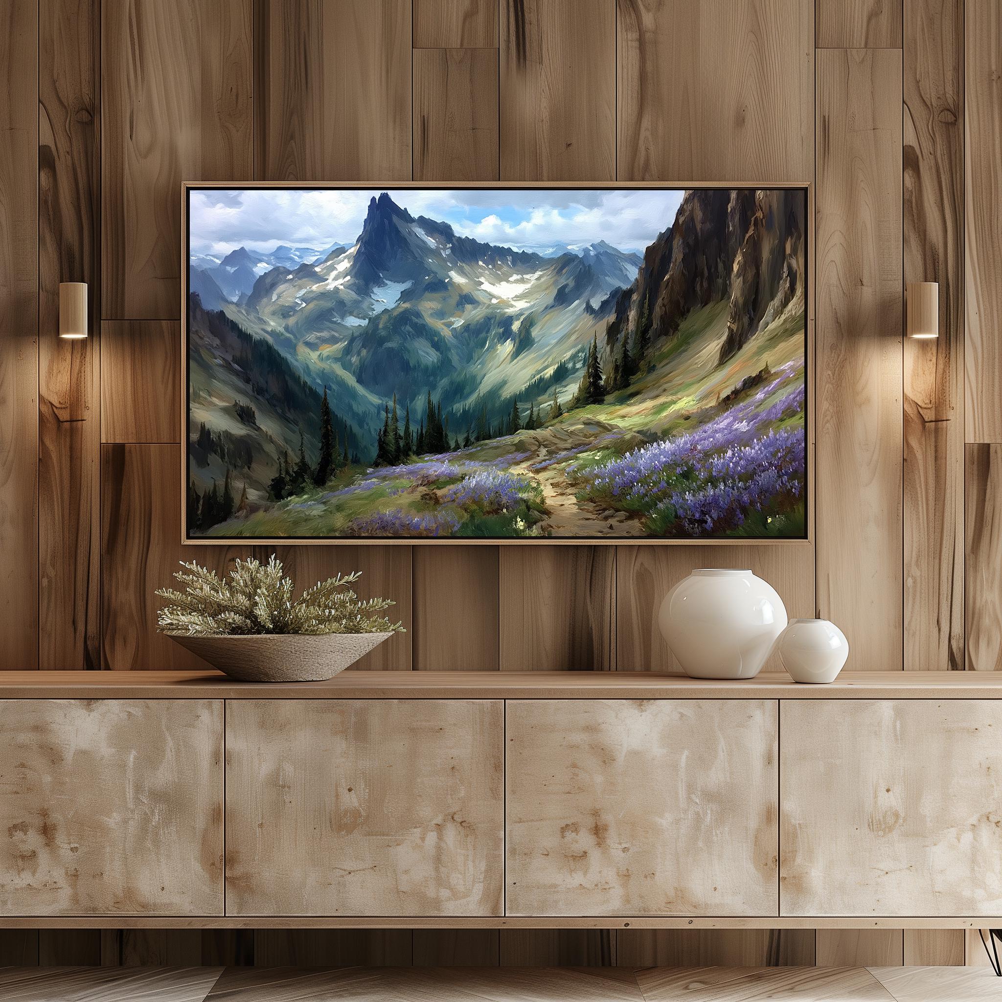 Majestic Mountain Scene Frame TV Art: Rustic Landscape (Digital Download)