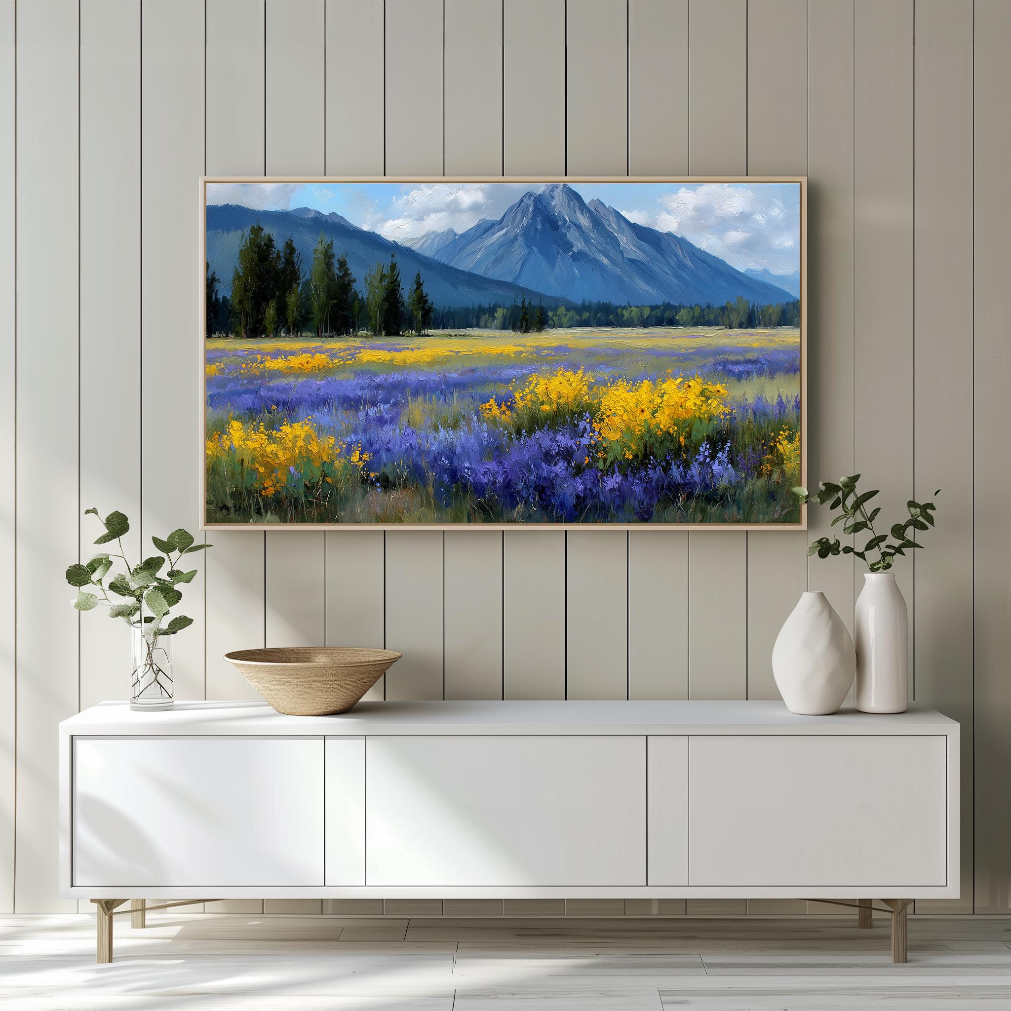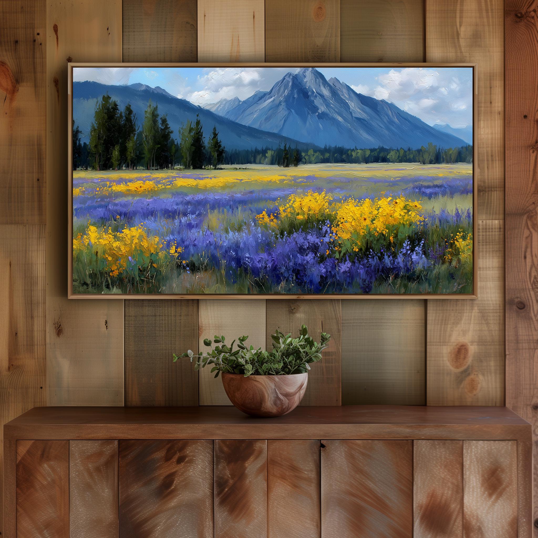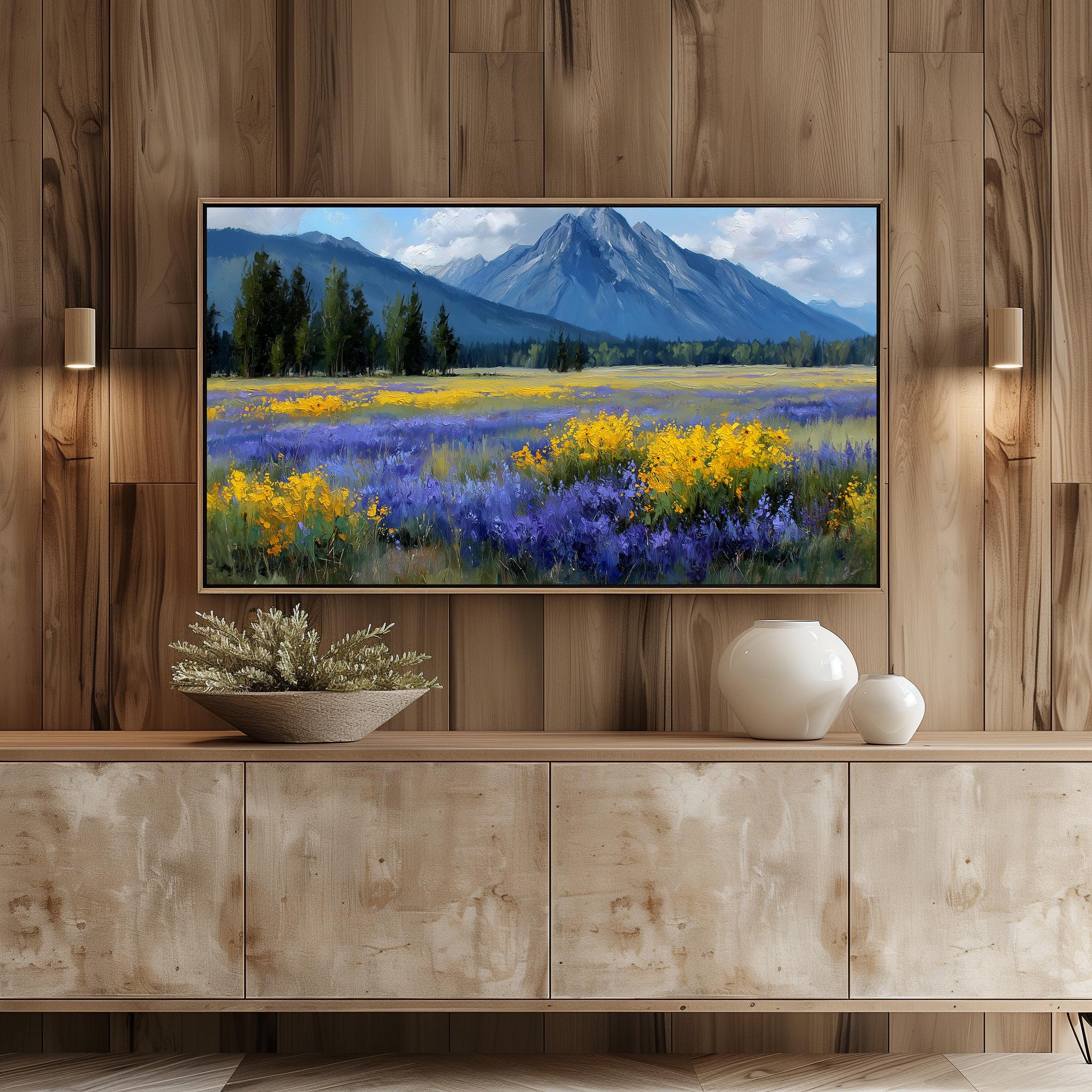Mountain Landscape Frame TV Art, Flower Meadow Scene (Digital Download)