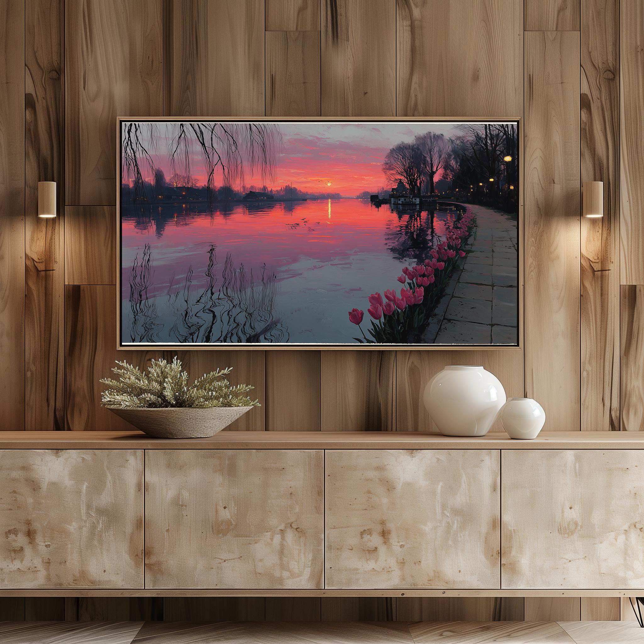 Tranquil Lake Sunset Frame TV Art: Scenic Landscape (Digital Download)