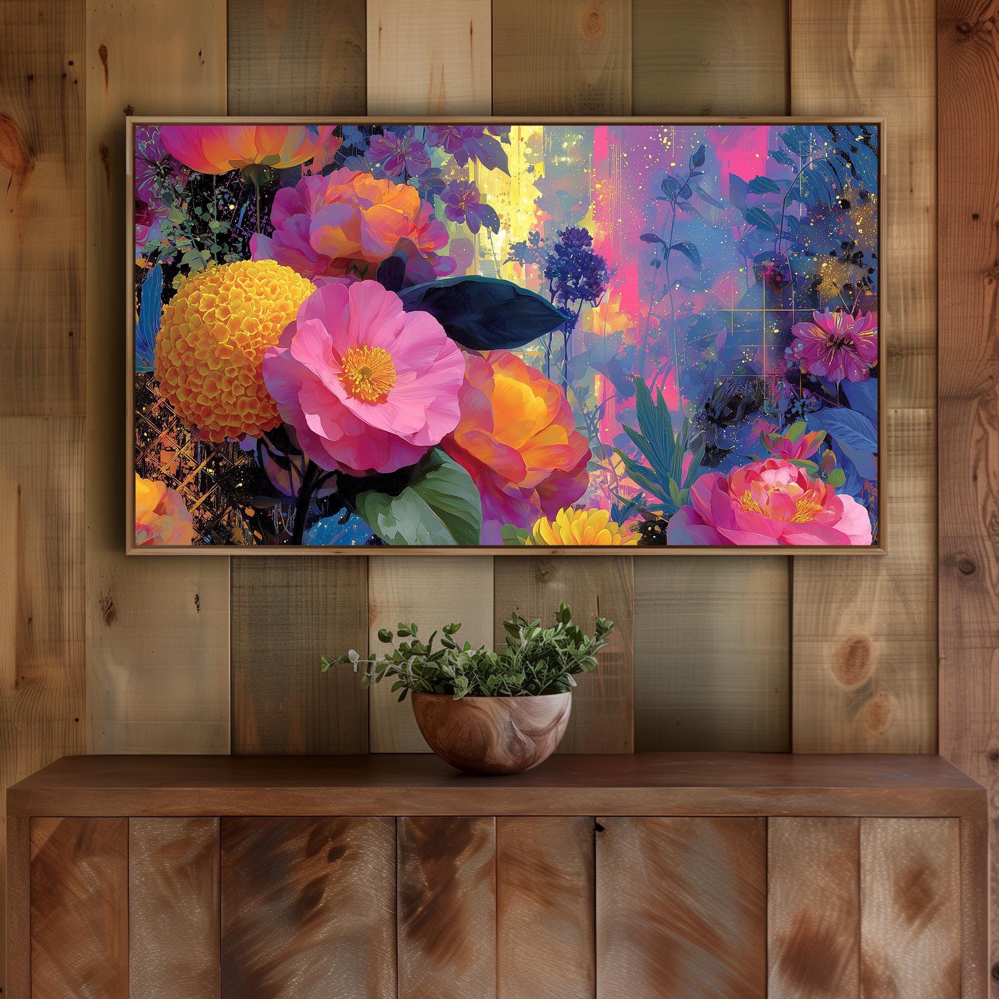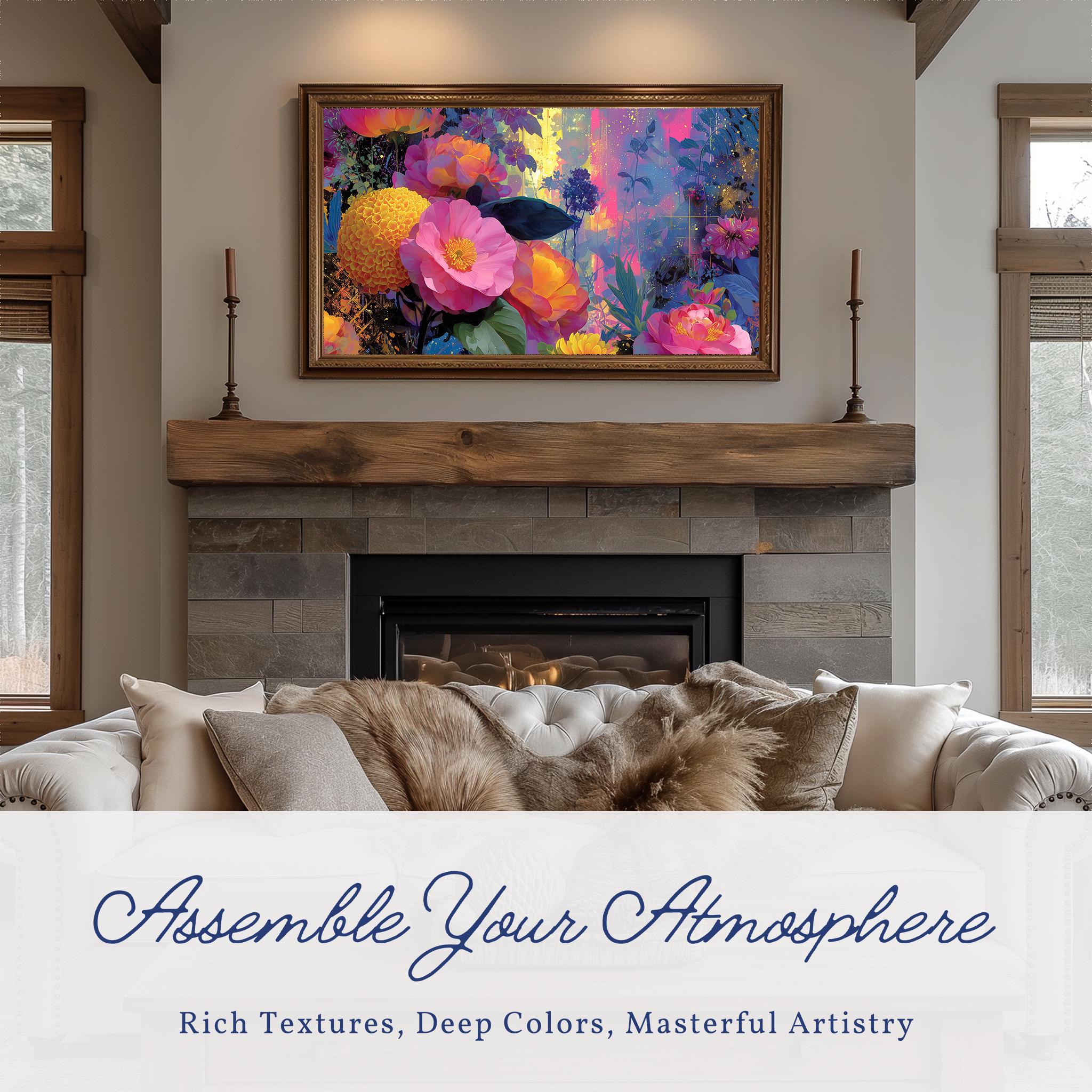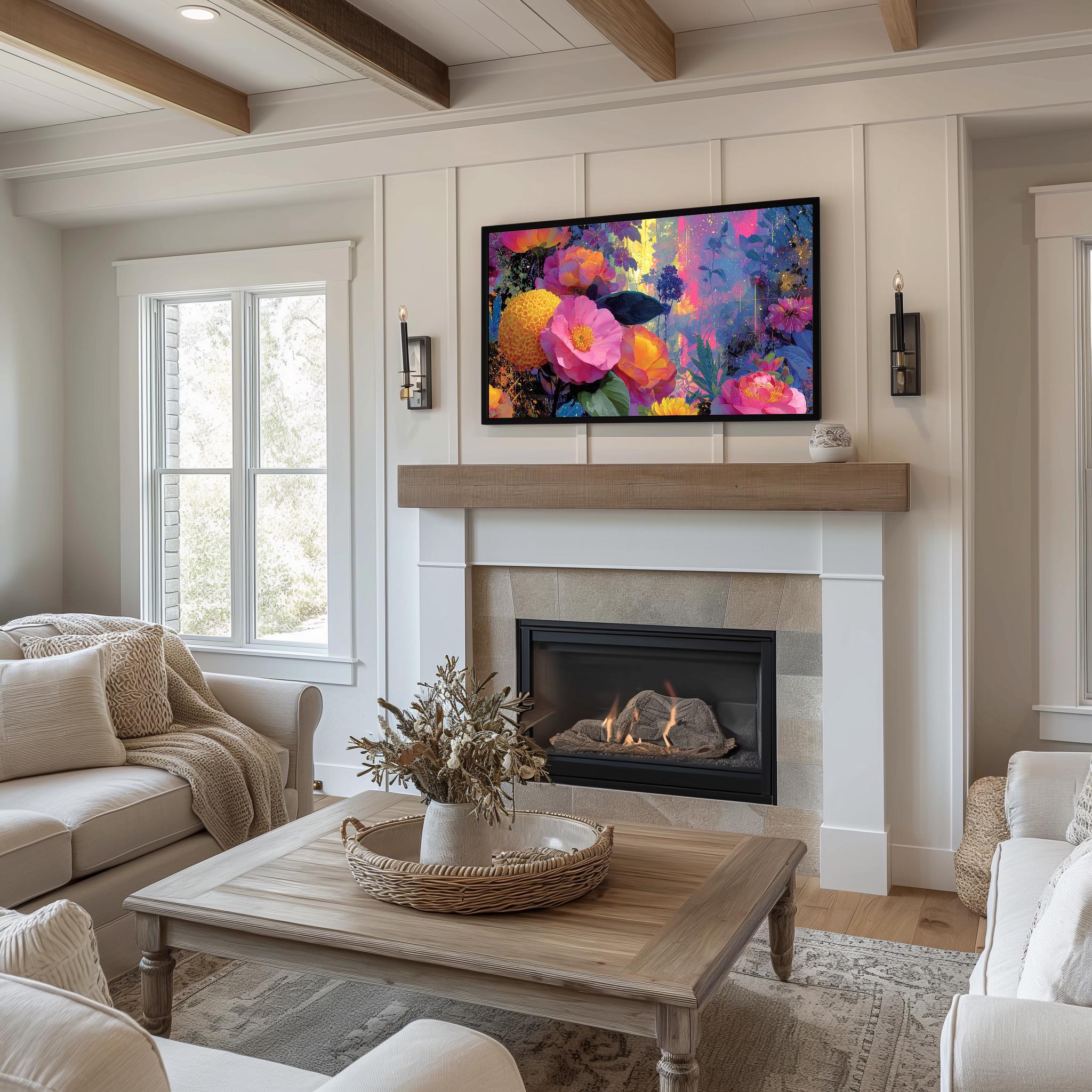 Floral Frame TV Art, Colorful Abstract Painting (Digital Download)