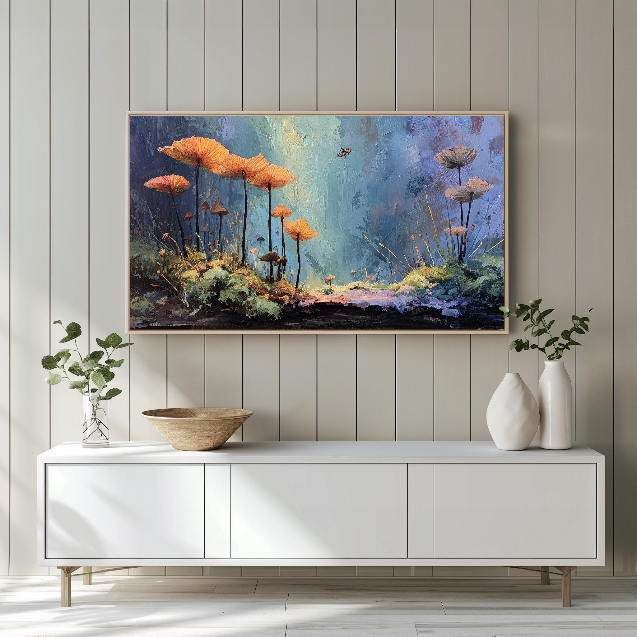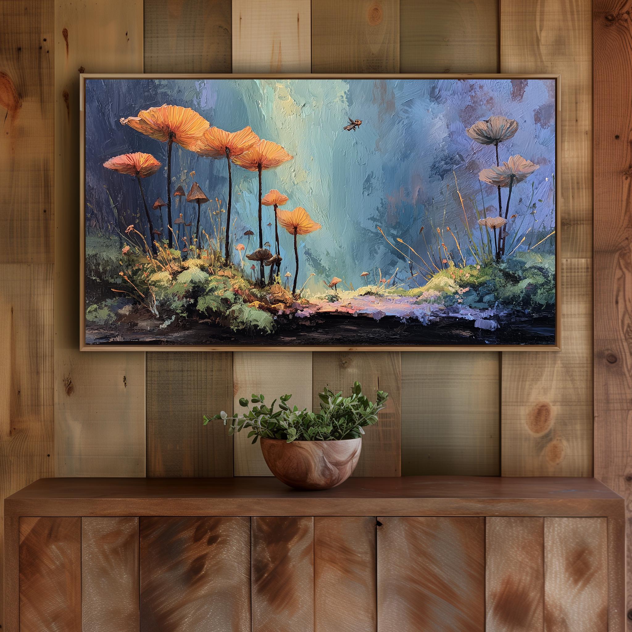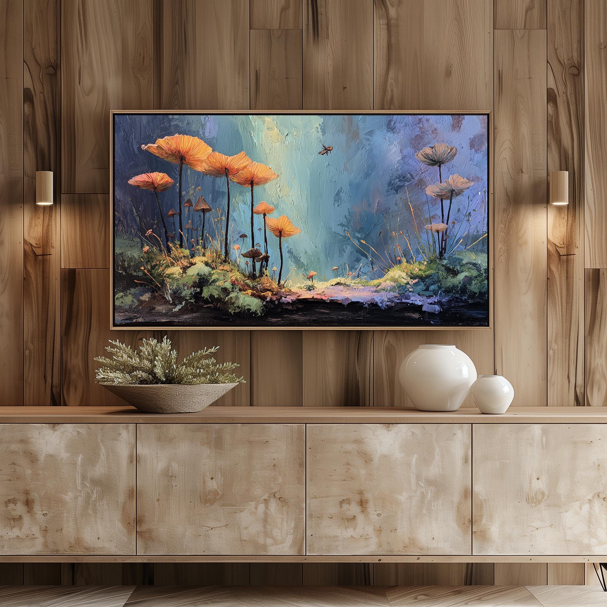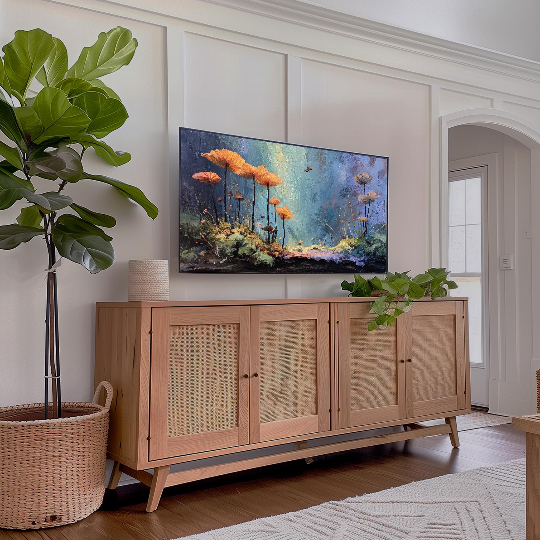 Enchanted Forest Glow Frame TV Art Immerse yourself in the vibrant hues of nature with our enchanting mossy floor painting. This exquisite digital download transforms your TV into a breathtaking display of rustic wall art, perfect for adding a touch of serenity to your living space. Ideal for nature lovers, this artwork is designed to enhance your home decor while providing a captivating focal point. Perfect for all seasons, bringing the tranquility of the forest indoors year-round.