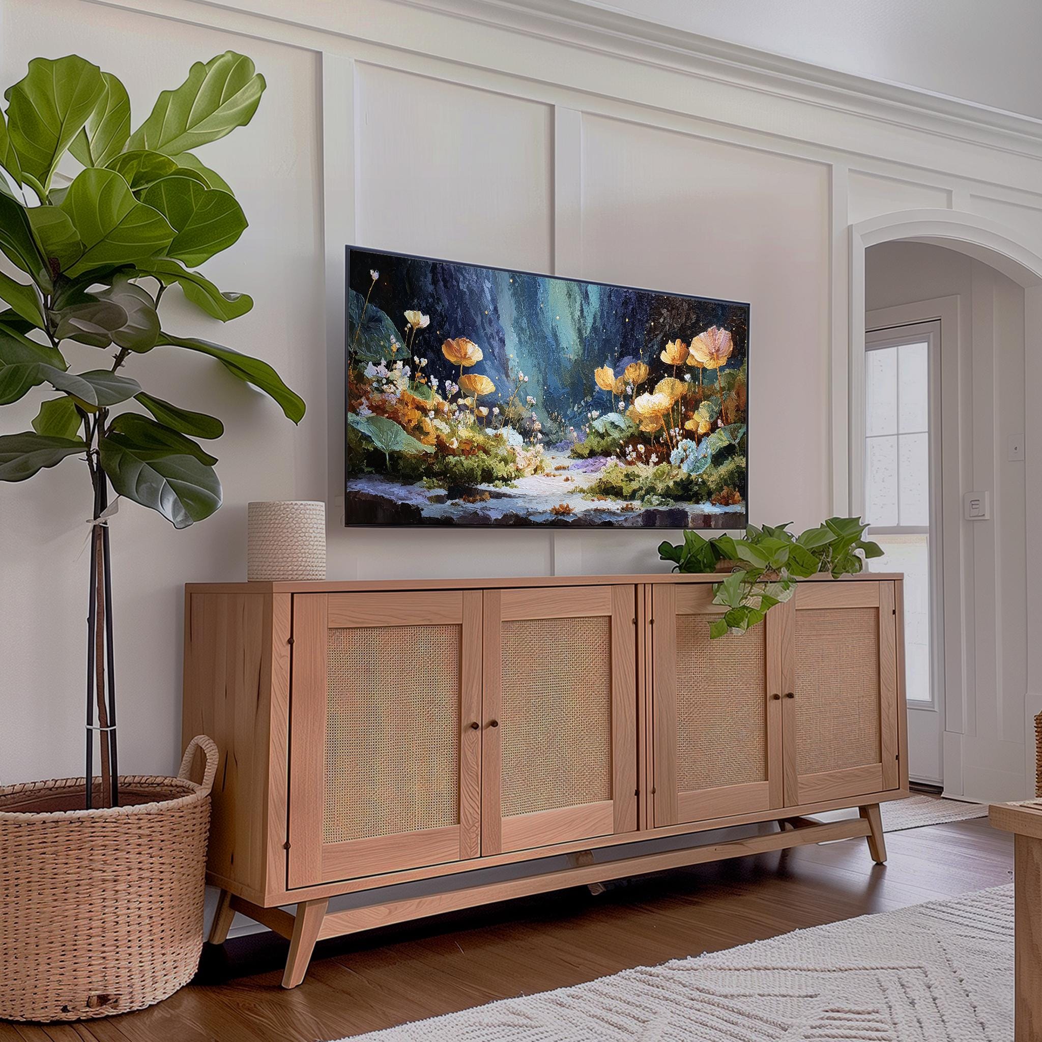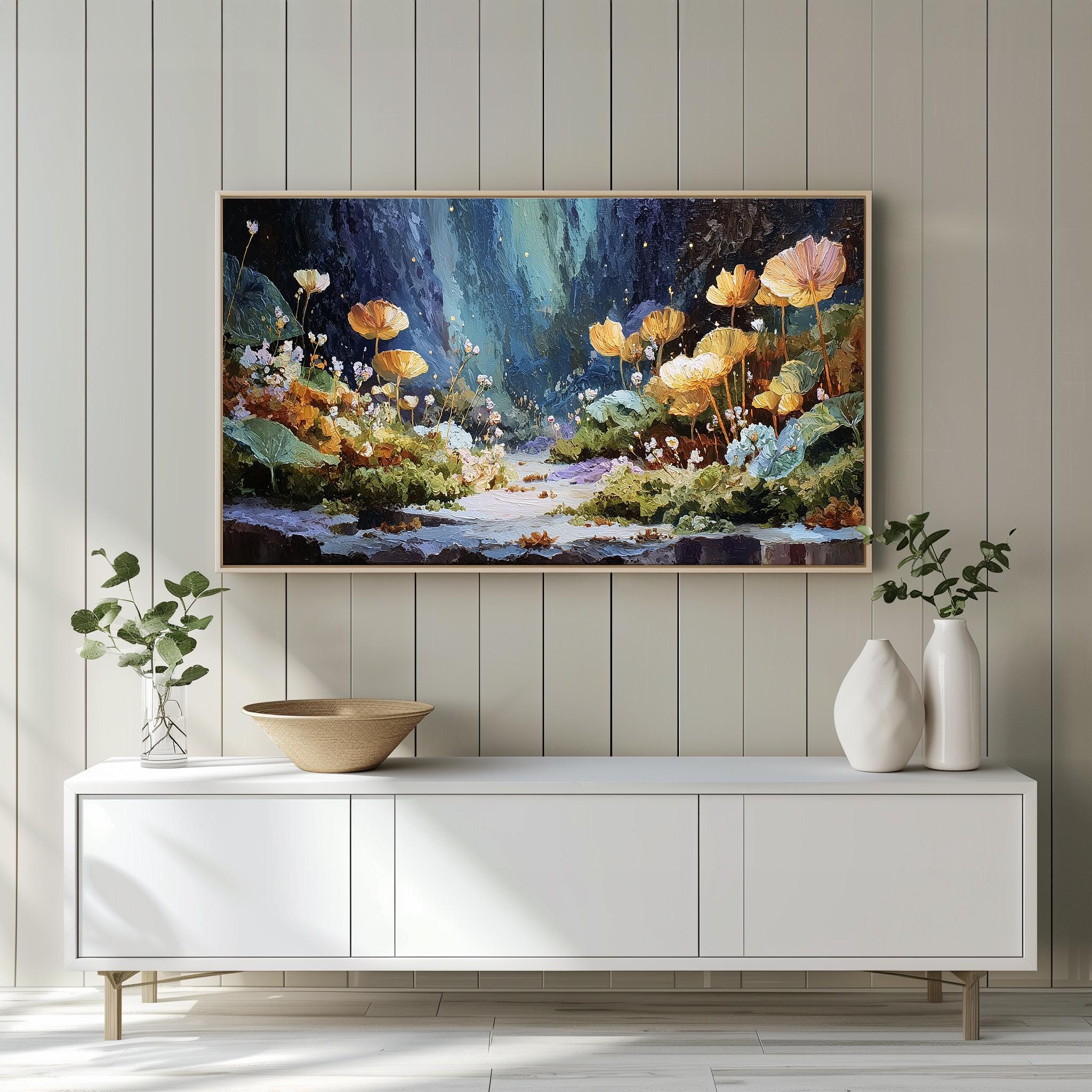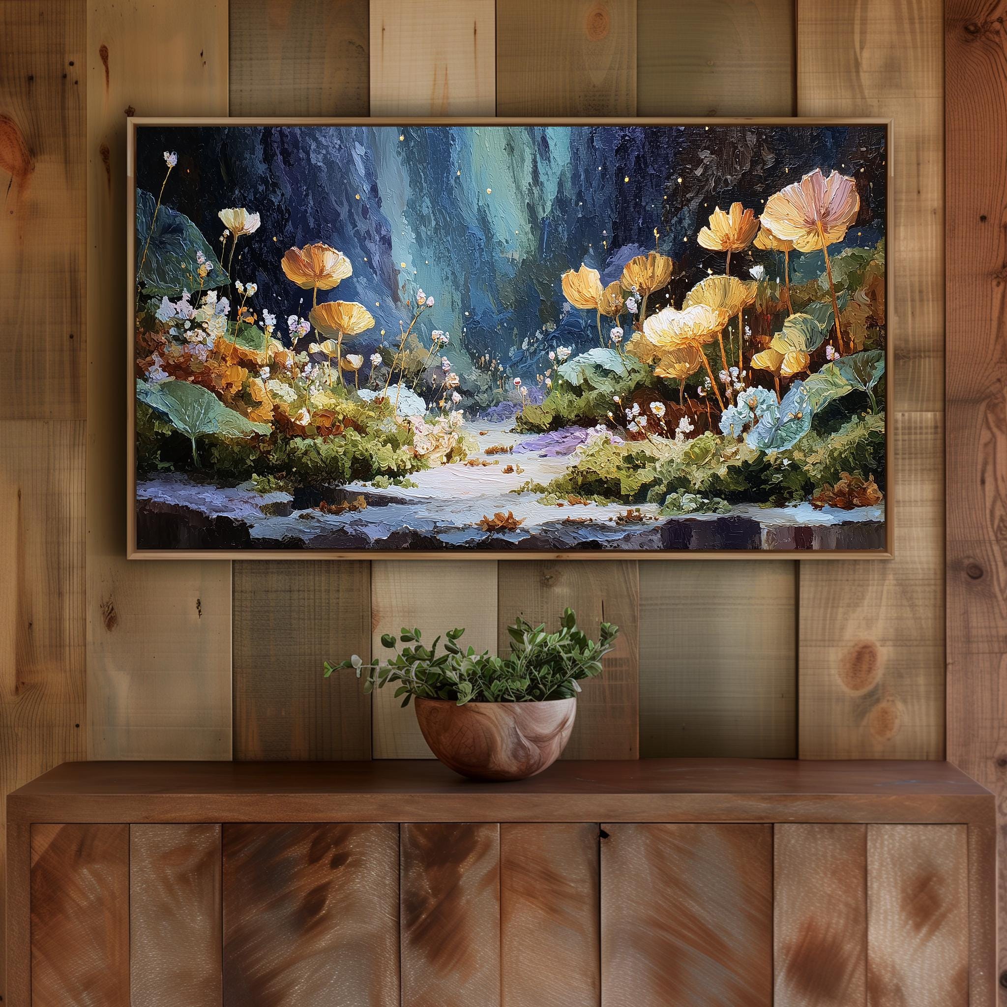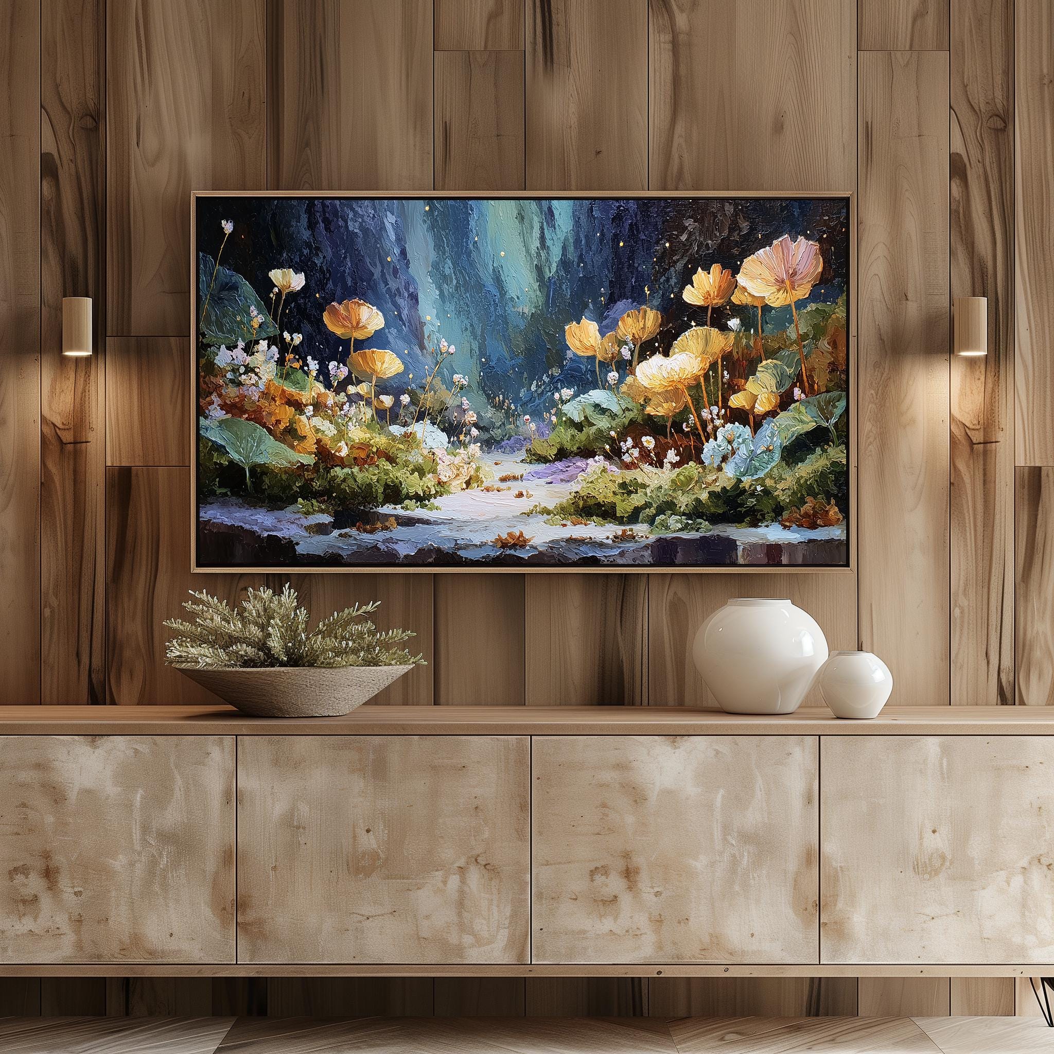 Enchanted Forest Floor TV Art – A Captivating Mossy Glow for Your Space Transform your living area with our stunning Enchanted Forest Floor TV Art. This beautiful digital painting showcases a serene wilderness landscape, featuring vibrant mossy textures that glow with an enchanting charm. Perfect for a rustic wall decor vibe, this piece will enhance your Frame TV while bringing the tranquility of nature indoors. Ideal for lovers of cottagecore aesthetics and nature-inspired art, this artwork is a timeless addition to any home. Perfect for all seasons, this artwork captures the essence of nature year-round.