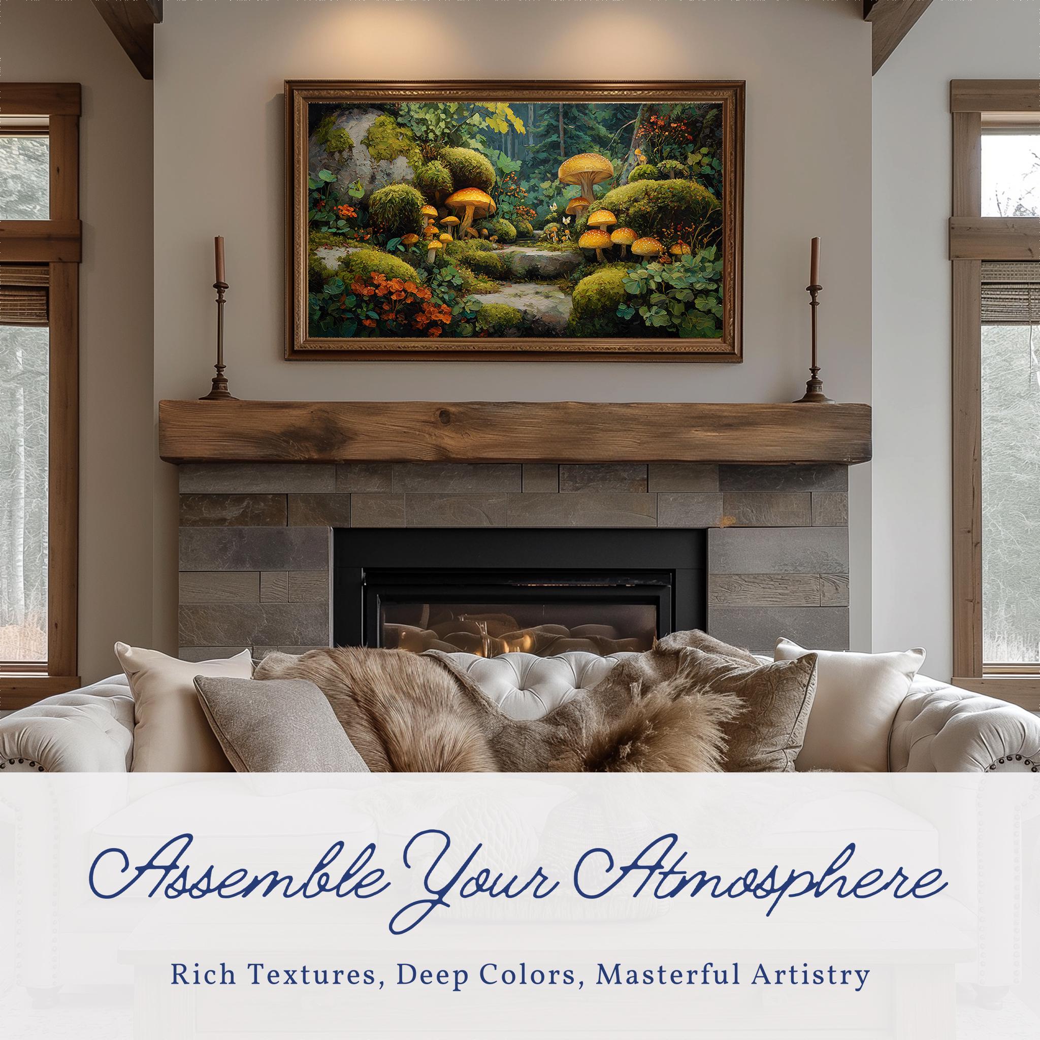 Rustic Forest Frame TV Art: Mossy Stones, Mushroom Decor (Digital Download 82" TV)
