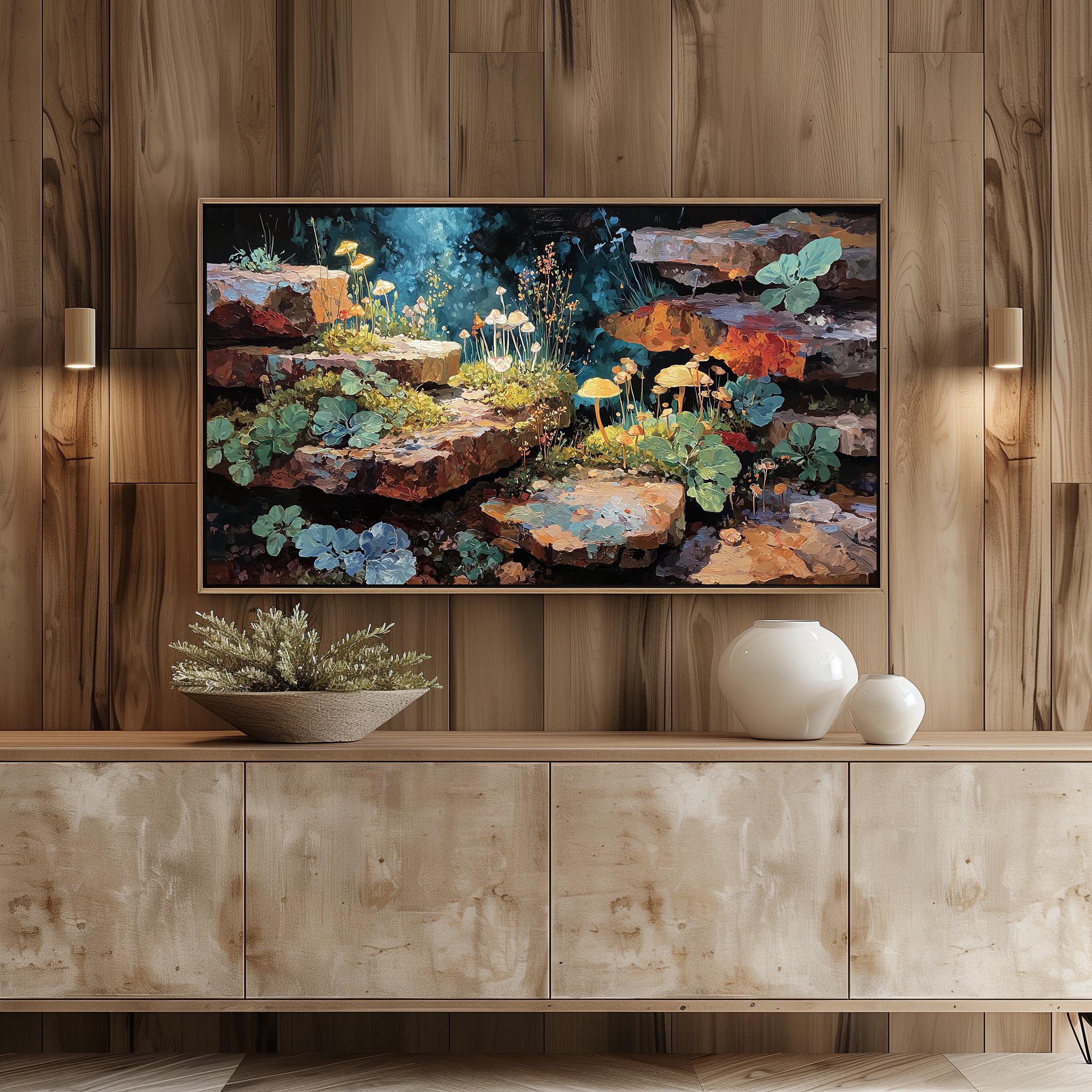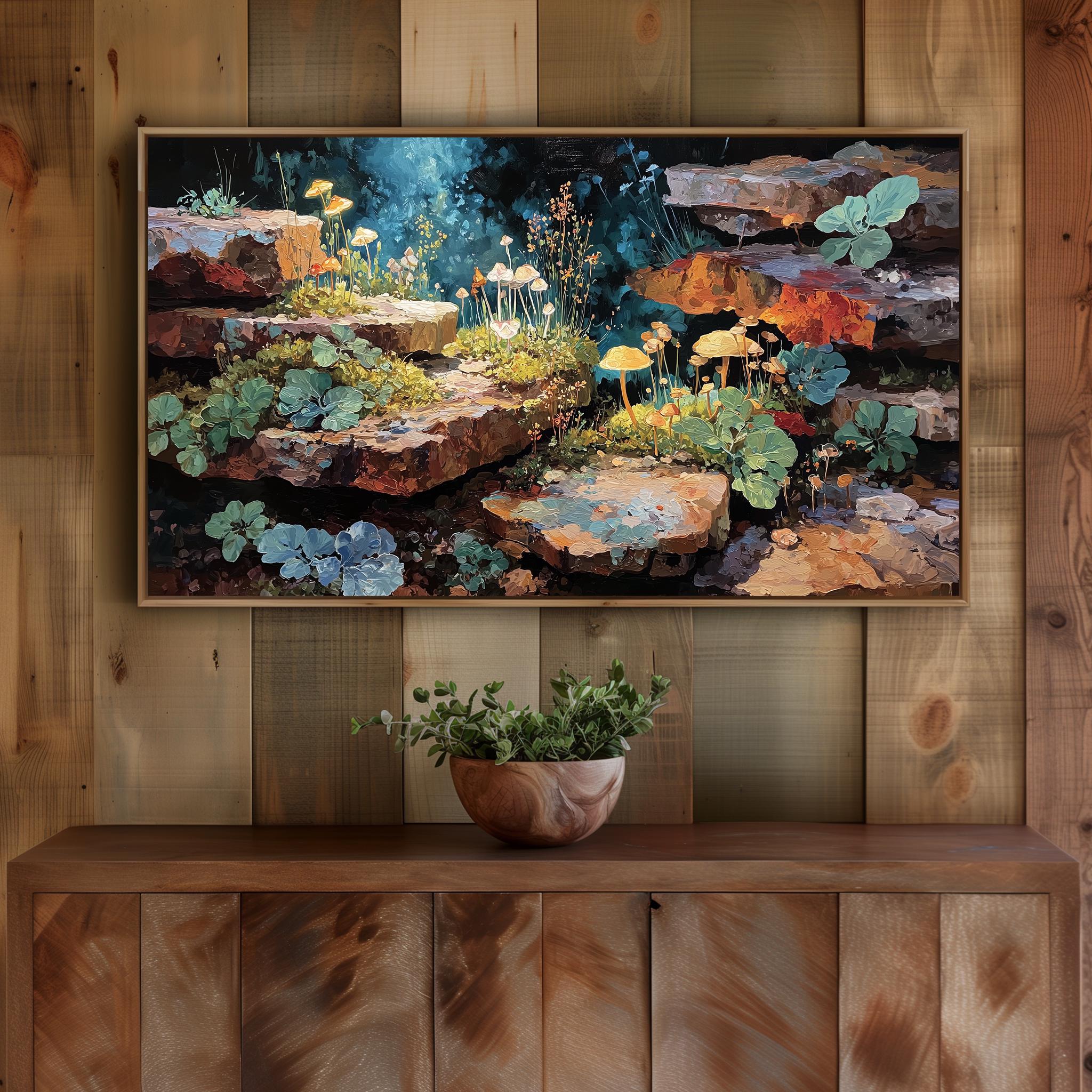 Enchanted Forest TV Art: Rustic Stone Painting, Cottagecore Decor (Digital Download 3840x2160px)