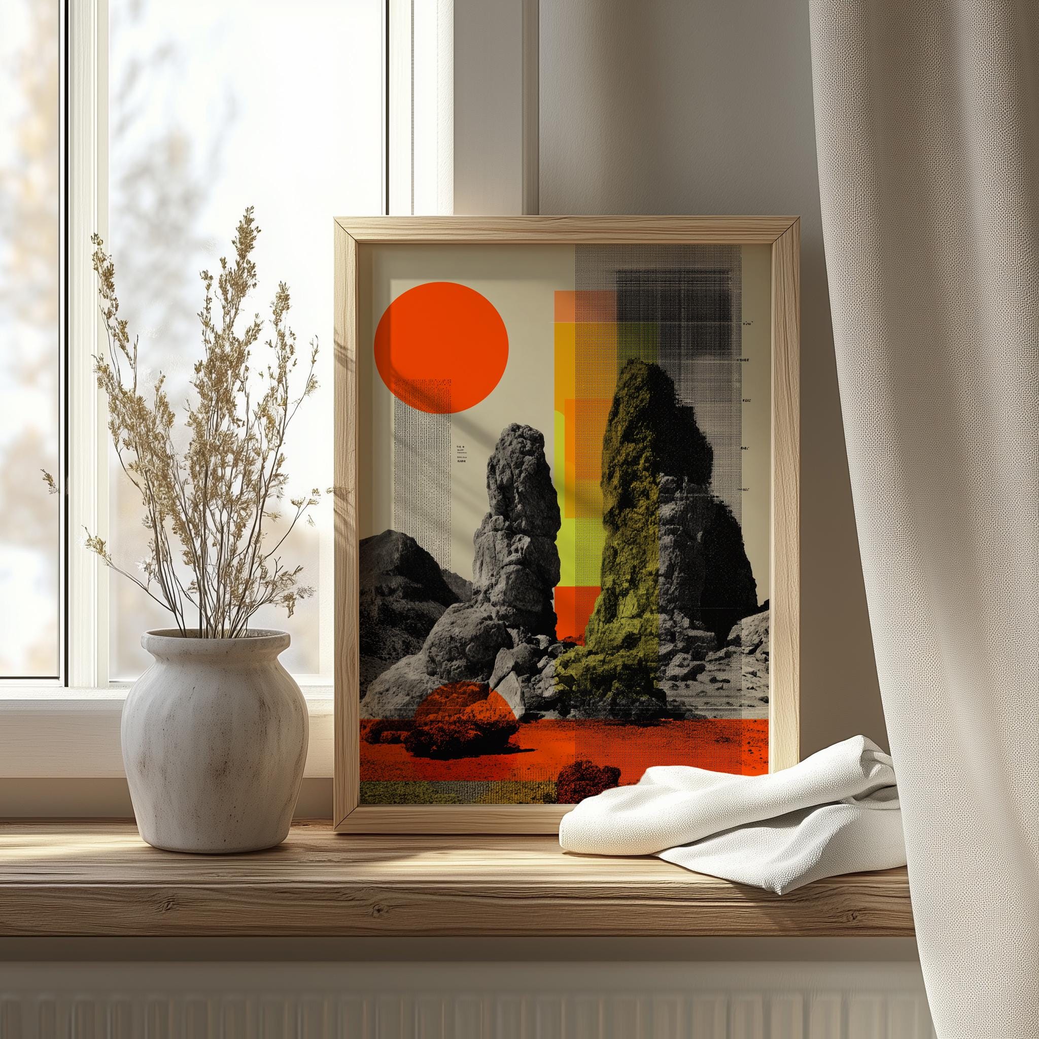 Abstract Brutalist Art Print: Orange & Black Modern Wall Decor (Digital Download