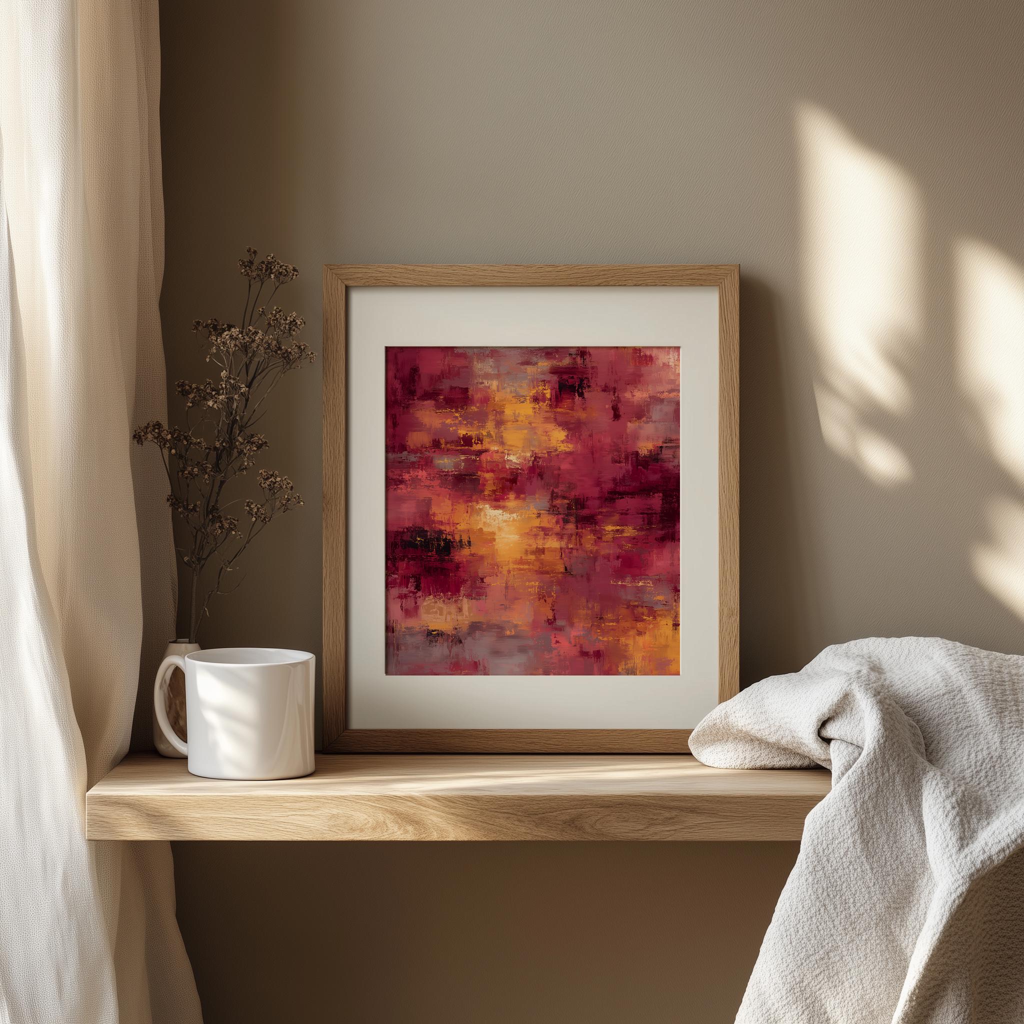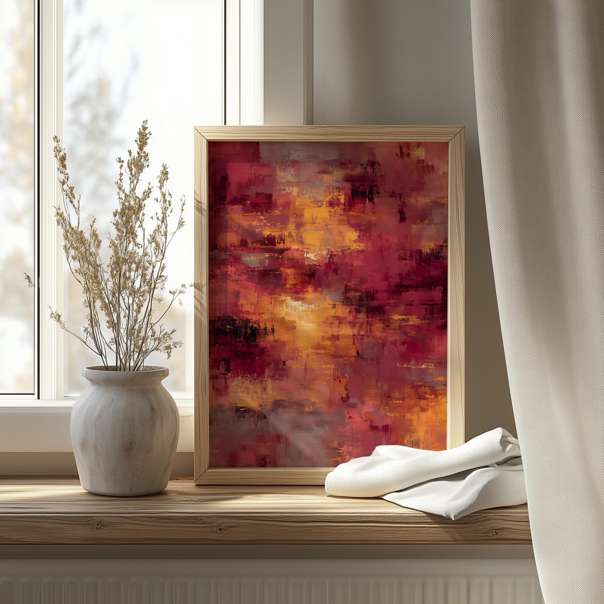 Abstract Composition with Rich Gradient Hues This stunning piece captures the essence of autumn with its earthy warm colors and moody atmosphere, making it a perfect addition to your rustic decor. The rich hues blend seamlessly into each other, creating a captivating gradient that evokes the changing seasons and adds depth to any space. Ideal for those who appreciate digital art that is both timeless and modern. Autumn