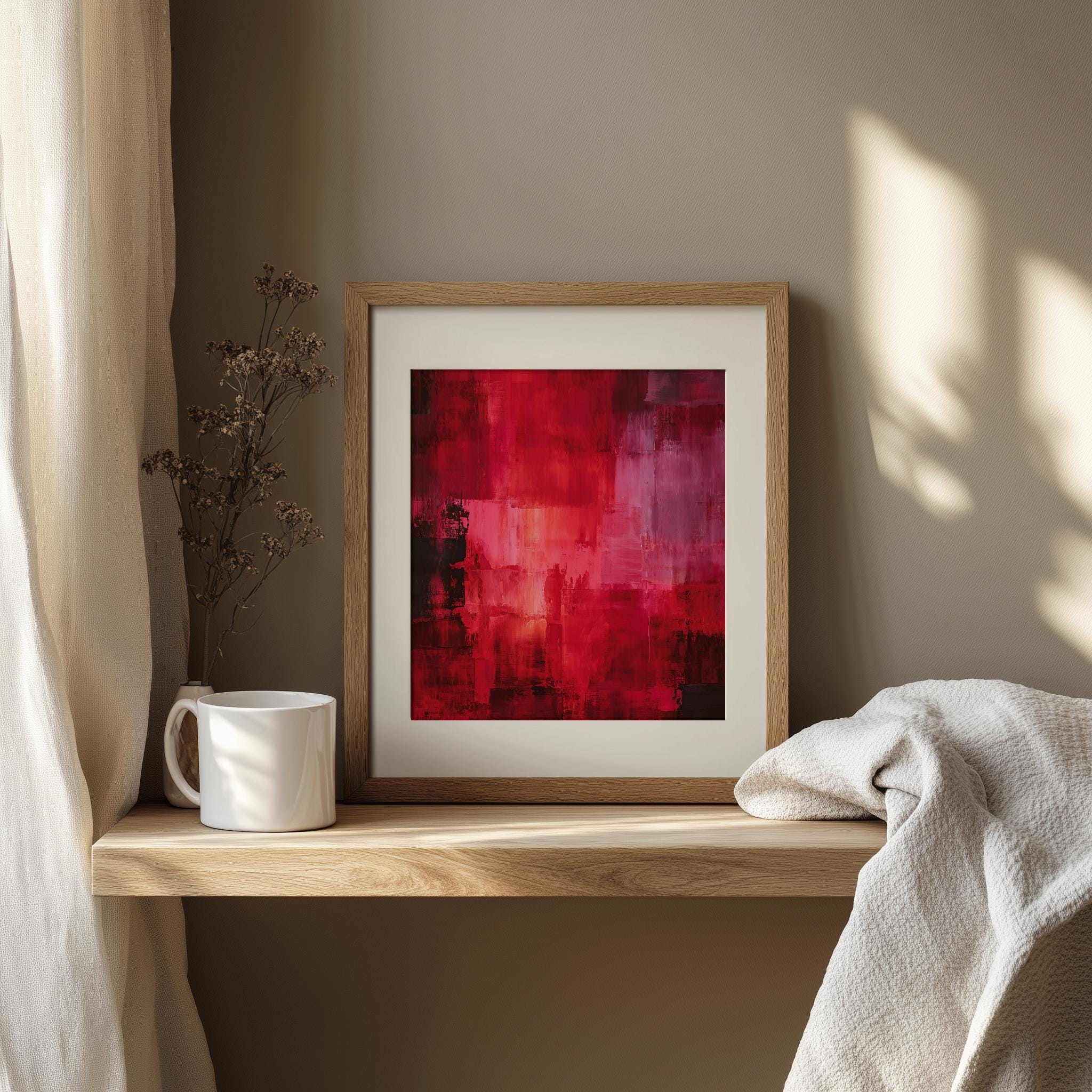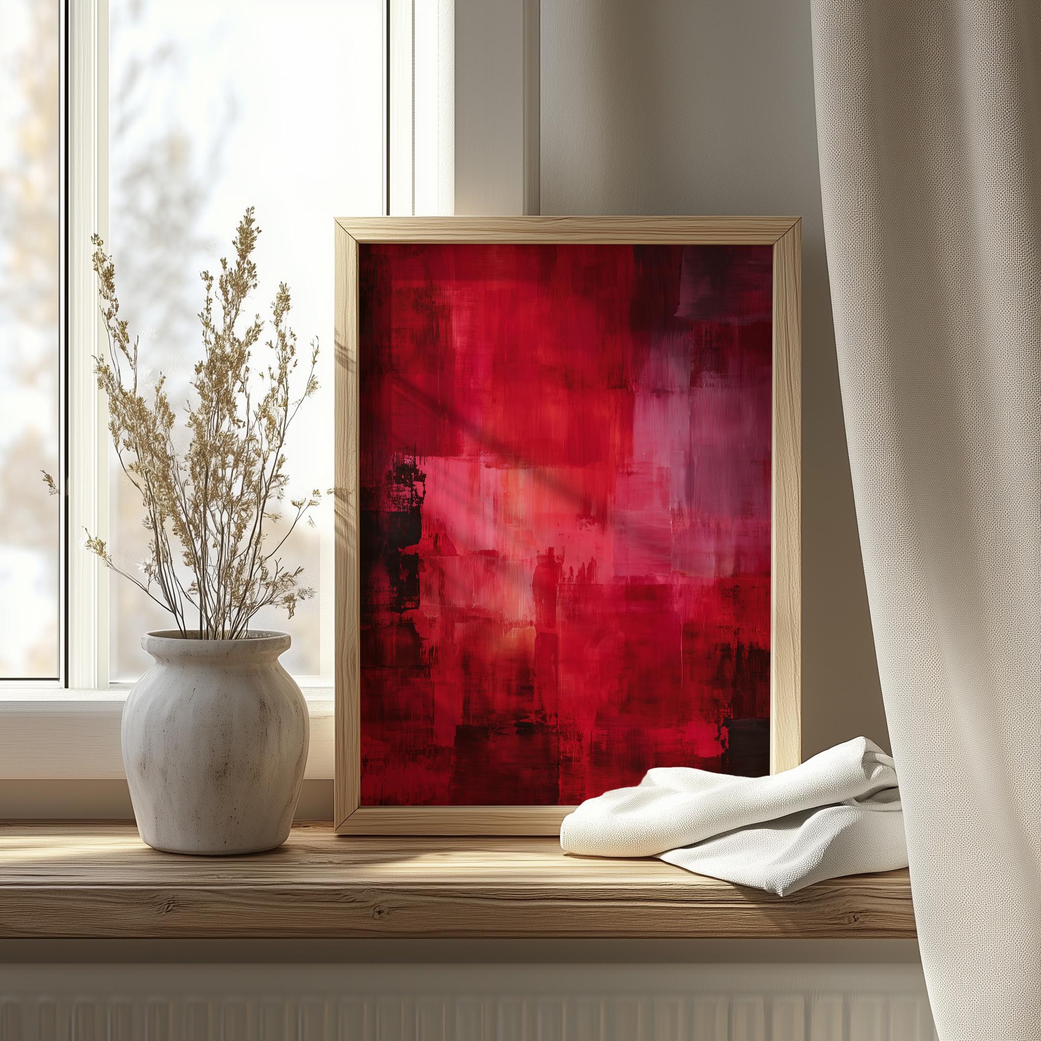 Abstract Gradient Red Wall Art - A Rich and Vibrant Addition to Your Space This stunning piece features a captivating blend of rich moody colors and dynamic abstract composition, making it the perfect focal point for any room. The digital print captures the essence of contemporary art with its lively gradient red hues, ideal for adding a touch of rustic charm to your interior design. Transform your walls with this printable decor, perfect for art lovers seeking to enhance their home ambiance. Perfect for year-round display, bringing warmth and vibrancy to your home decor.