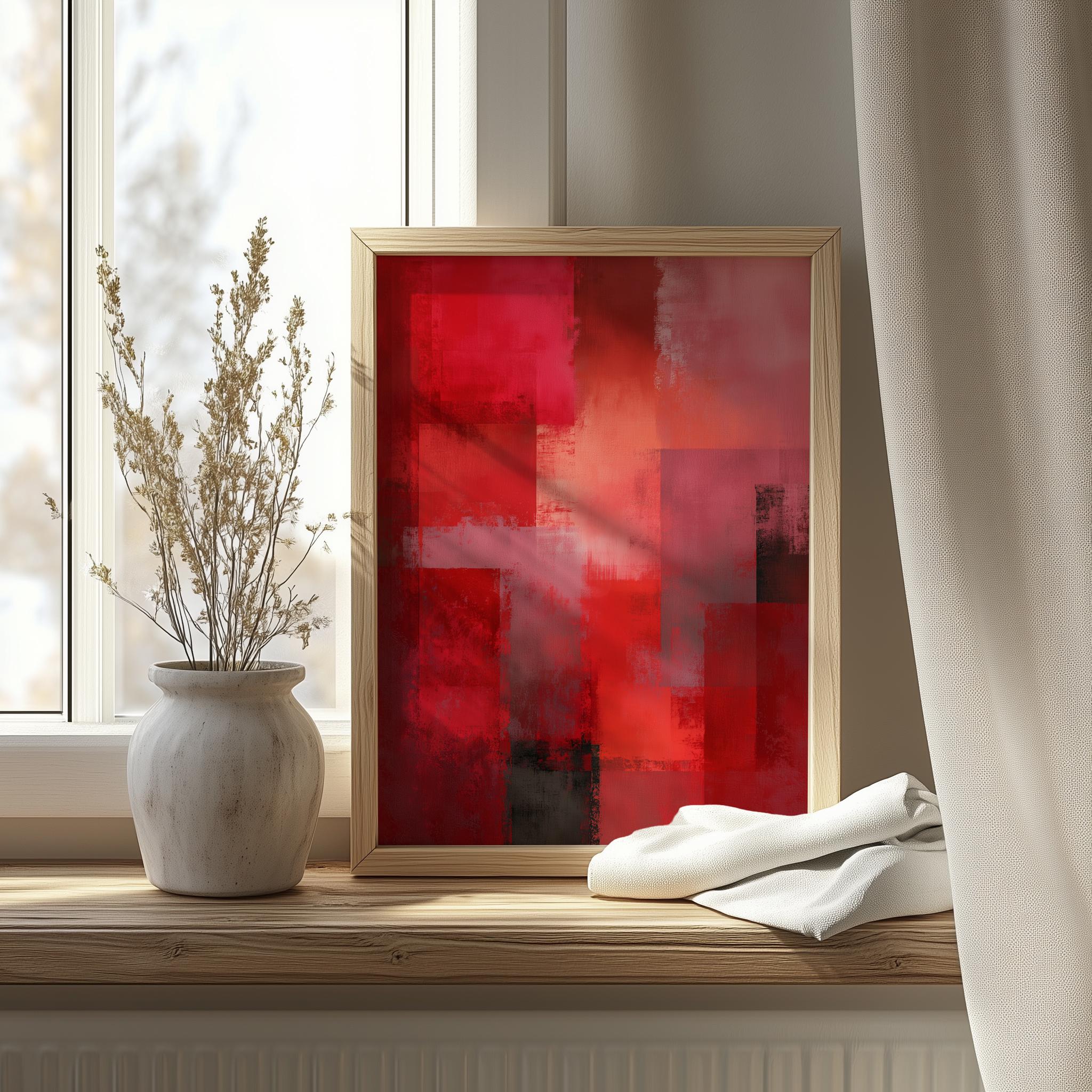 Crimson Abstract Art Print - A Captivating Blend of Rustic Earthy Tones and Vivid Red This stunning artwork captures the essence of moody elegance, featuring vibrant red hues intertwined with earthy tones. Perfect for adding a unique touch to your living space, this abstract print brings warmth and character to any room. Whether you're looking to enhance your home decor or searching for a distinctive gift, this printable modern painting is sure to impress. Ideal for all seasons, this piece complements both cozy winter evenings and vibrant summer days.