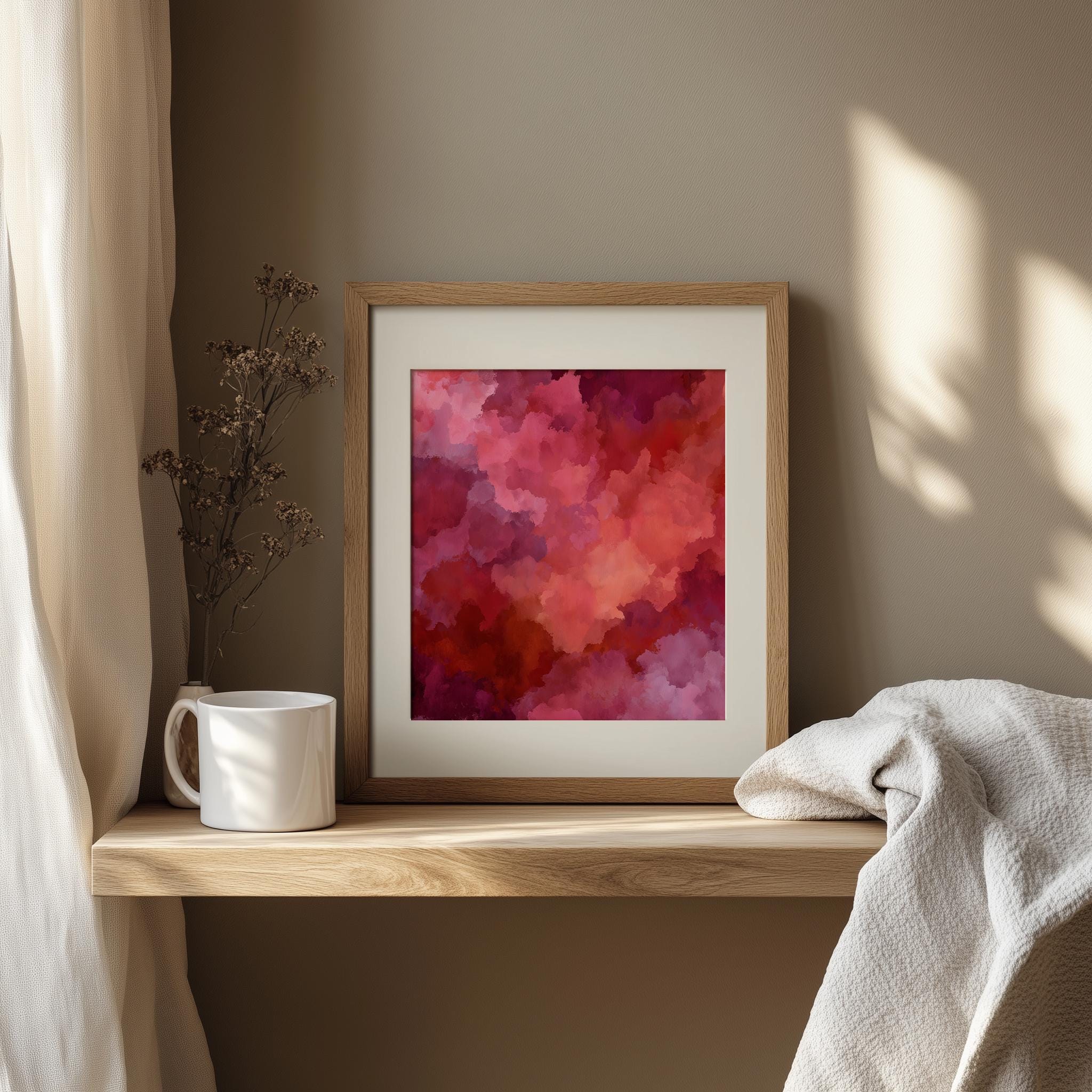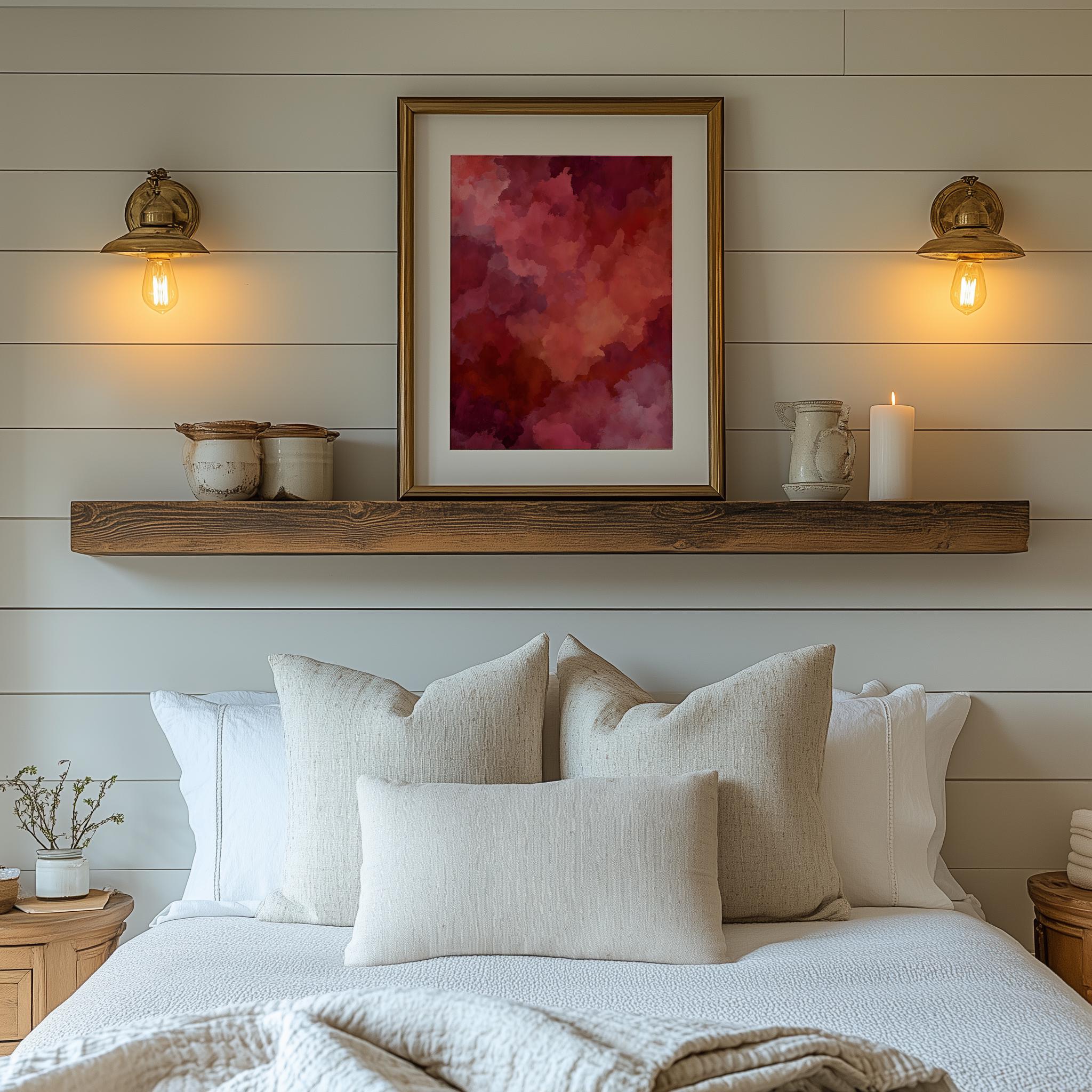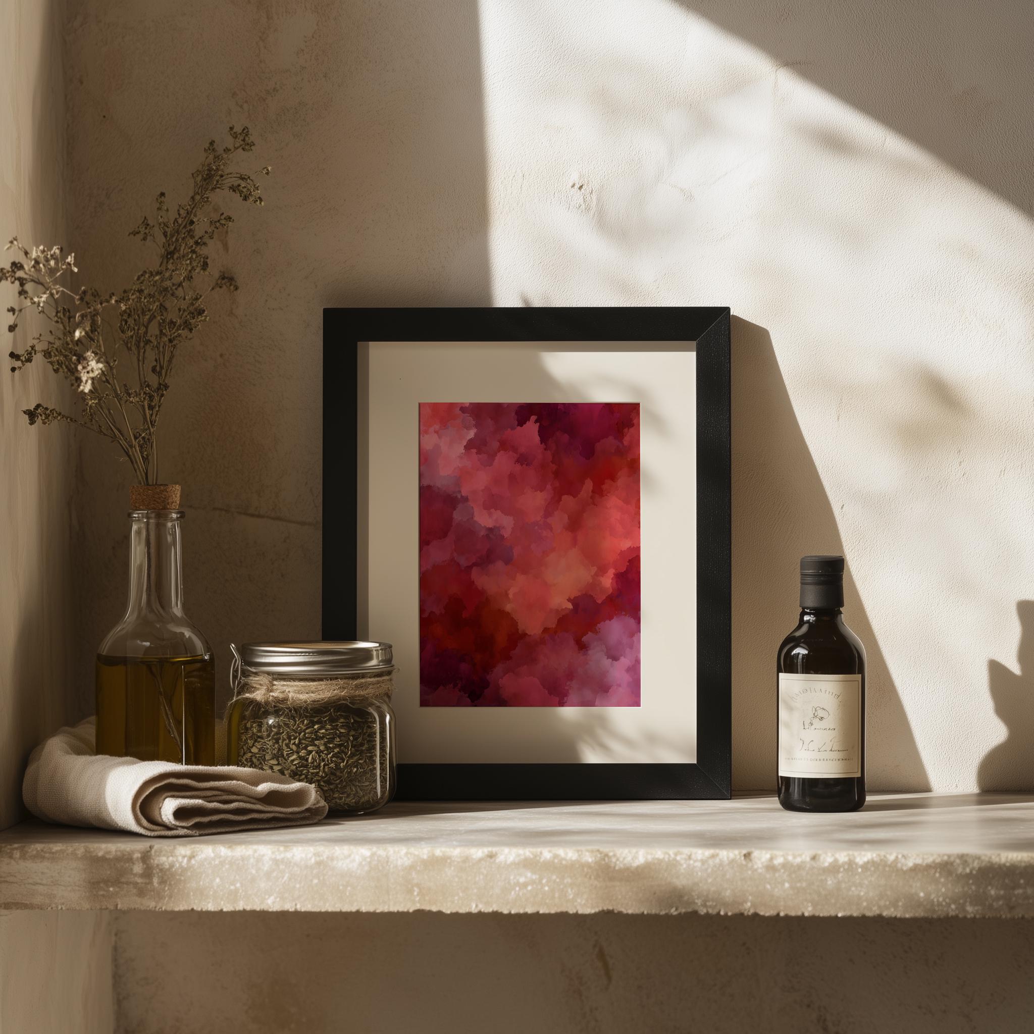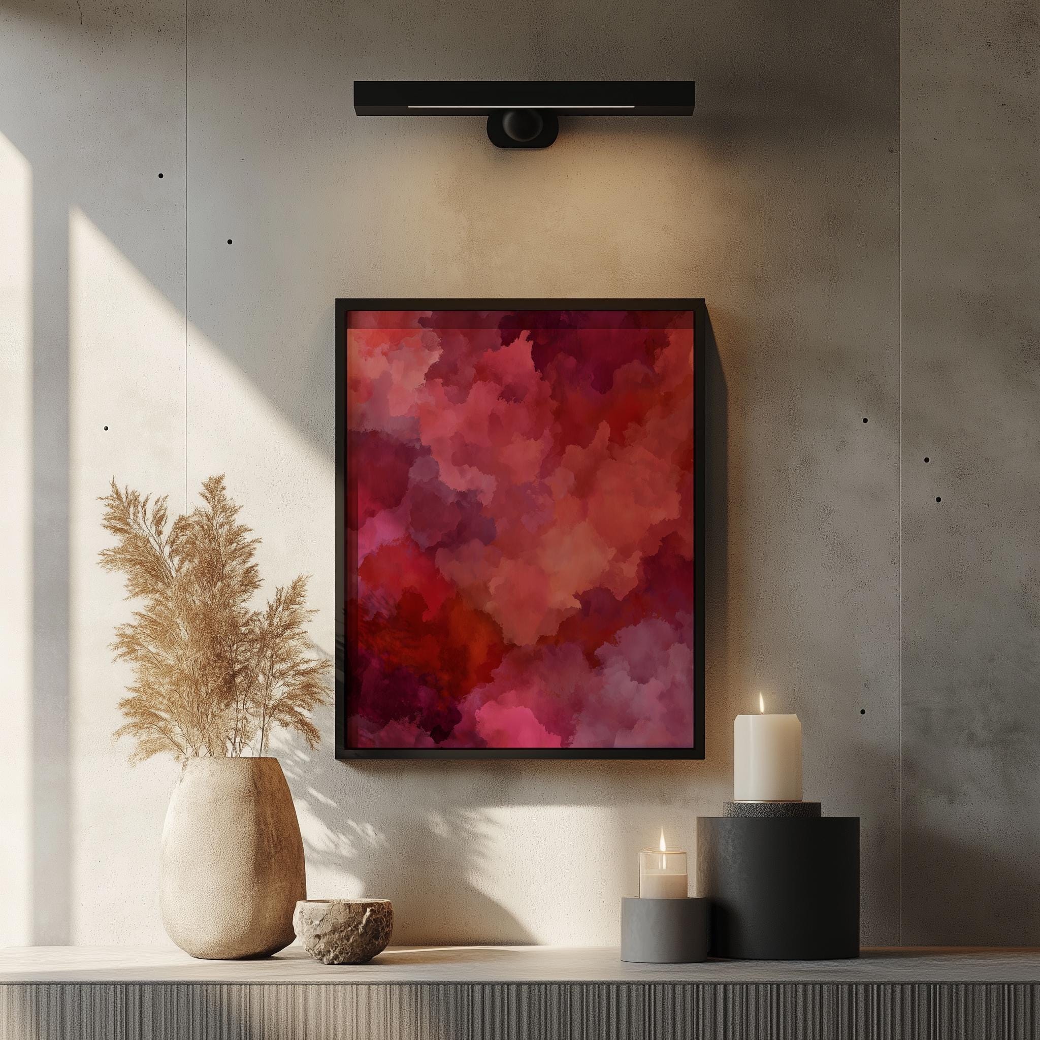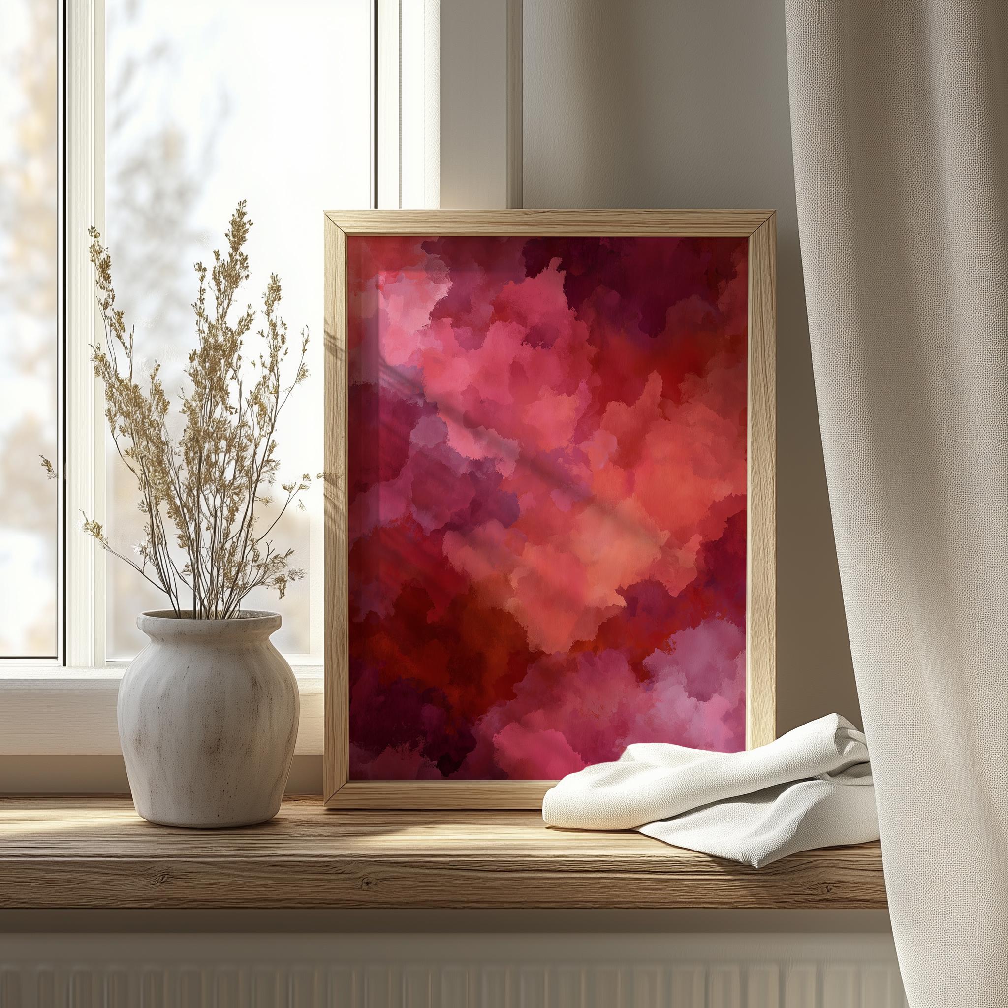Crimson Abstract Wall Art - Moody Tonal Painting This stunning piece features rich, vibrant red shades blending effortlessly into earthy tones, creating a captivating focal point for any room. Its moody ambiance makes it perfect for rustic bedroom decor or as a statement piece in your living space. This digital art print is designed for easy printing, allowing you to bring a touch of elegance and warmth to your home effortlessly. Ideal for cozy autumn evenings or as a vibrant contrast during the winter months.
