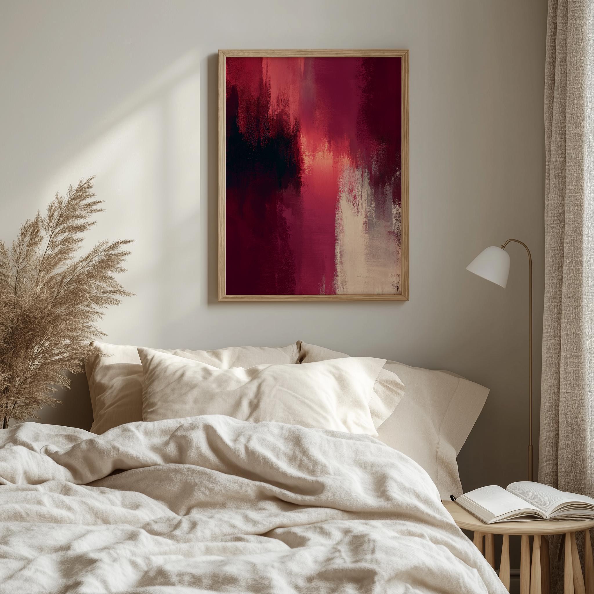 Moody Abstract Wall Art - Flowing Brushstrokes Painting This striking piece showcases a captivating interplay of red and black hues, perfect for adding a touch of drama to any room. The flowing brushstrokes create a sense of movement and depth, making it an eye-catching focal point for rustic modern or cottagecore interiors. Ideal for those who appreciate contemporary art with a moody twist, this digital download allows you to instantly elevate your home decor. Perfect for cozy autumn evenings, when warm colors and artistic expression bring comfort and inspiration to your space.