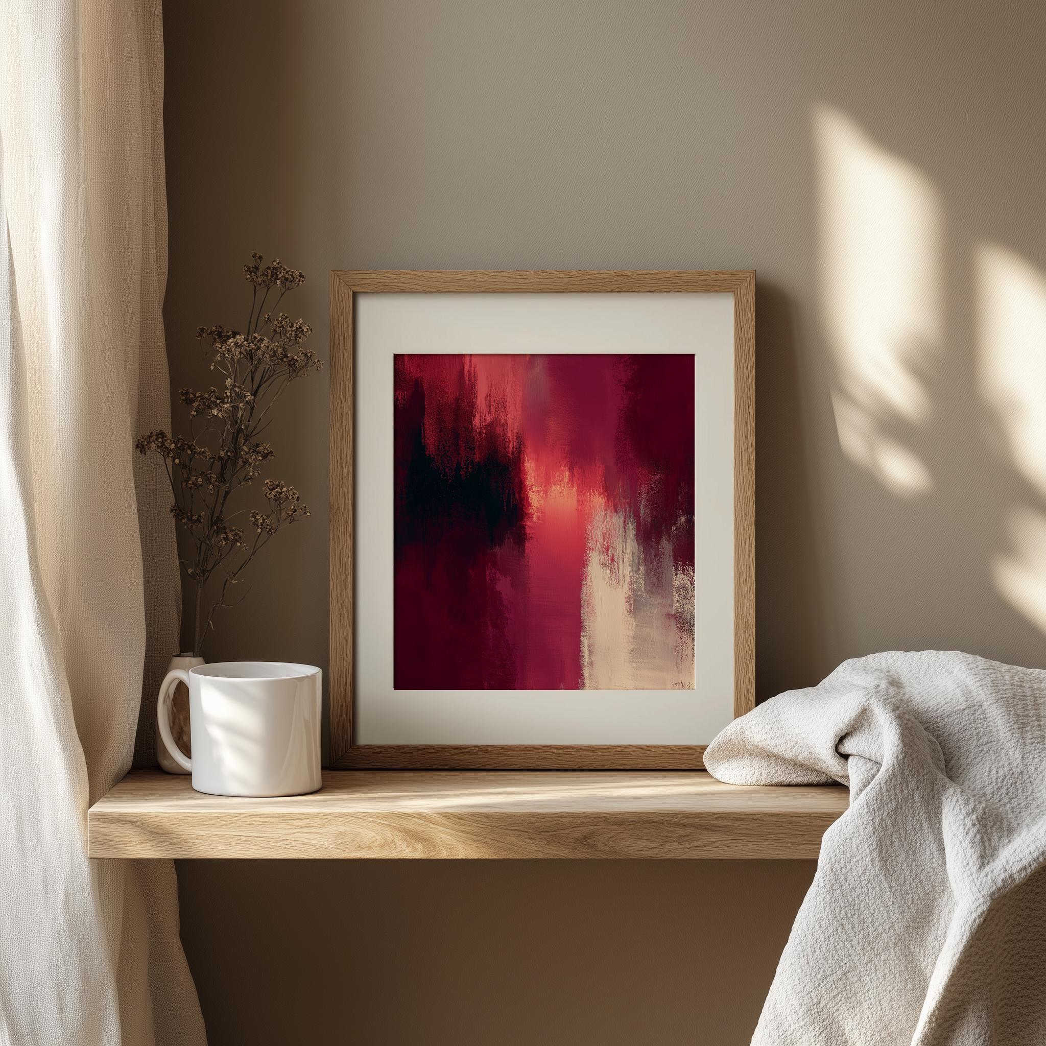 Moody Abstract Art Print: Red & Black Brushstrokes (Digital Download)
