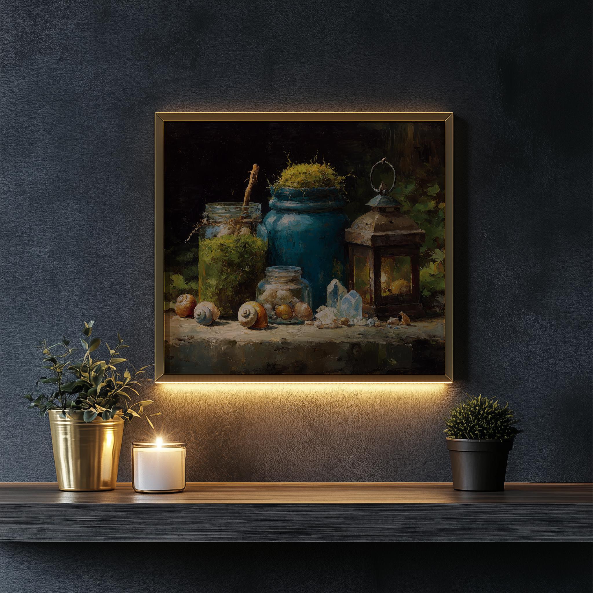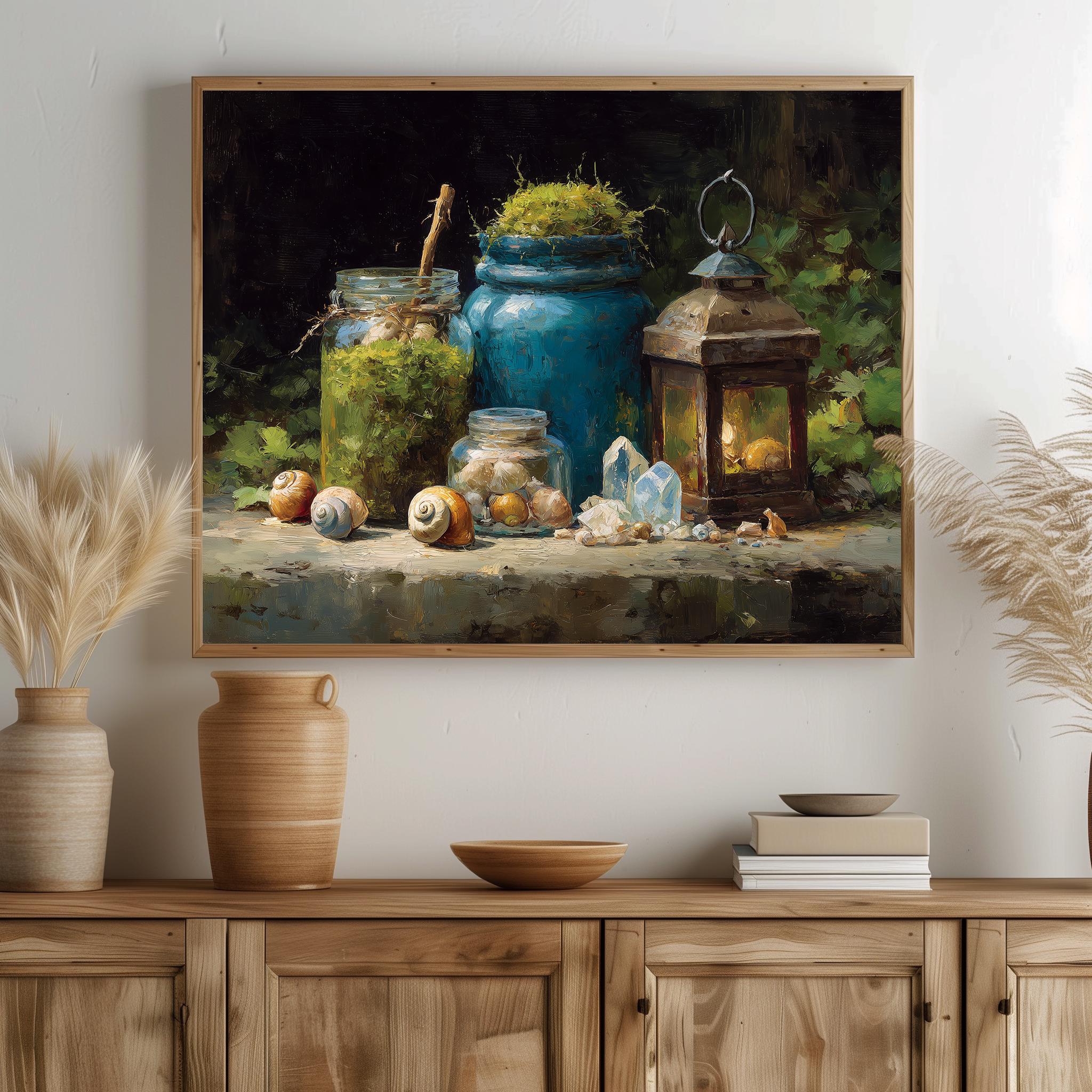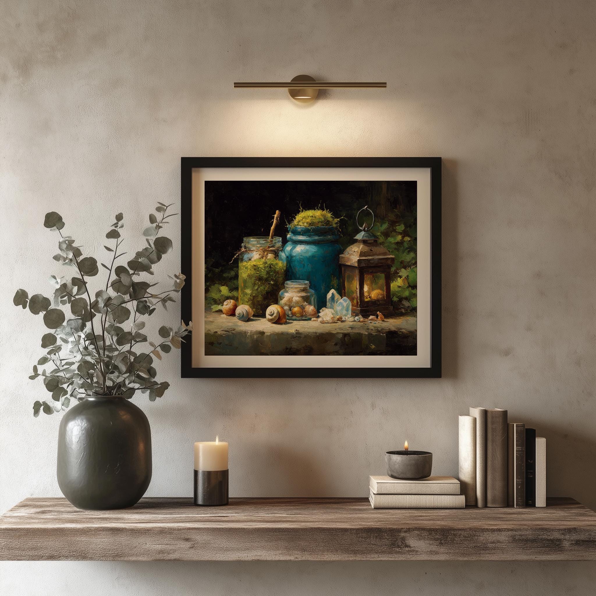 Rustic Lantern Still Life Print – Moody Cottagecore Home Decor (Digital Download)