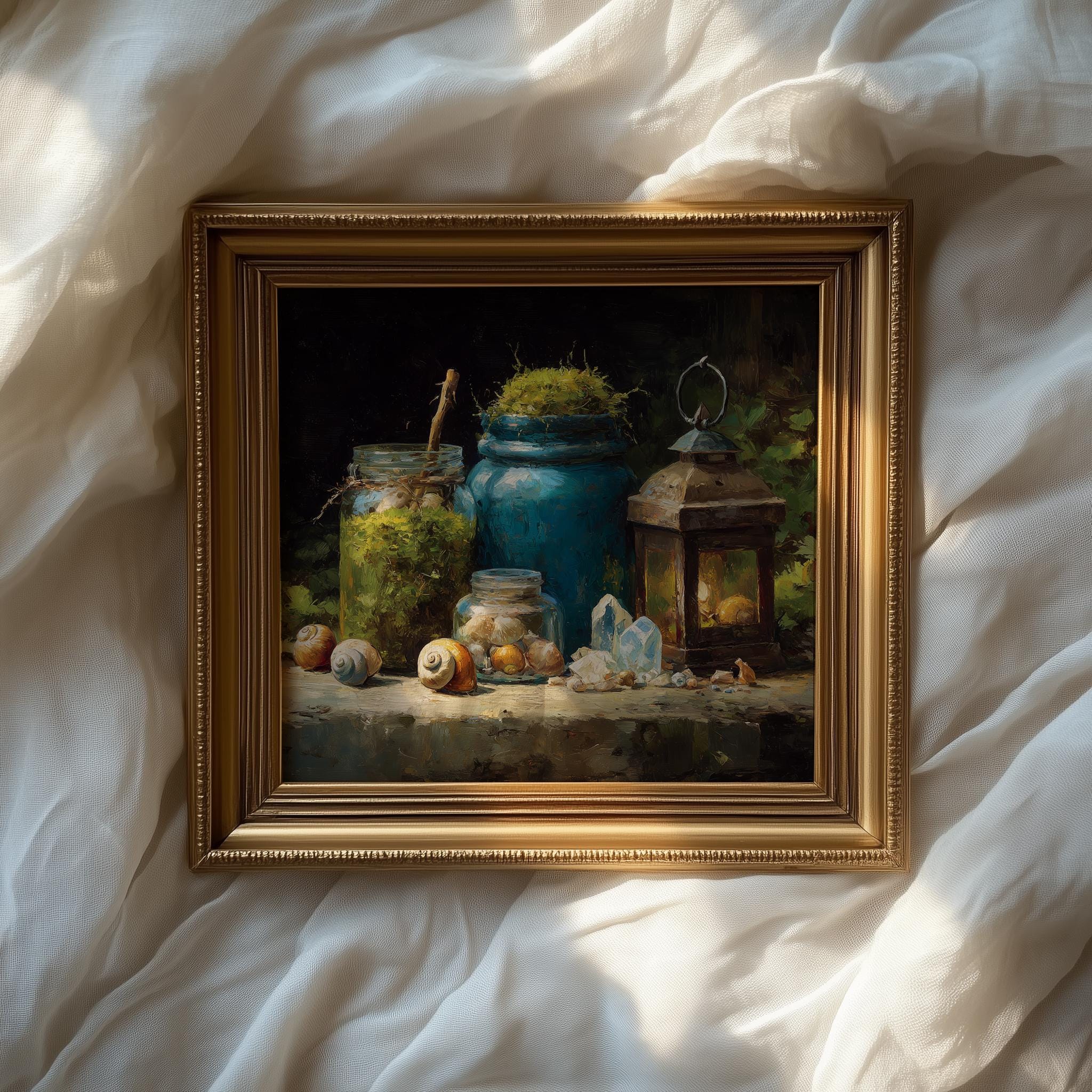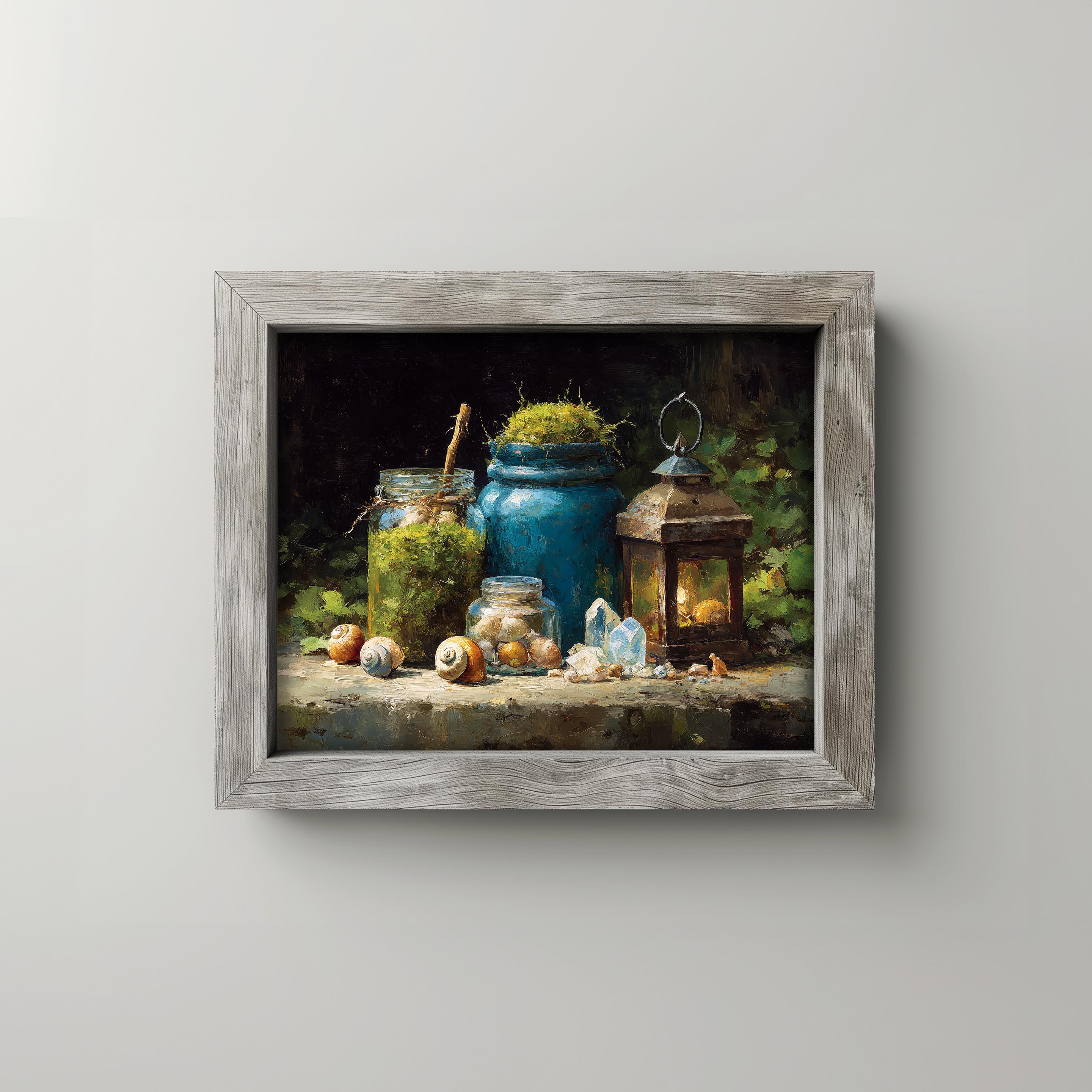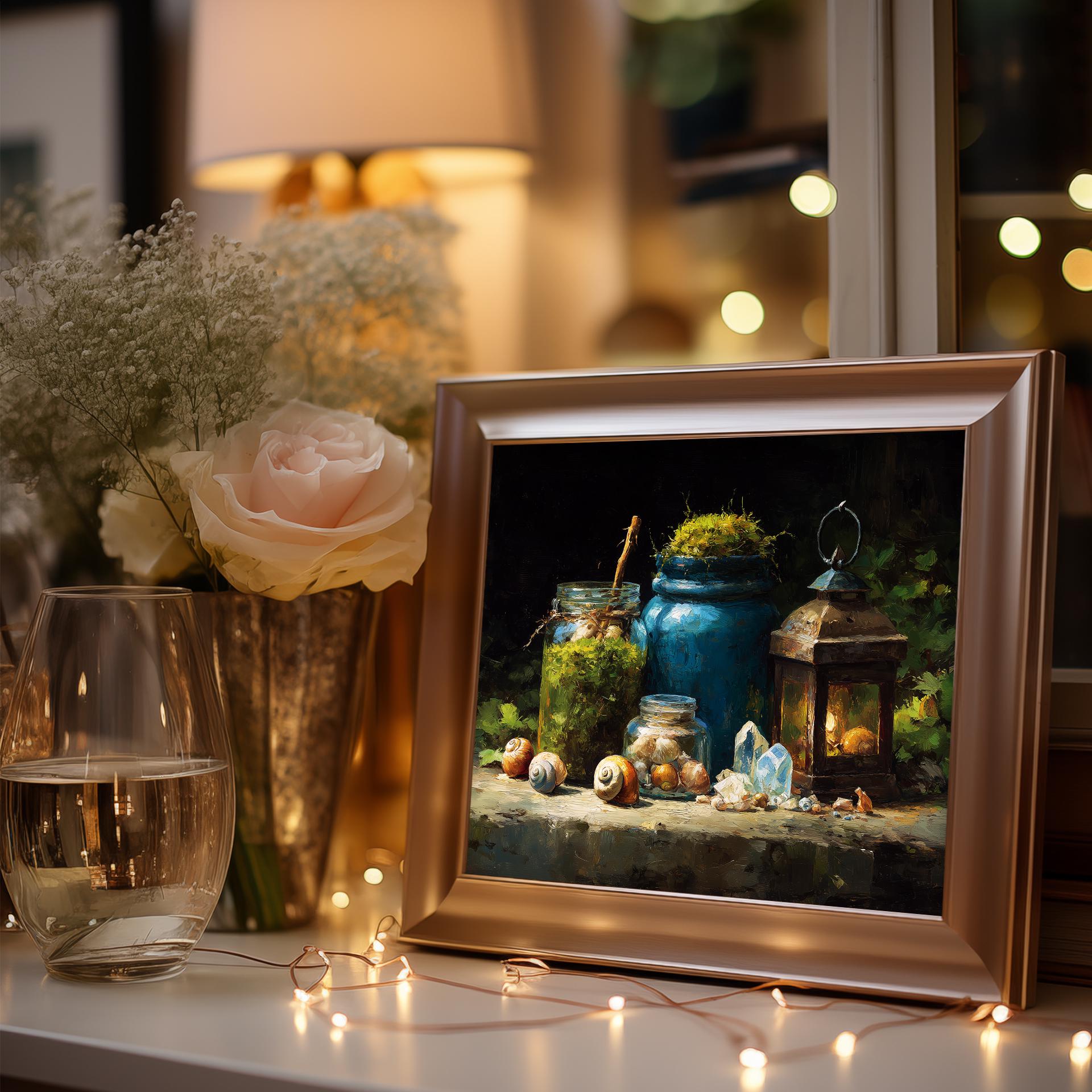 Rustic Lantern Still Life Print – Moody Cottagecore Home Decor (Digital Download)