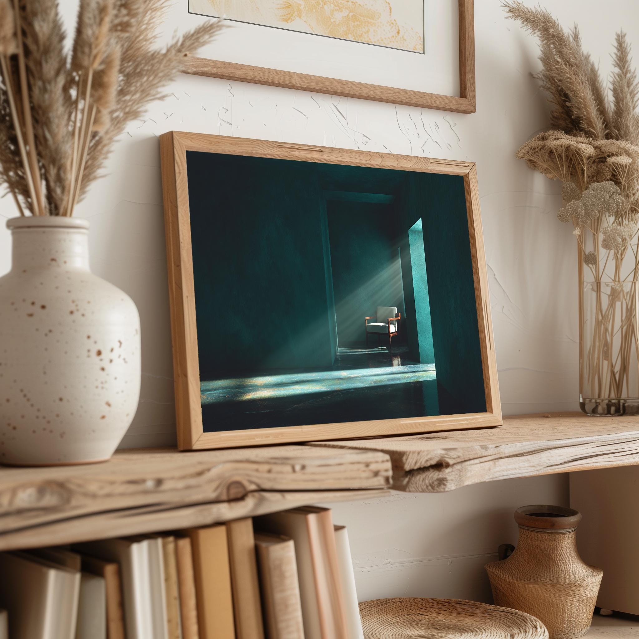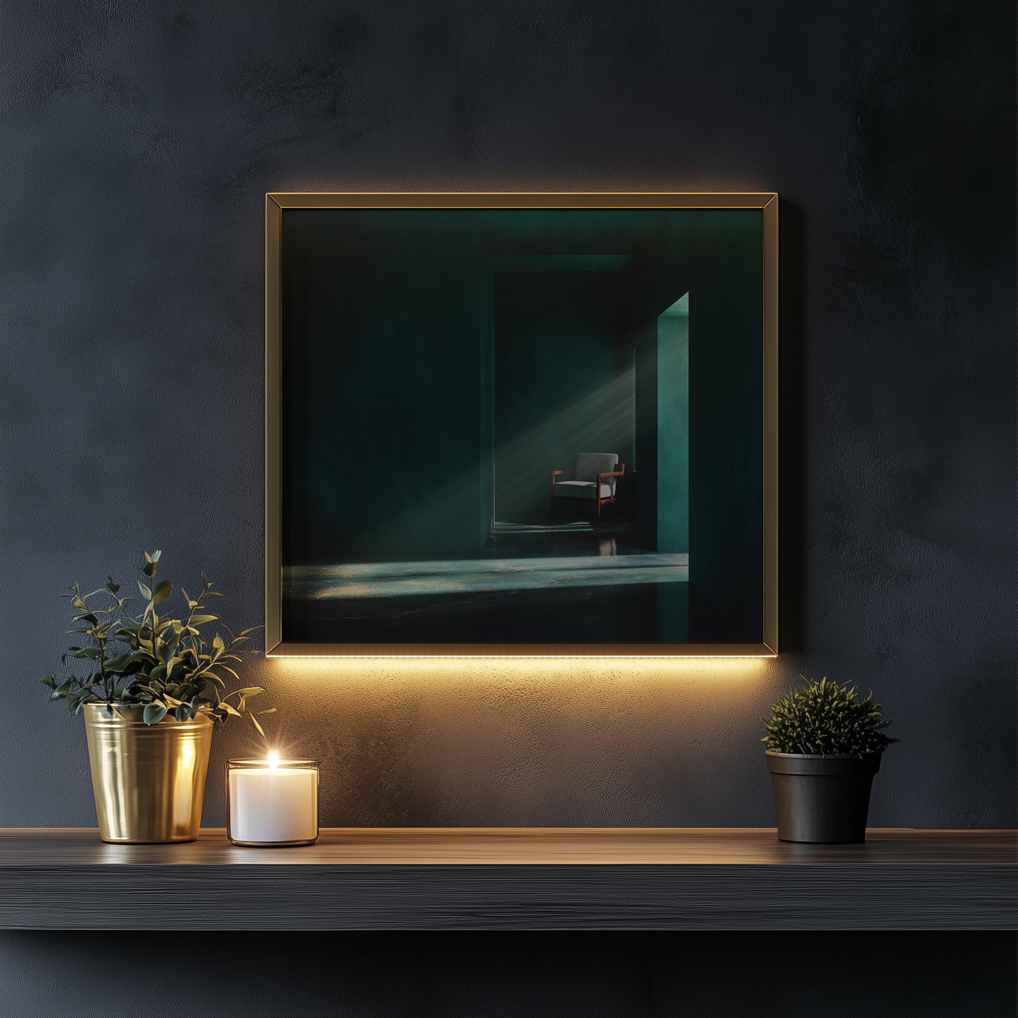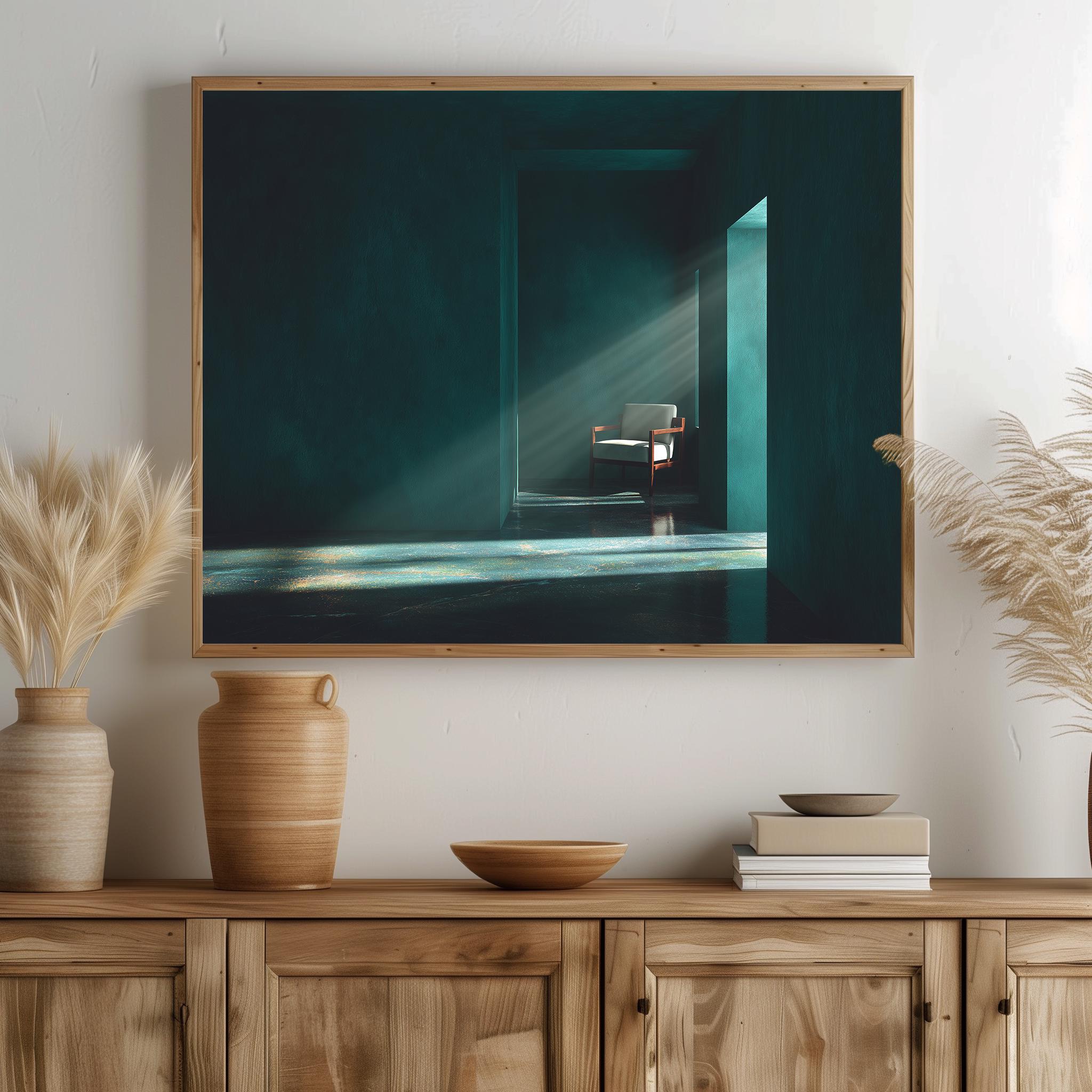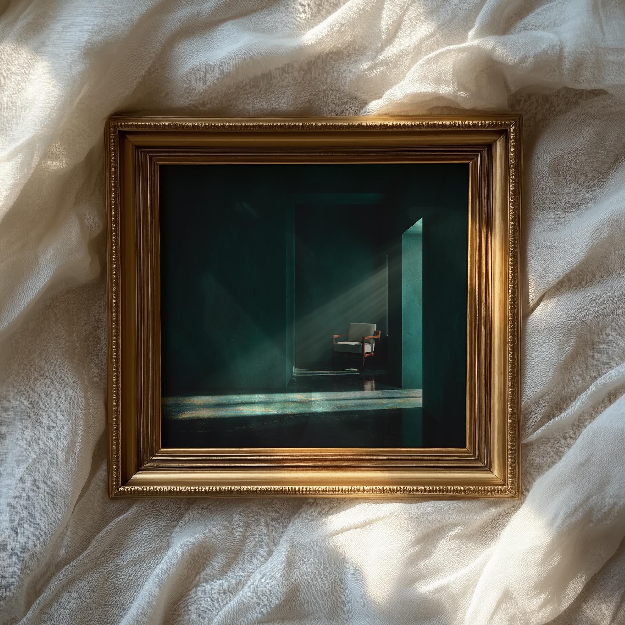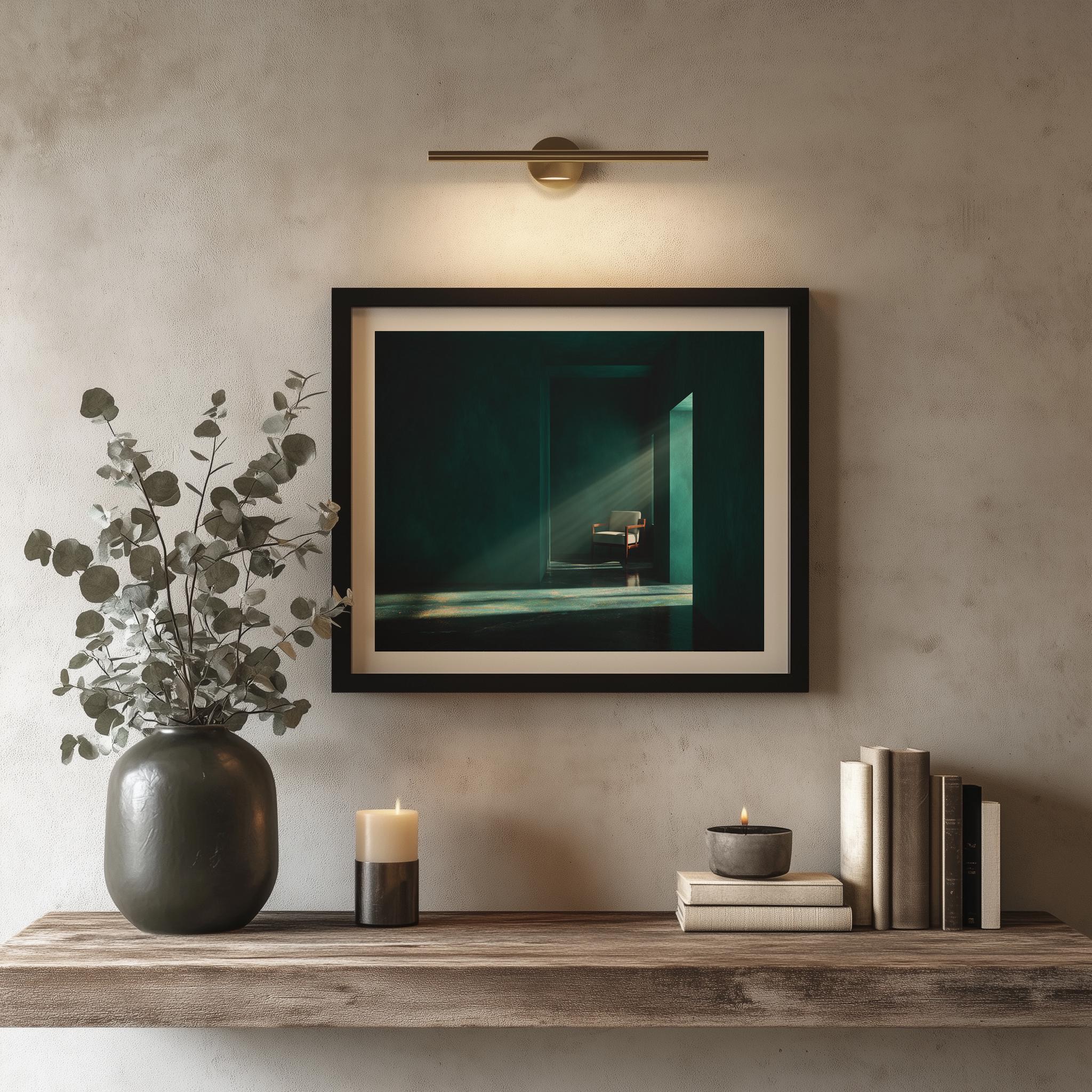 Emerald Green Interior Print - Minimalist Room, Moody Home Decor (Digital Download)