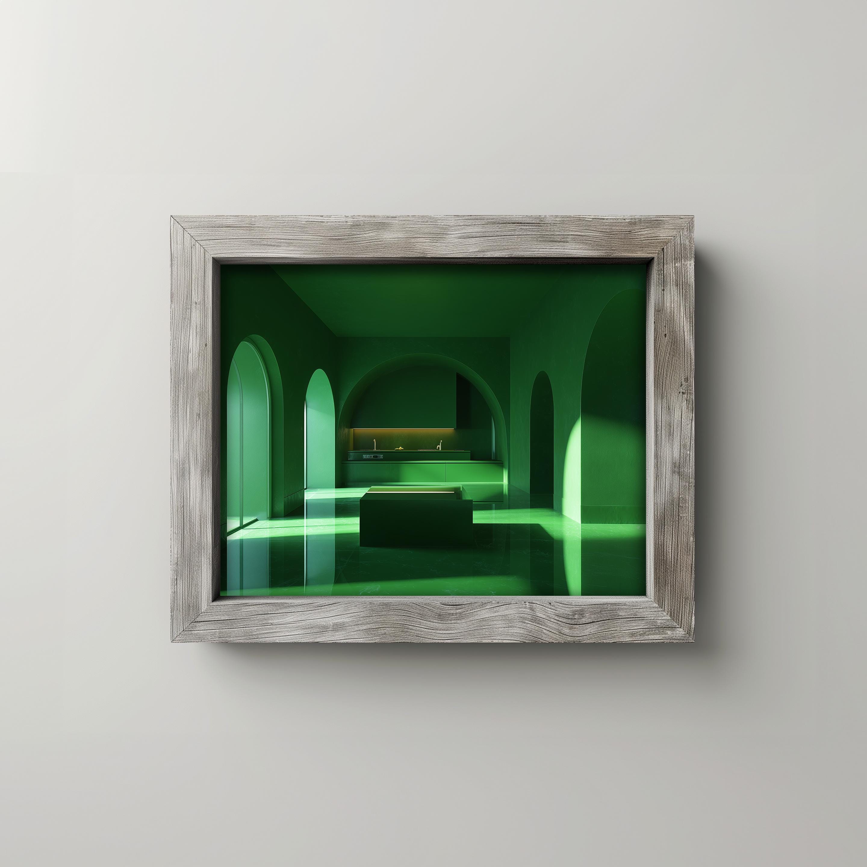 Green Abstract Wall Art - Moody Monochromatic Interior (Digital Download)