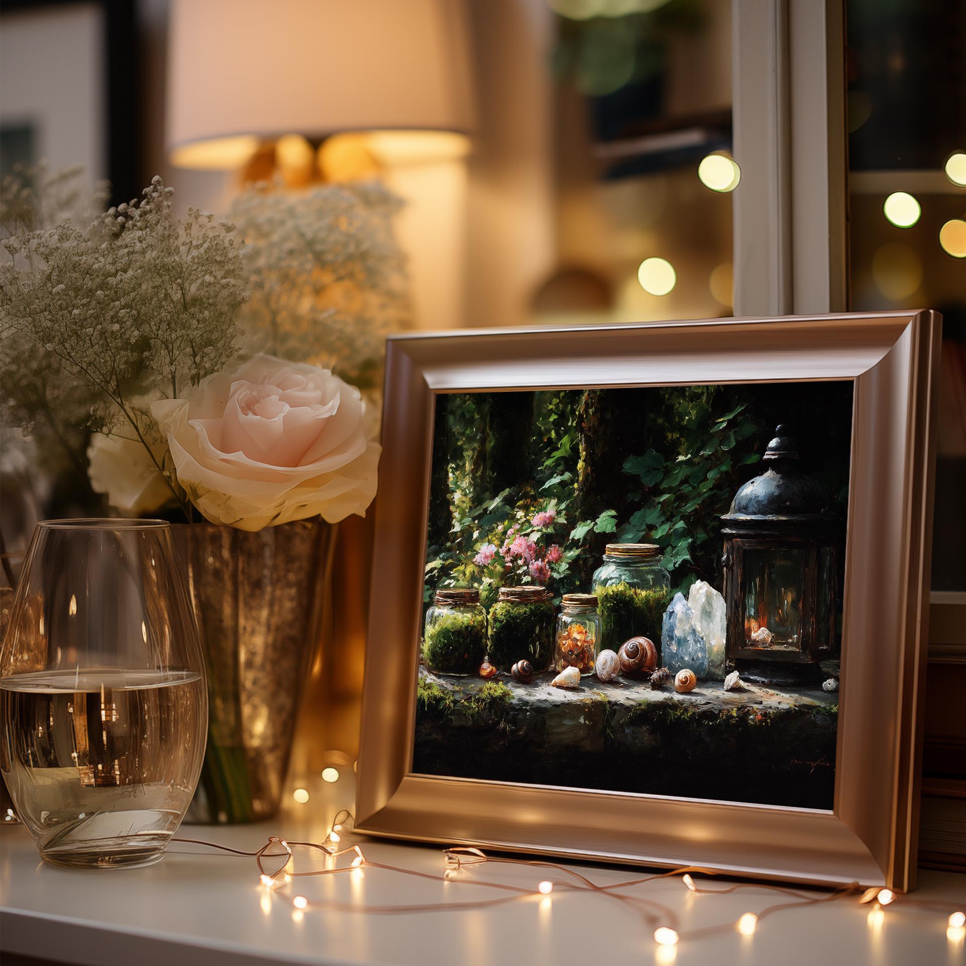 Rustic Autumn Still Life Printable - Magical Cottage Decor with Lantern Immerse yourself in the warmth of fall with this enchanting still life printable. Featuring a charming lantern and earthy botanical elements, this vintage-inspired wall art captures the cozy essence of autumn. Perfect for your cottagecore aesthetic, it brings a touch of nature's beauty indoors, transforming your space into a serene retreat. Autumn