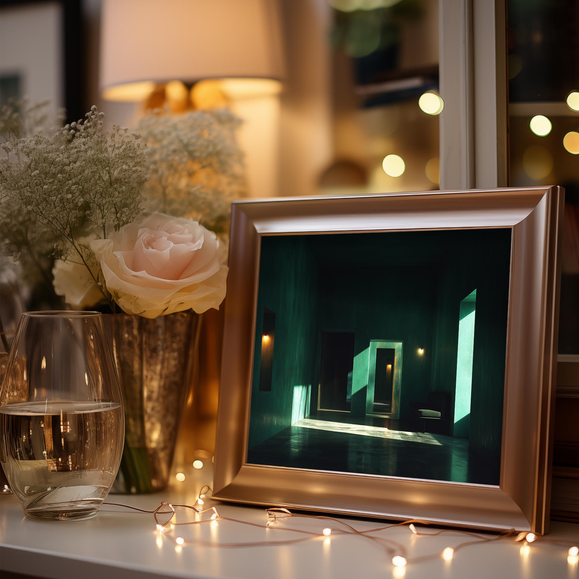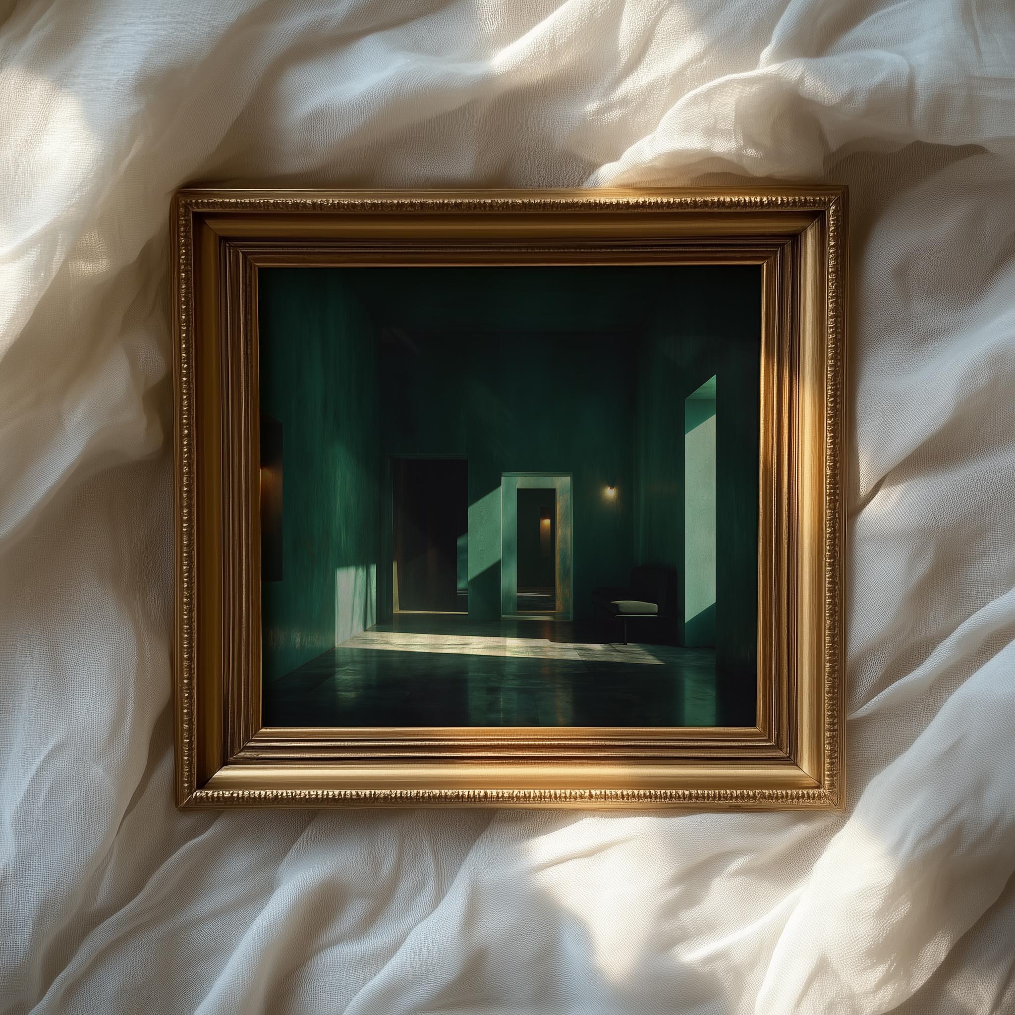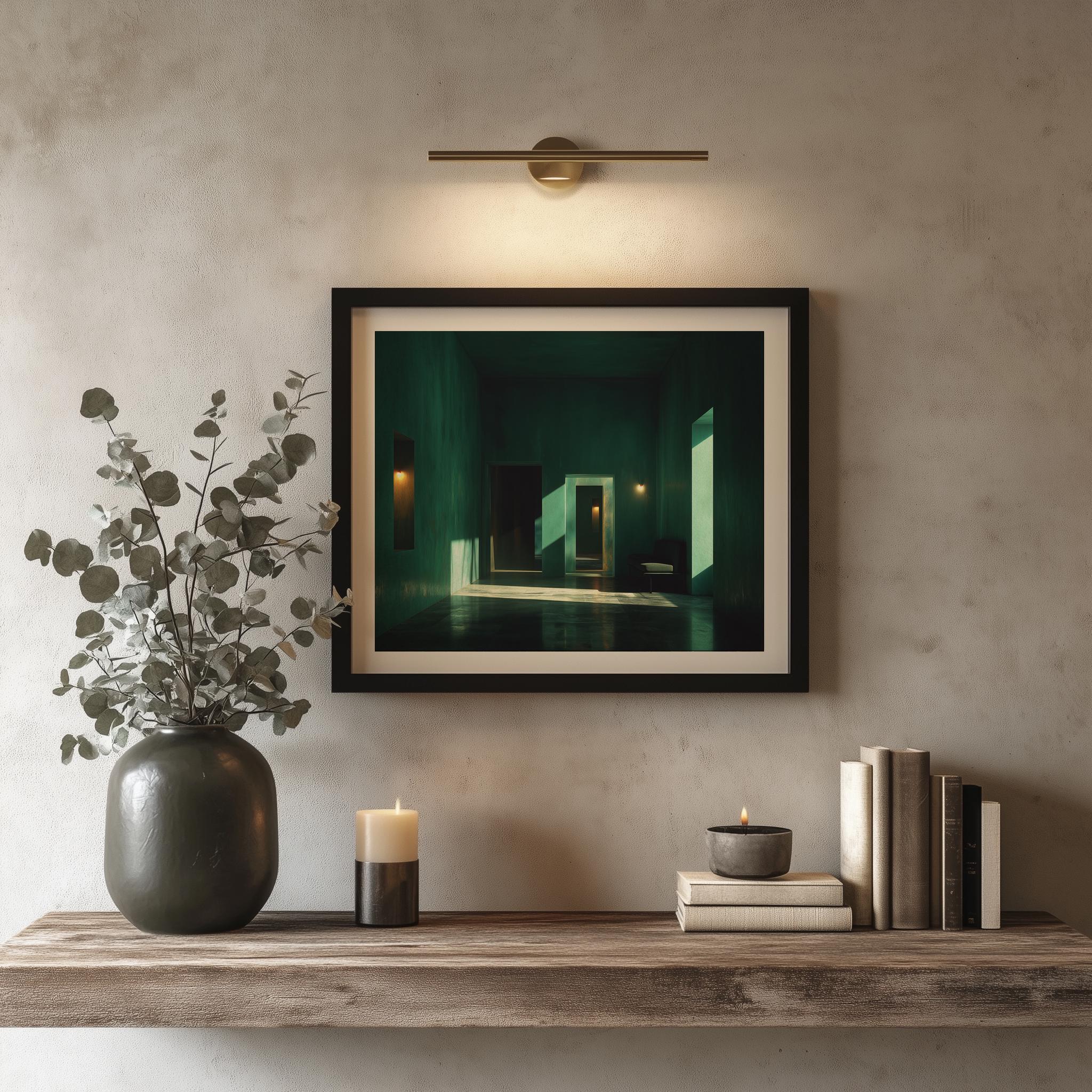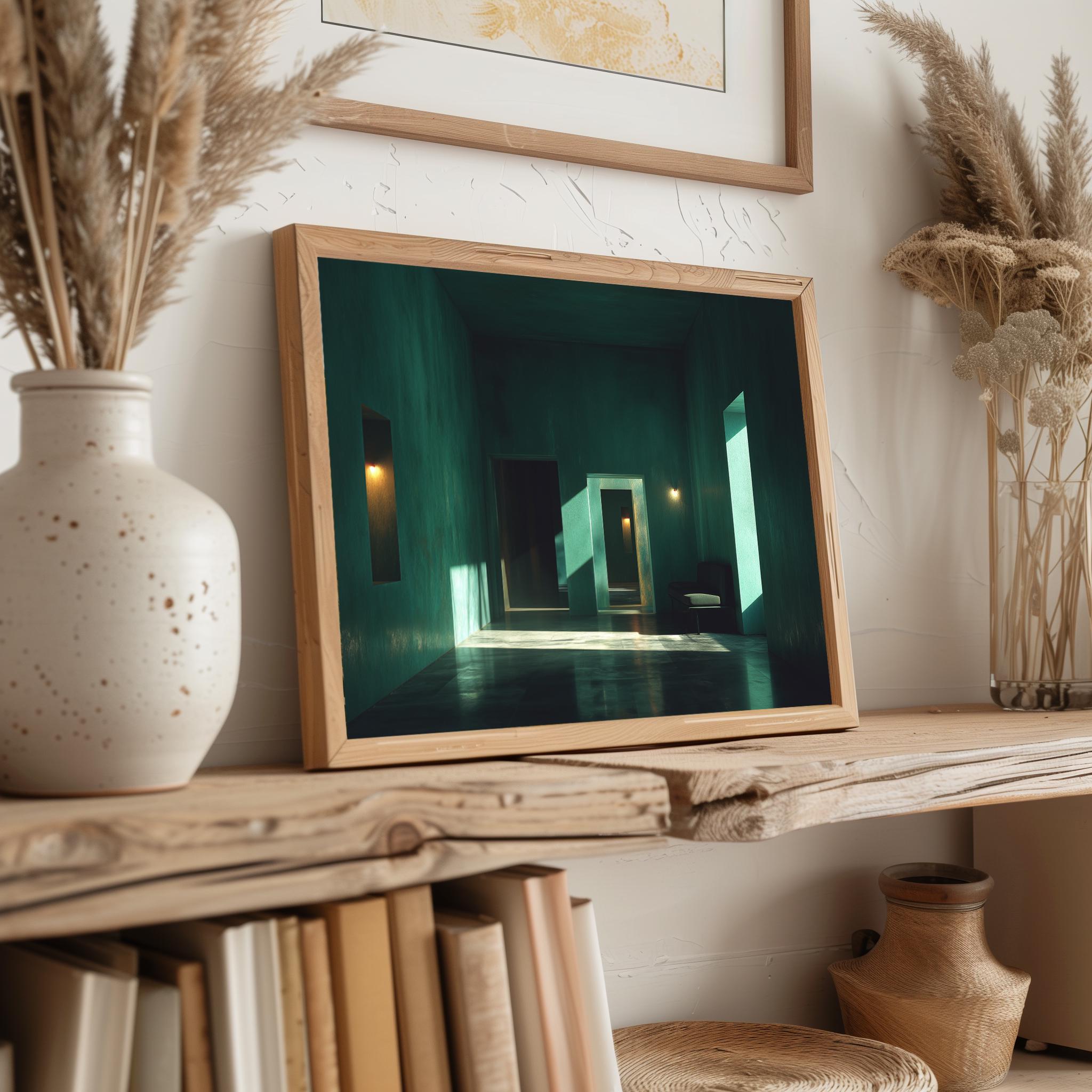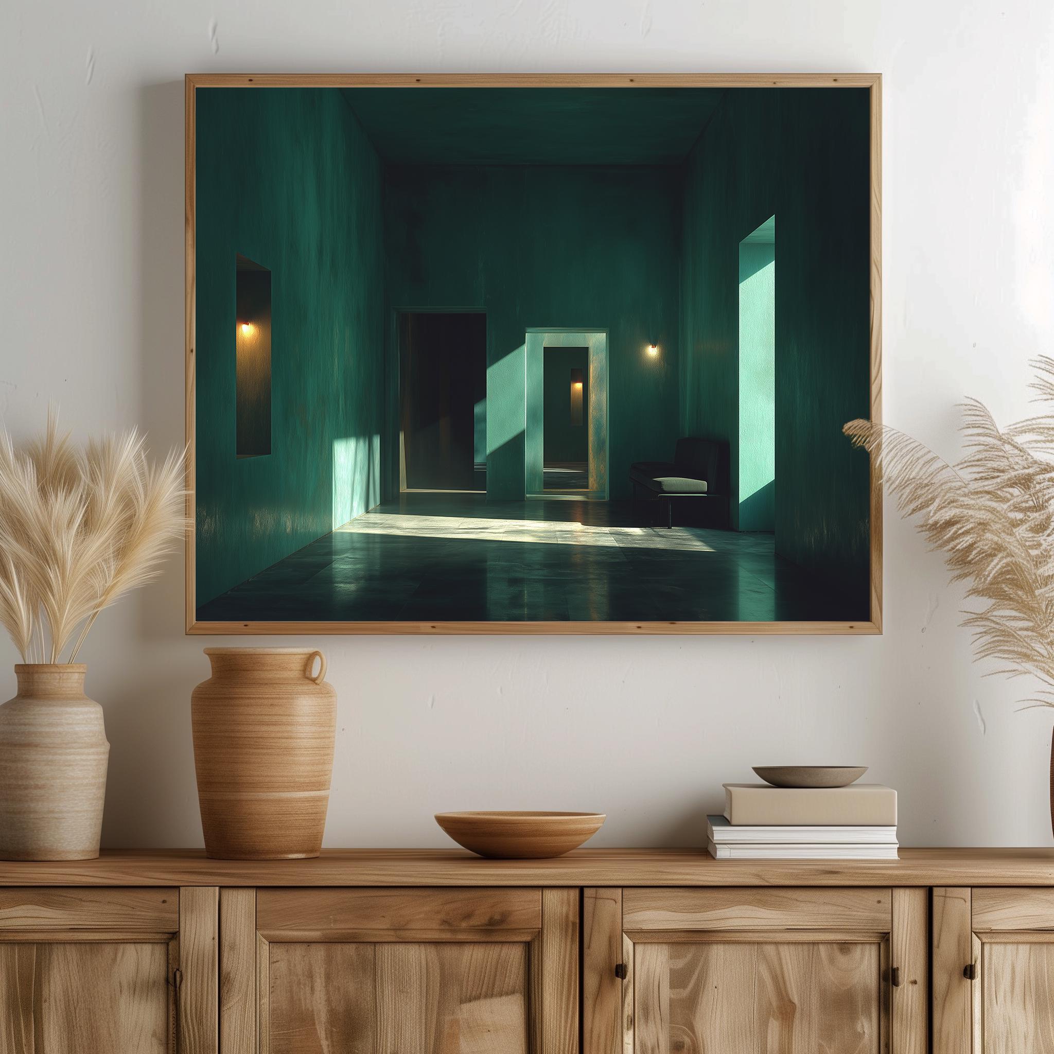Minimalist Emerald Room Study - Deep Green Serenity for Your Space Transform your living area with this stunning Minimalist Emerald Room Study. The artwork features rich emerald green hues that evoke tranquility and peace, perfect for creating a serene environment. Ideal for modern interiors, this rustic decor piece combines elegance with simplicity, making it a stunning focal point in any room. Available as a digital download, it's the perfect addition to your cottagecore aesthetic. This artwork is perfect for all seasons, bringing a refreshing touch to your home throughout the year.
