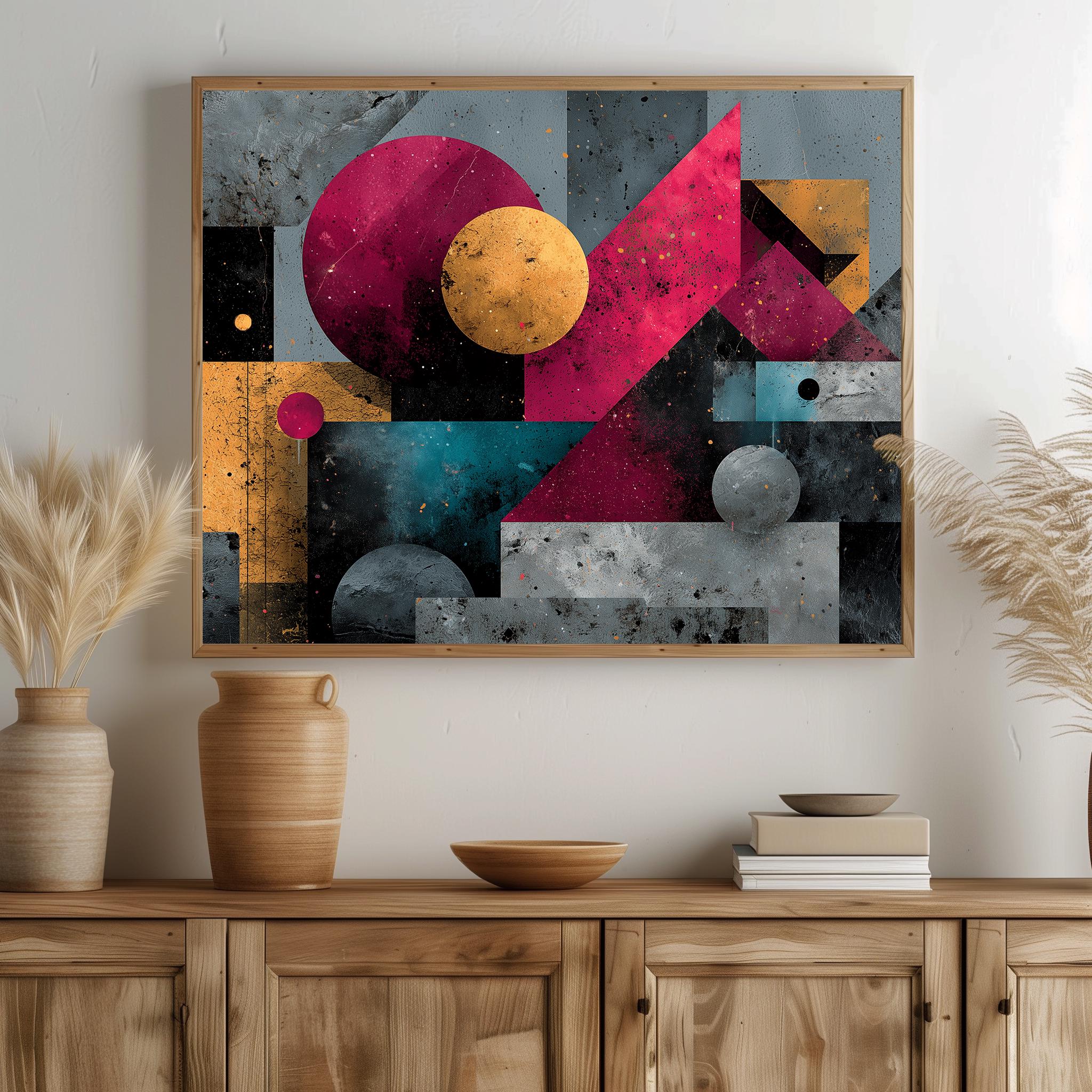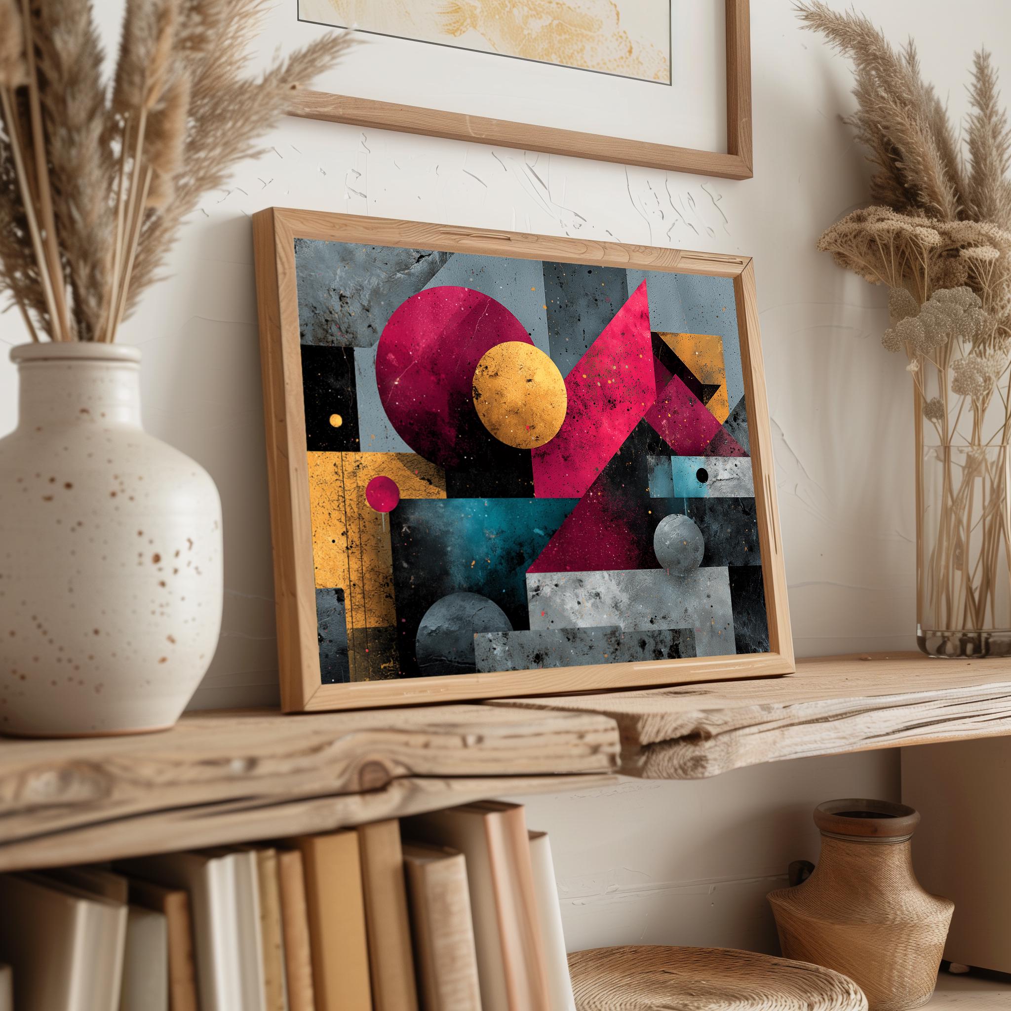Abstract Geometric Wall Art - Modern Colorful Shapes This stunning digital download features bold asymmetric designs and vibrant colors that breathe life into any space. Perfect for adding a contemporary touch to your home decor, this printable poster captures the essence of mid-century style with its unique abstract shapes. Ideal for art enthusiasts looking to enhance their walls with modern aesthetic appeal. Perfect for all seasons, this artwork brings a fresh and lively ambiance to your home year-round.