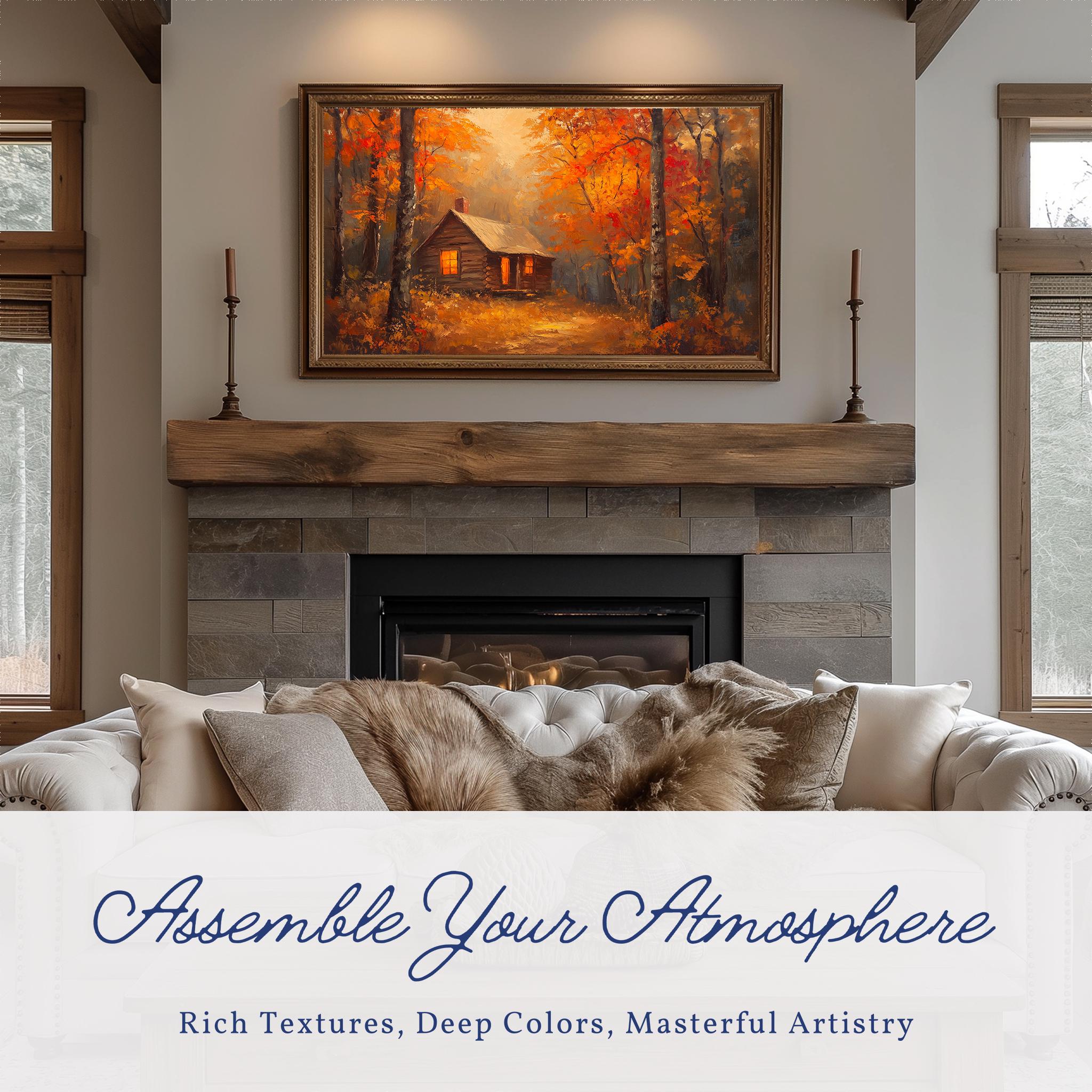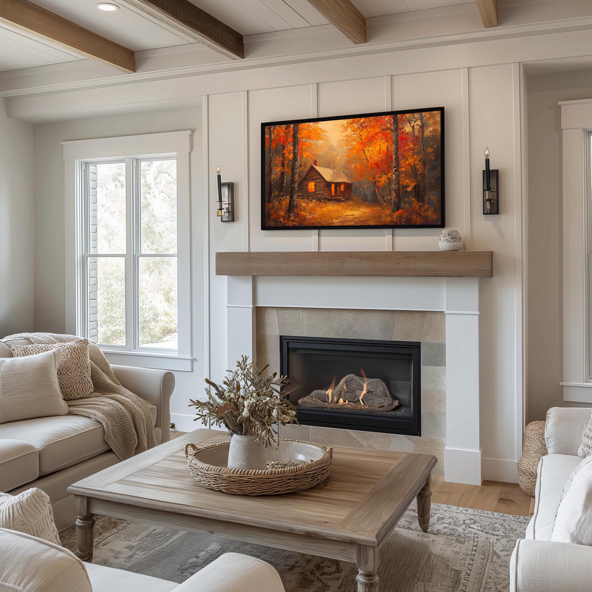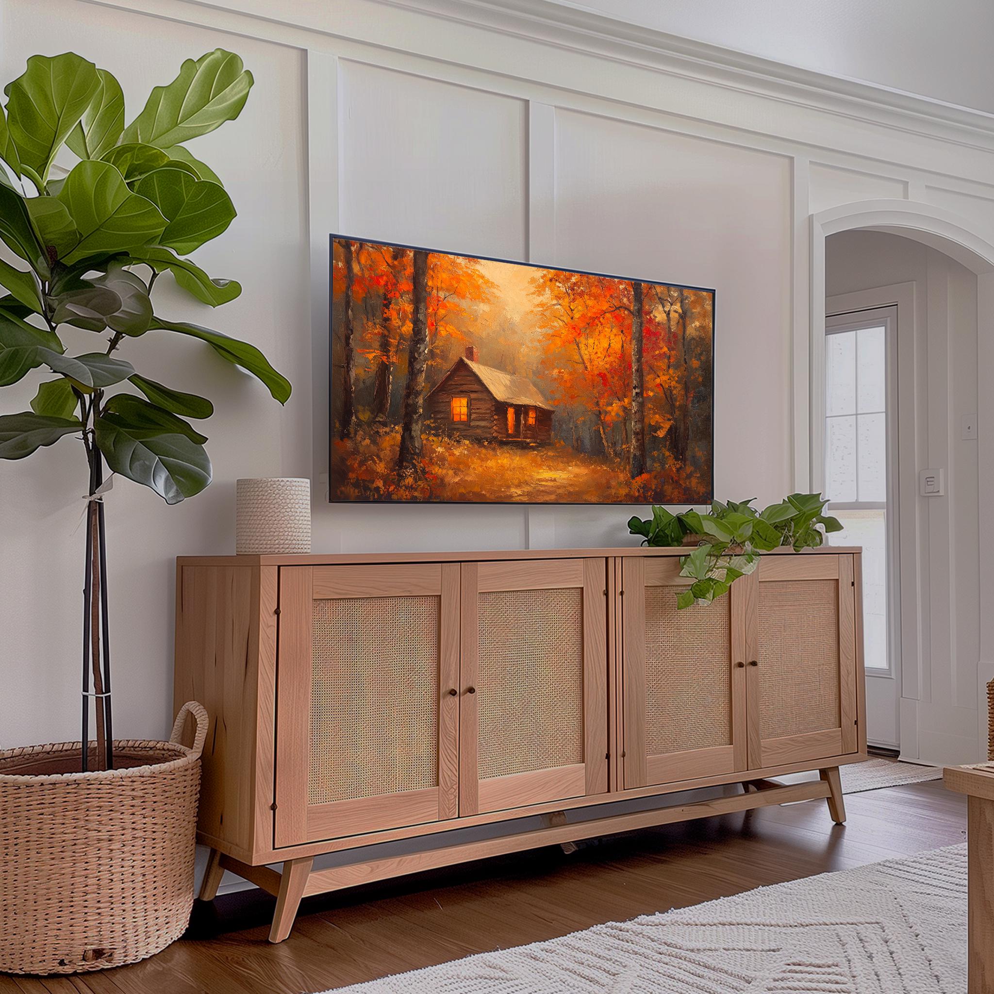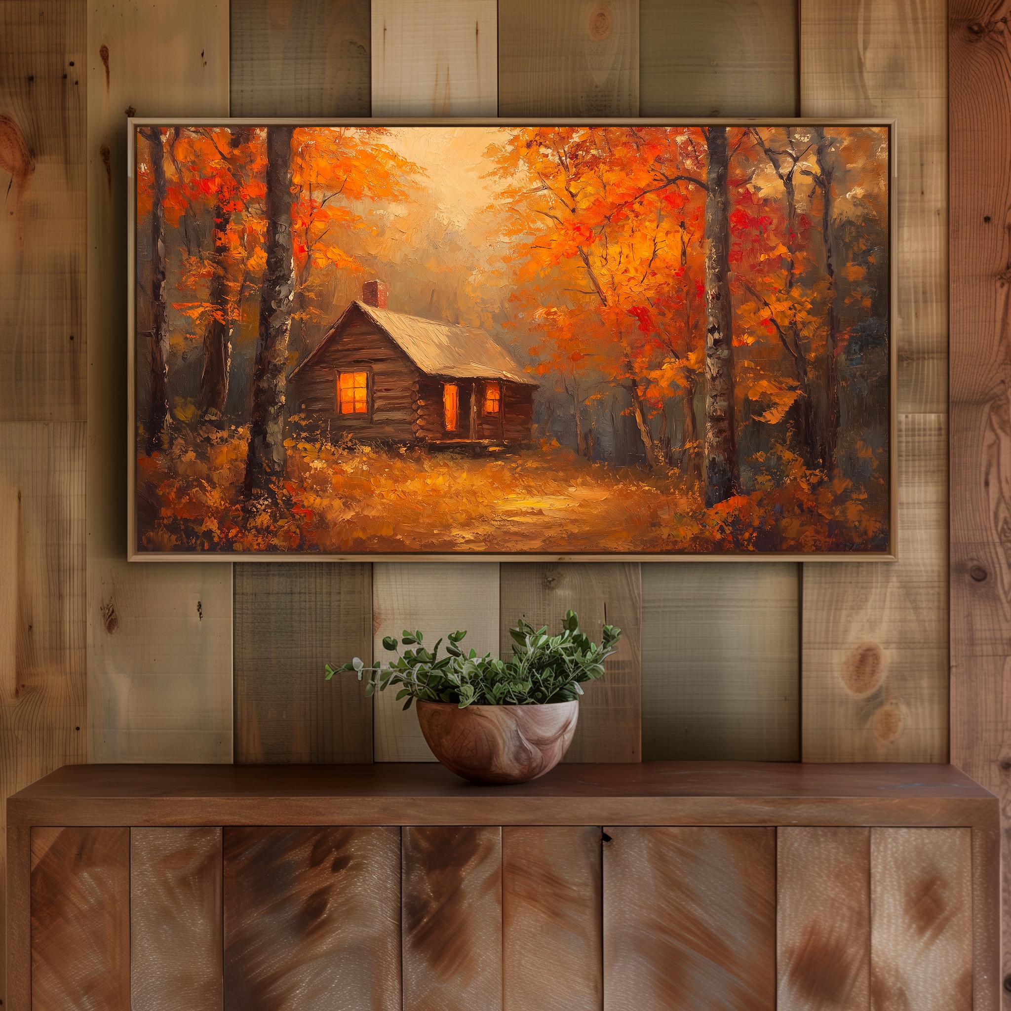 Autumn Cabin Frame TV Art, Rustic Woodland Landscape (Digital Download)