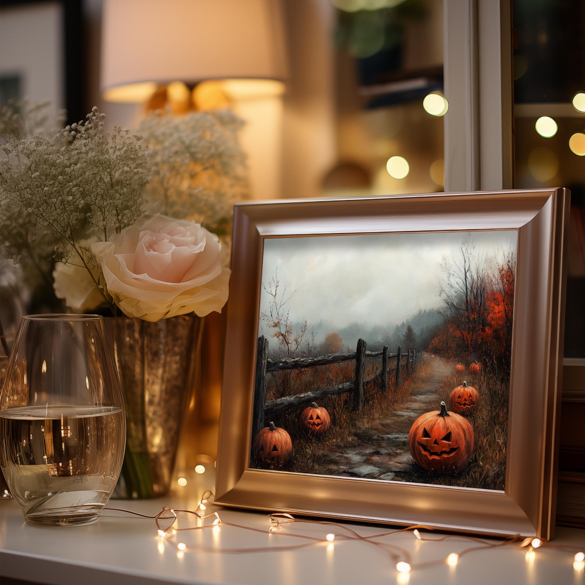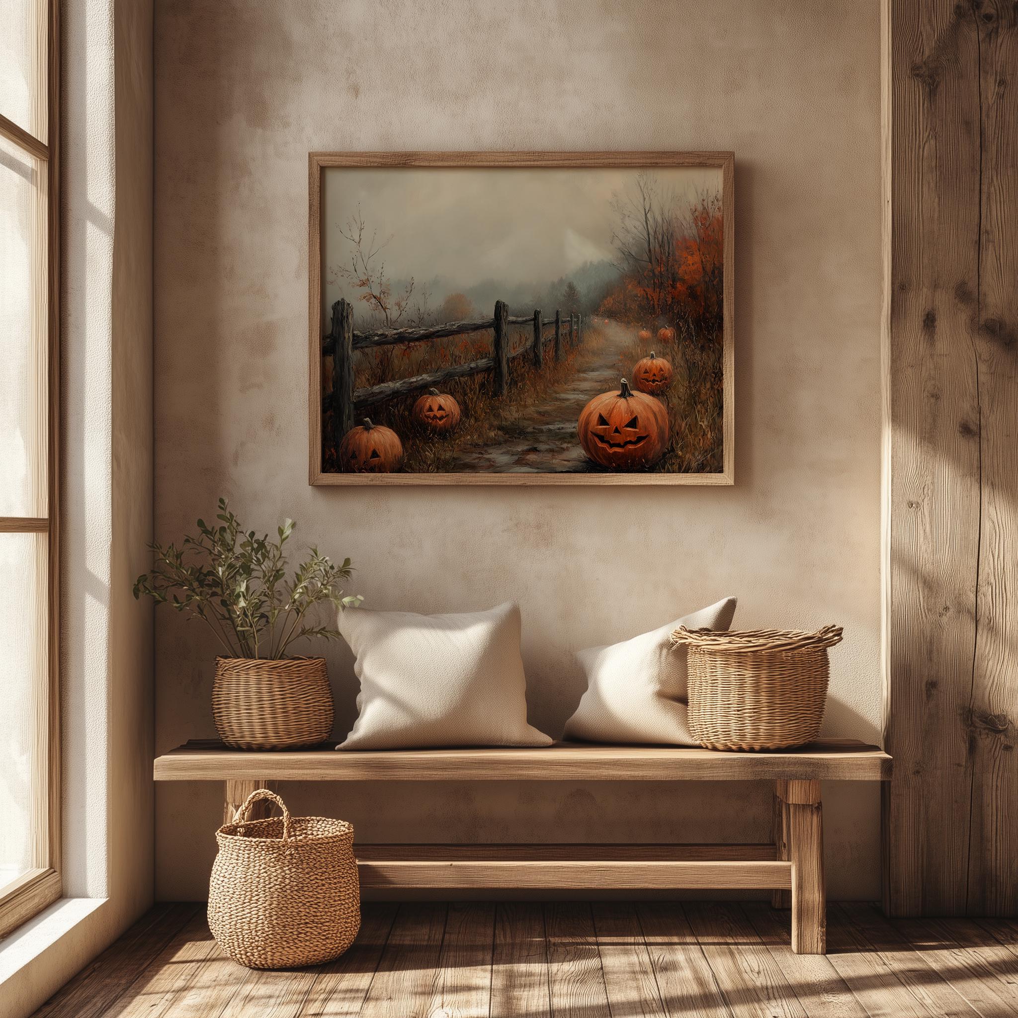 Misty Autumn Landscape Print: Rustic Cottagecore Wall Art (Digital Download