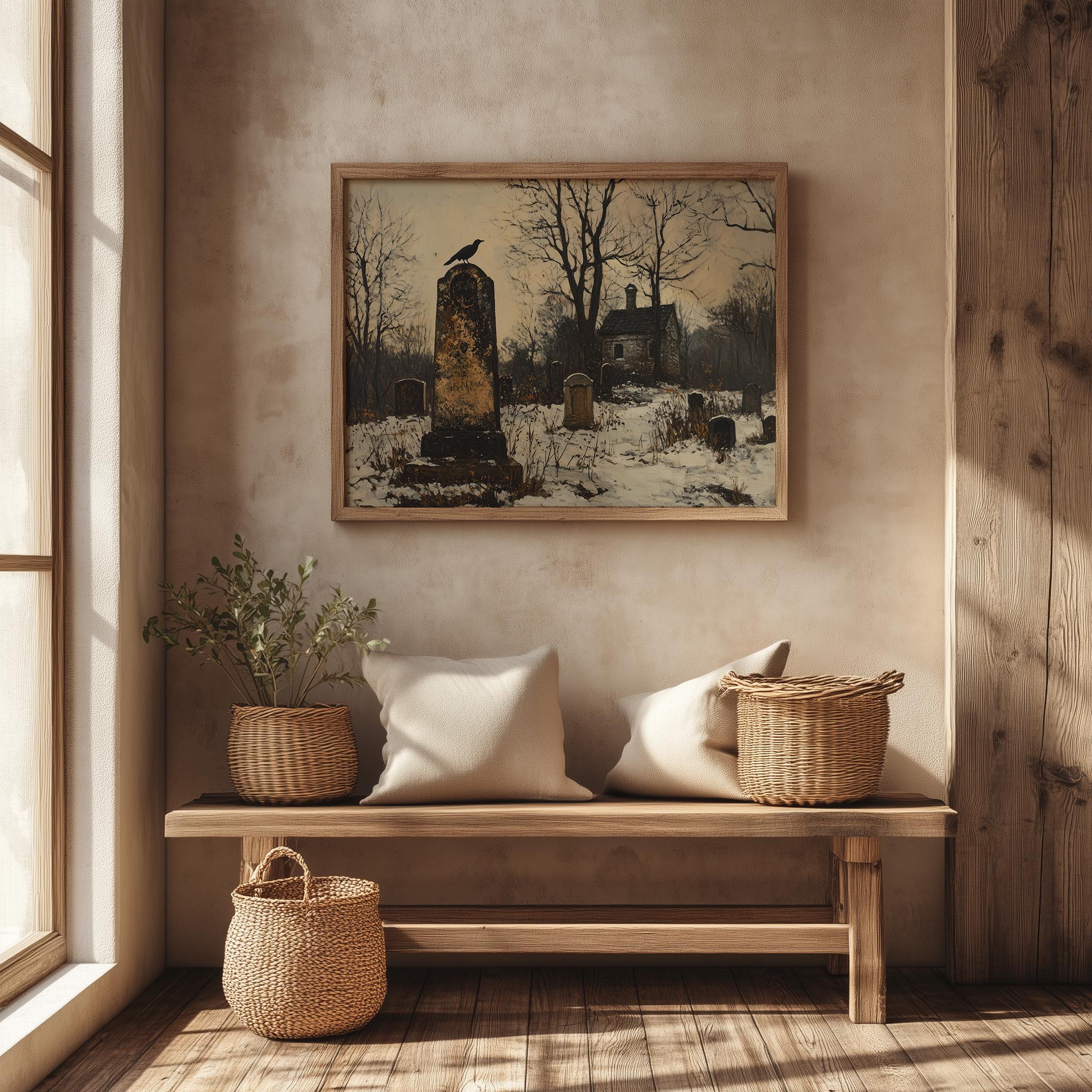 Rustic Winter Landscape Oil Painting: Snowy Countryside Cottagecore Print (Digital Download)