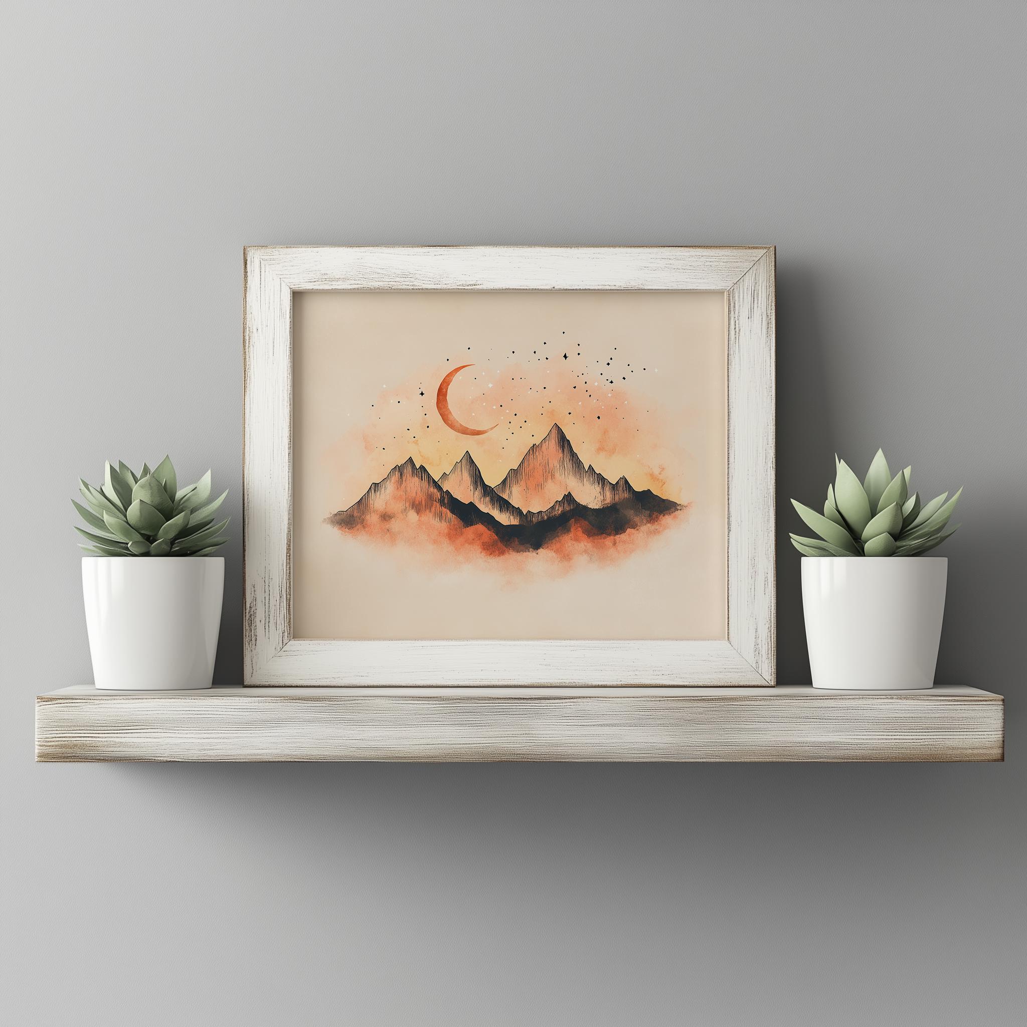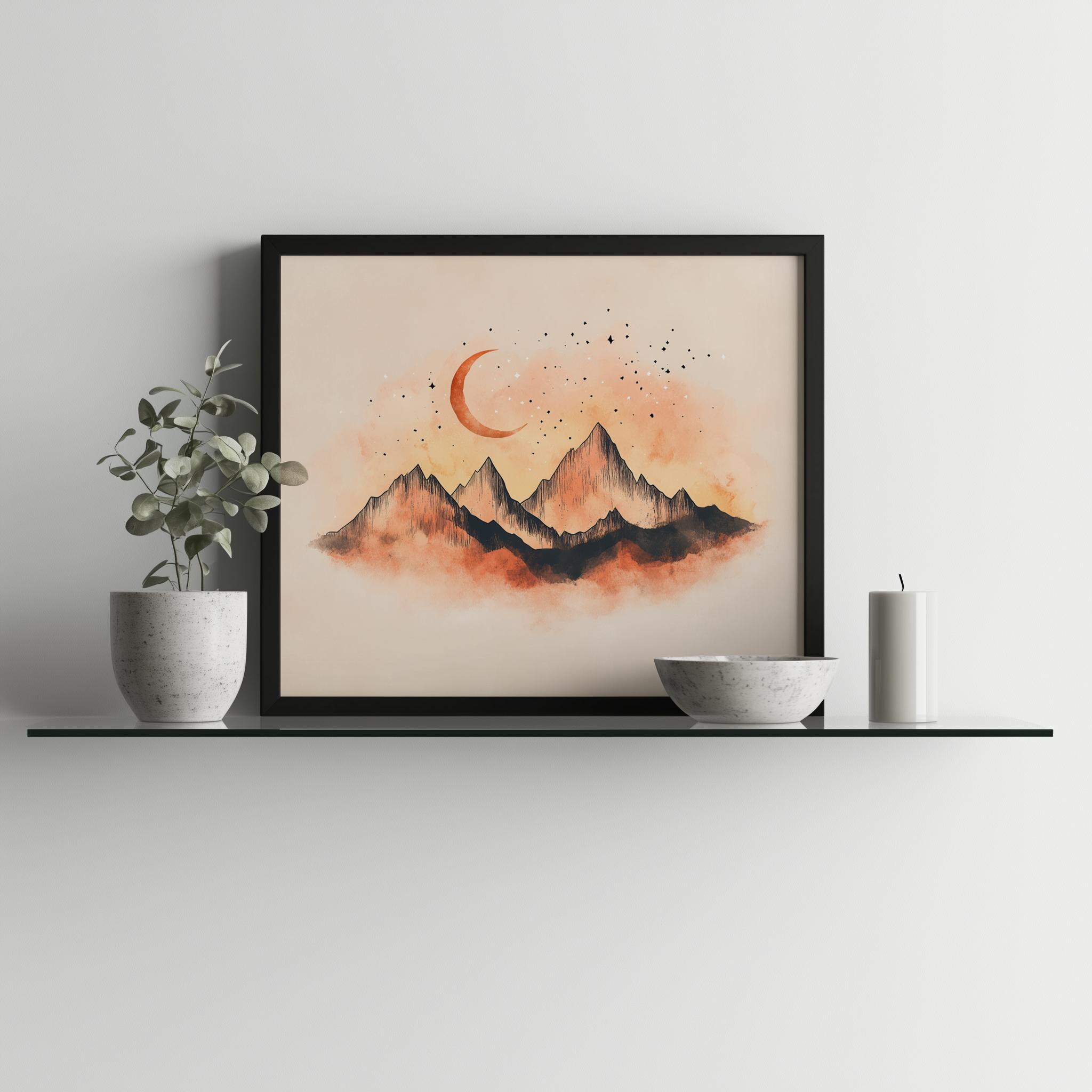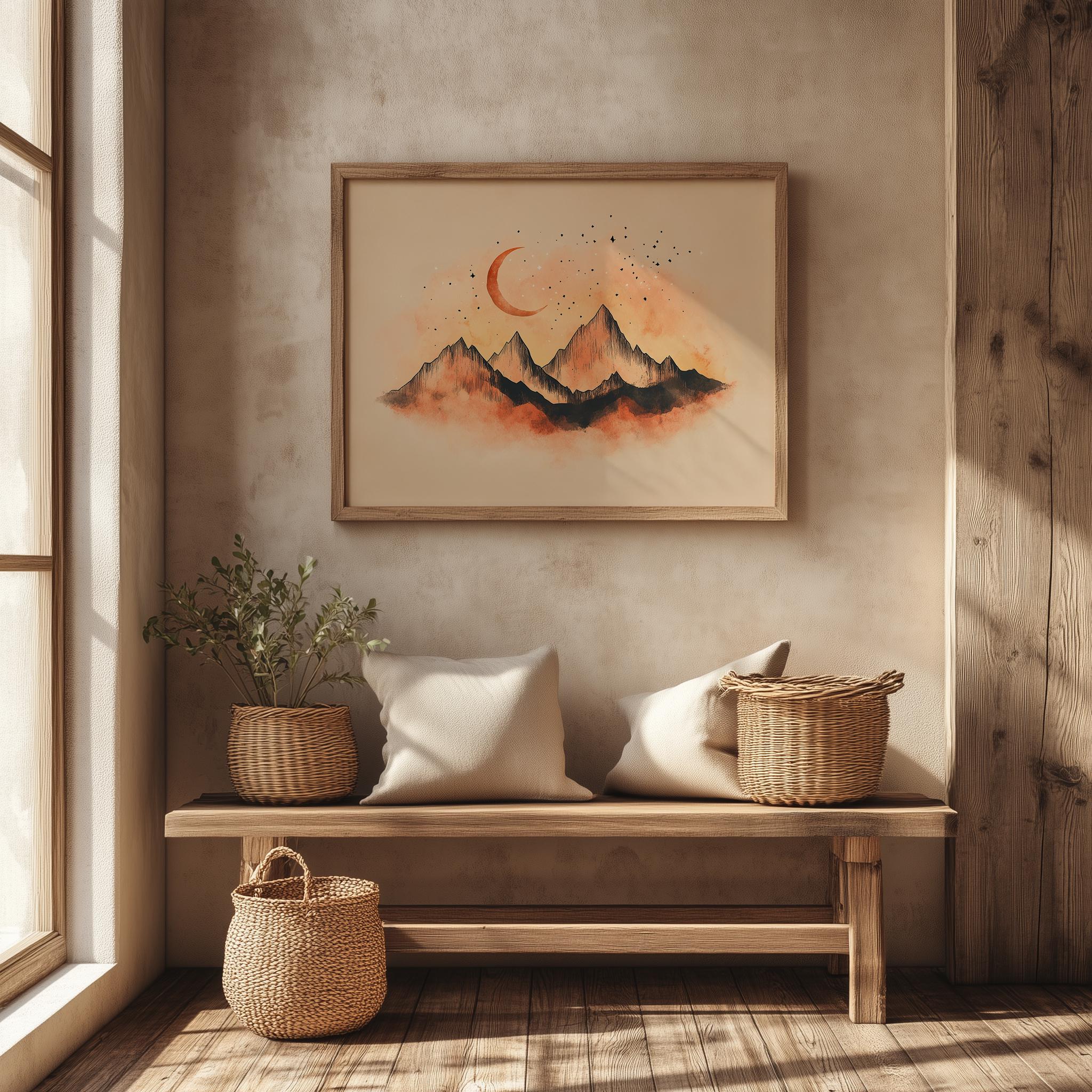 Minimalist Boho Printable Art - Elegant Mountain Range Sketch This stunning piece of modern wall decor captures the serene beauty of an elegant mountain range, rendered in earthy tones that evoke a sense of calm and tranquility. Perfect for any bohemian style home, this printable art will add a touch of sophistication and warmth to your space. Ideal for bedrooms, living rooms, or as a thoughtful gift for someone who appreciates minimalist design. Perfect for year-round decorating, this art piece complements every season's aesthetic.