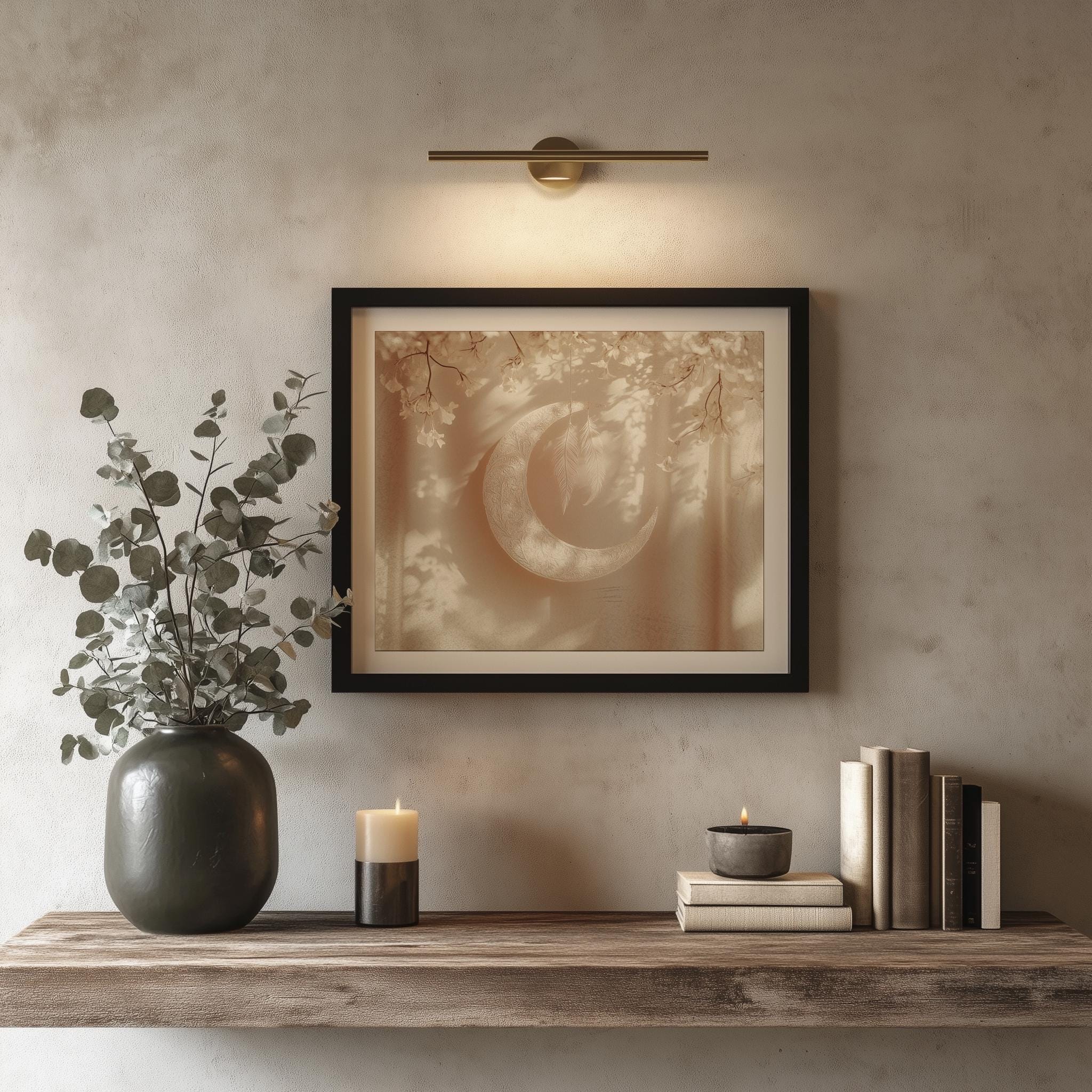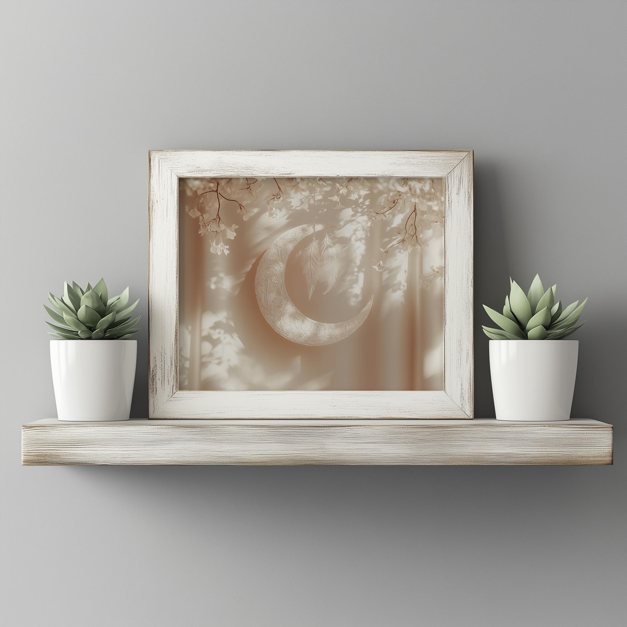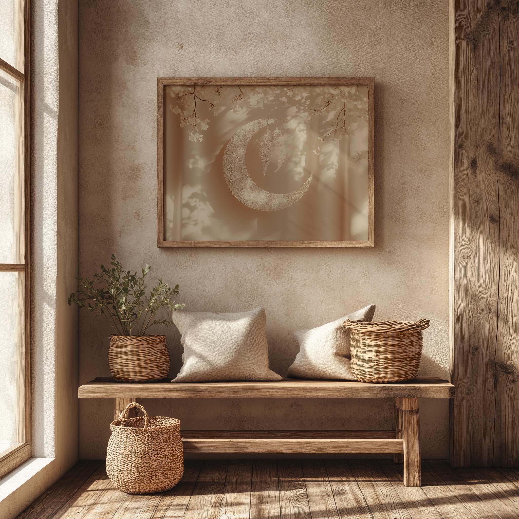 Minimalist Crescent Moon Printable Art - A Serene Addition to Your Space This beautifully crafted minimalist crescent moon printable art piece captures the essence of boho aesthetics and earthy tones, making it a perfect fit for rustic bedrooms or cottagecore-inspired decor. The delicate sketch of the moon adds a touch of celestial charm, transforming any wall into a serene focal point. Ideal for those who appreciate modern boho styles, this digital download allows for easy printing and instant gratification. Perfect for year-round decor, bringing warmth and tranquility to your home.