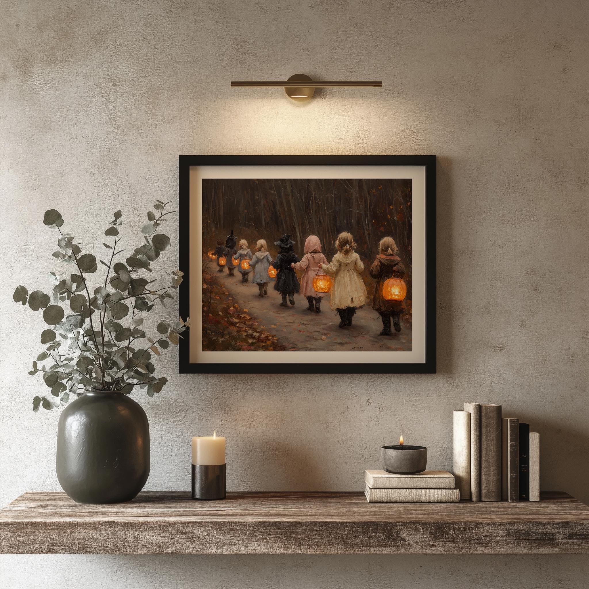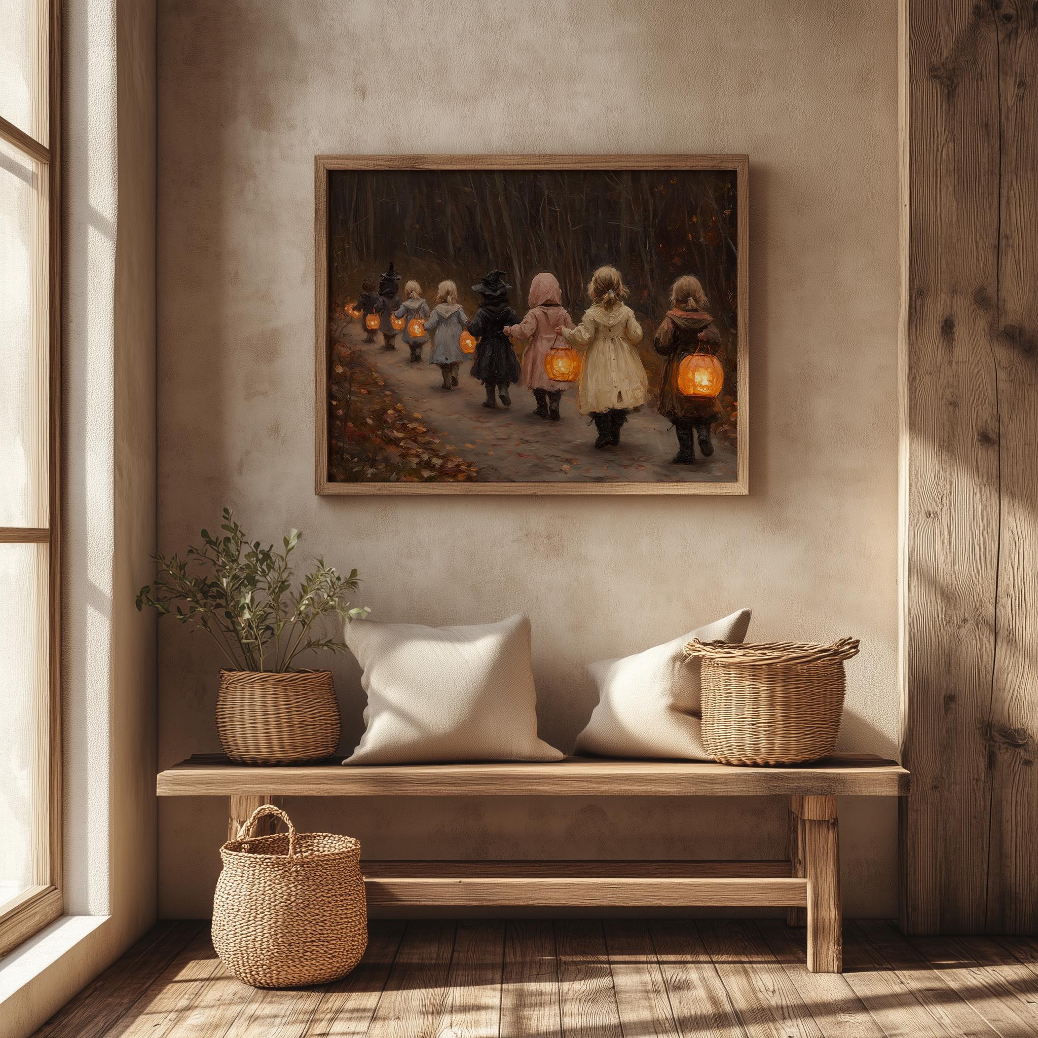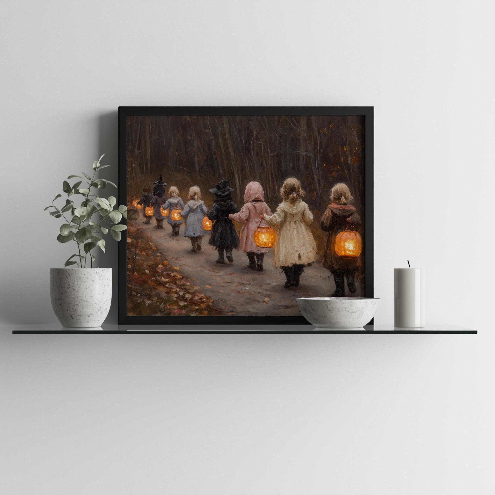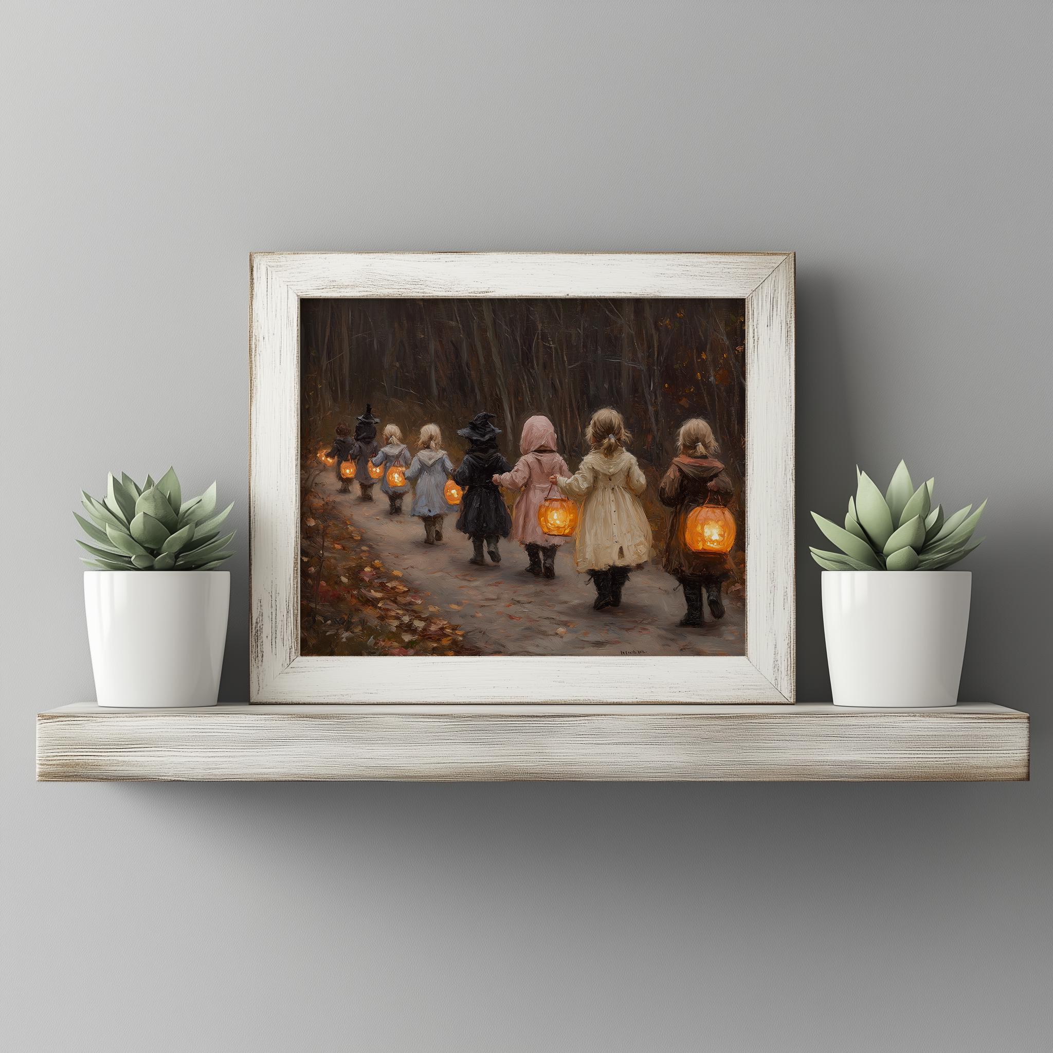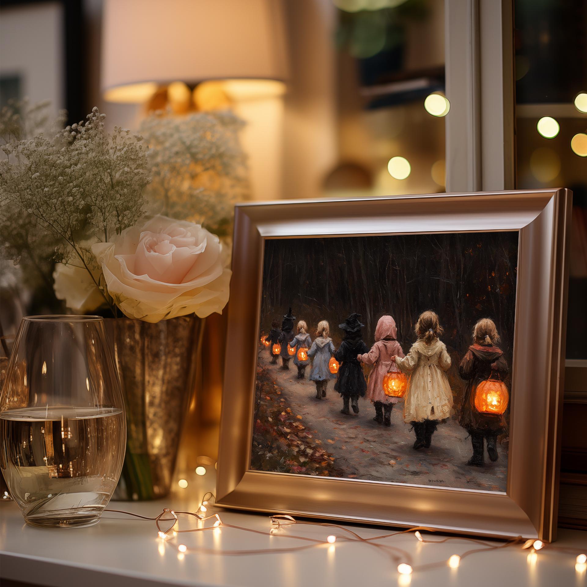 Children in Vintage Costumes Oil Painting - Printable Wall Art for Nostalgic Spaces This enchanting oil painting captures the innocence and joy of childhood, featuring children dressed in charming vintage costumes. Perfect for adding a rustic touch to your home, this printable wall art brings a nostalgic scene to life, making it an ideal choice for winter decor or a cozy kids' room. The artwork's delicate details invite warmth and wonder, creating a delightful ambiance in any space. Winter Wonderland
