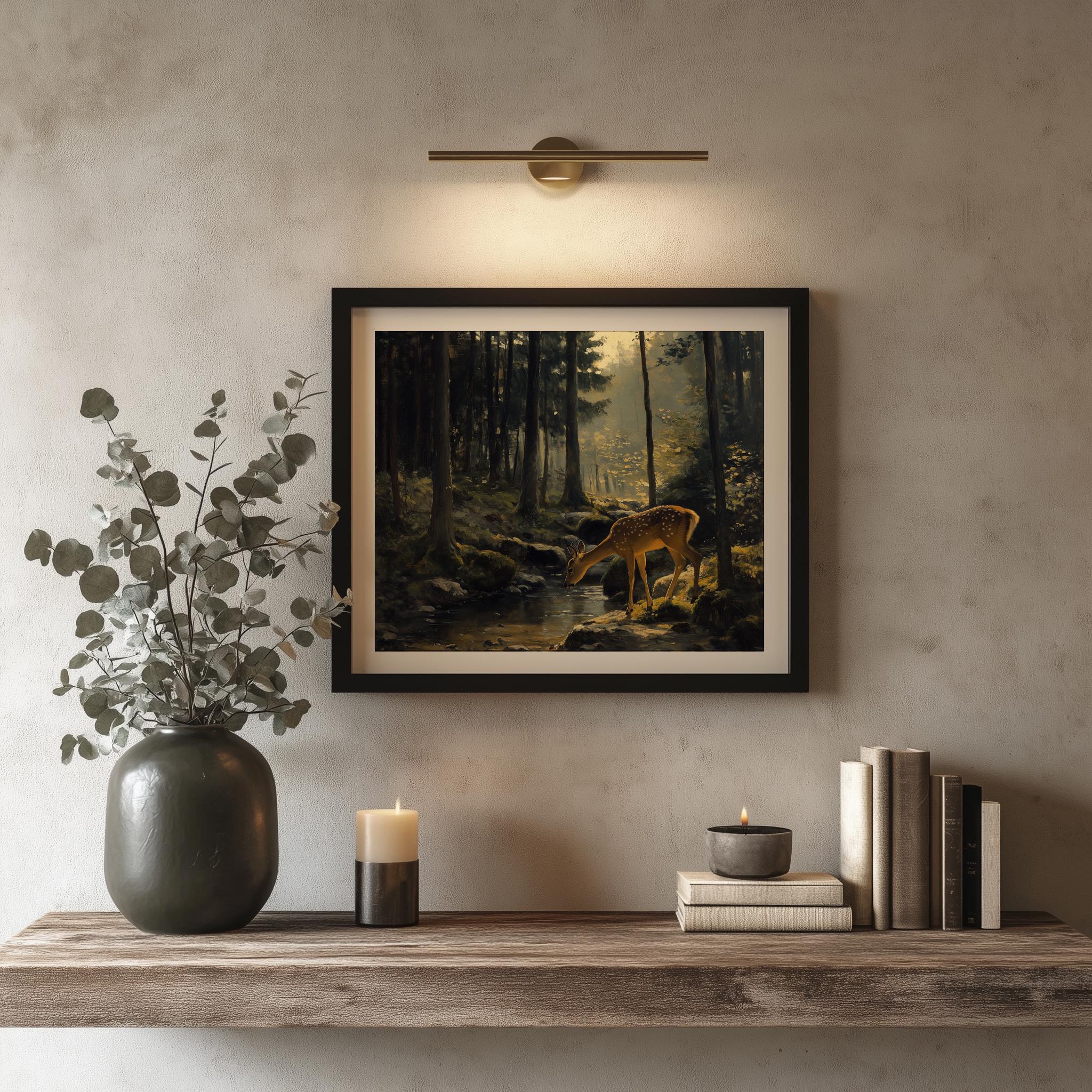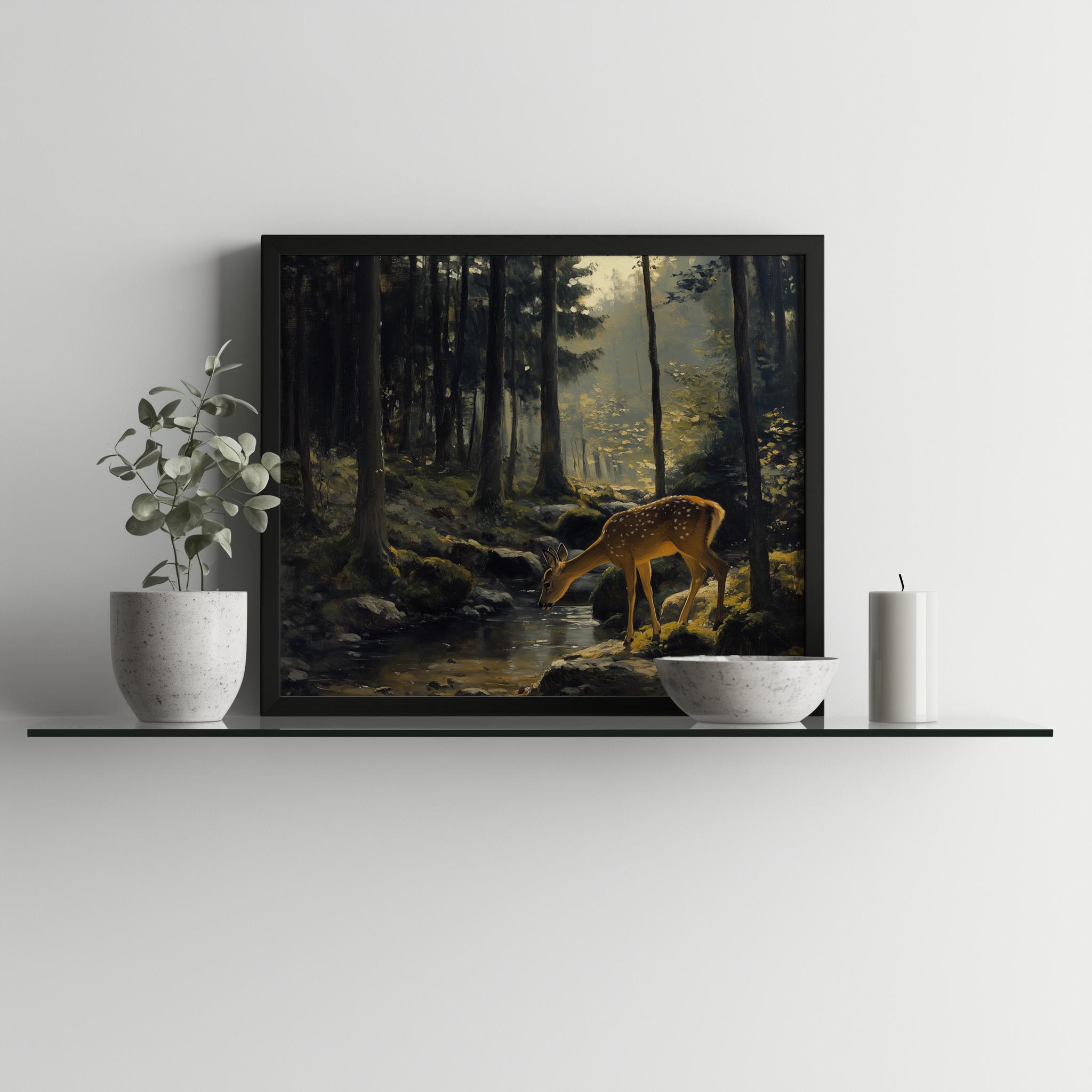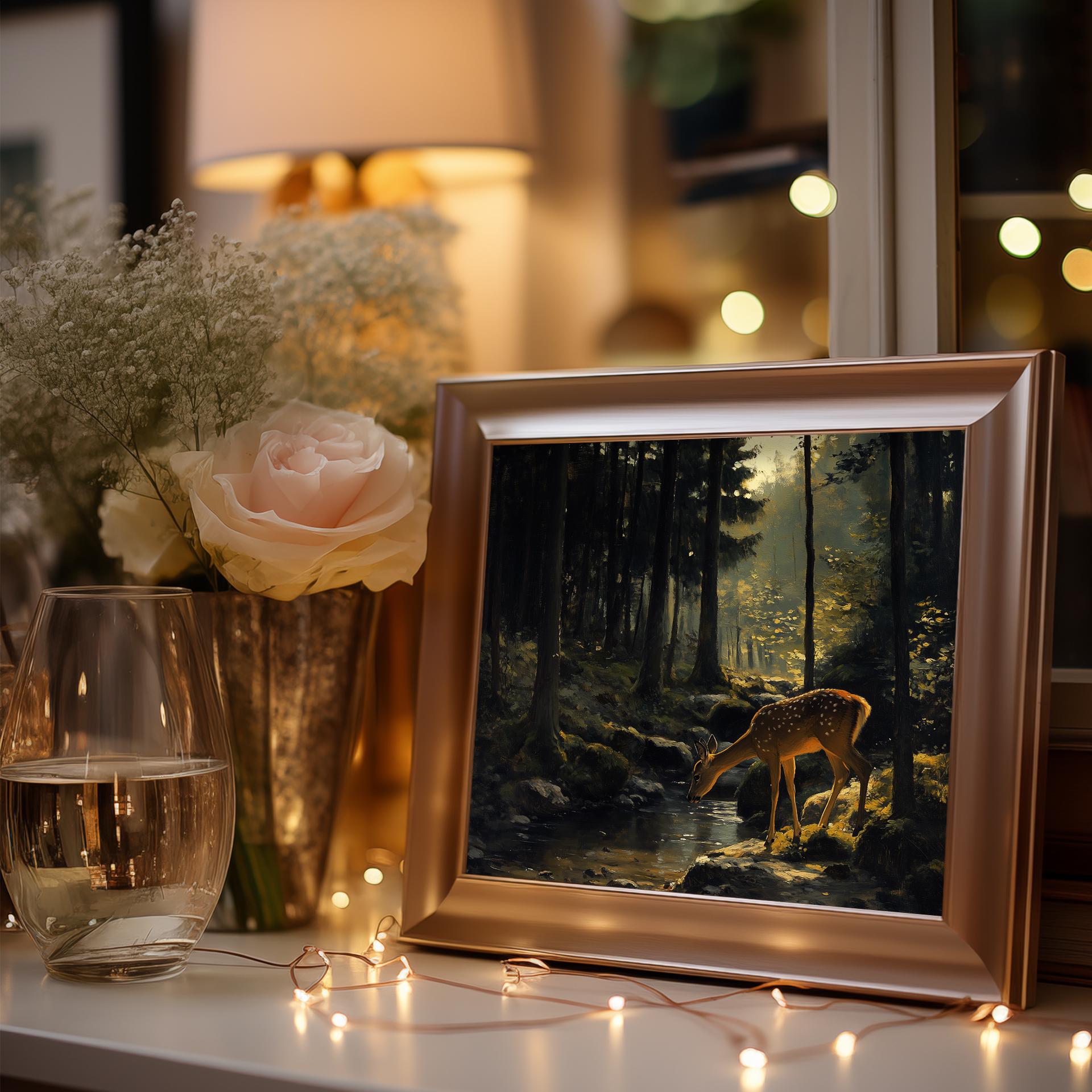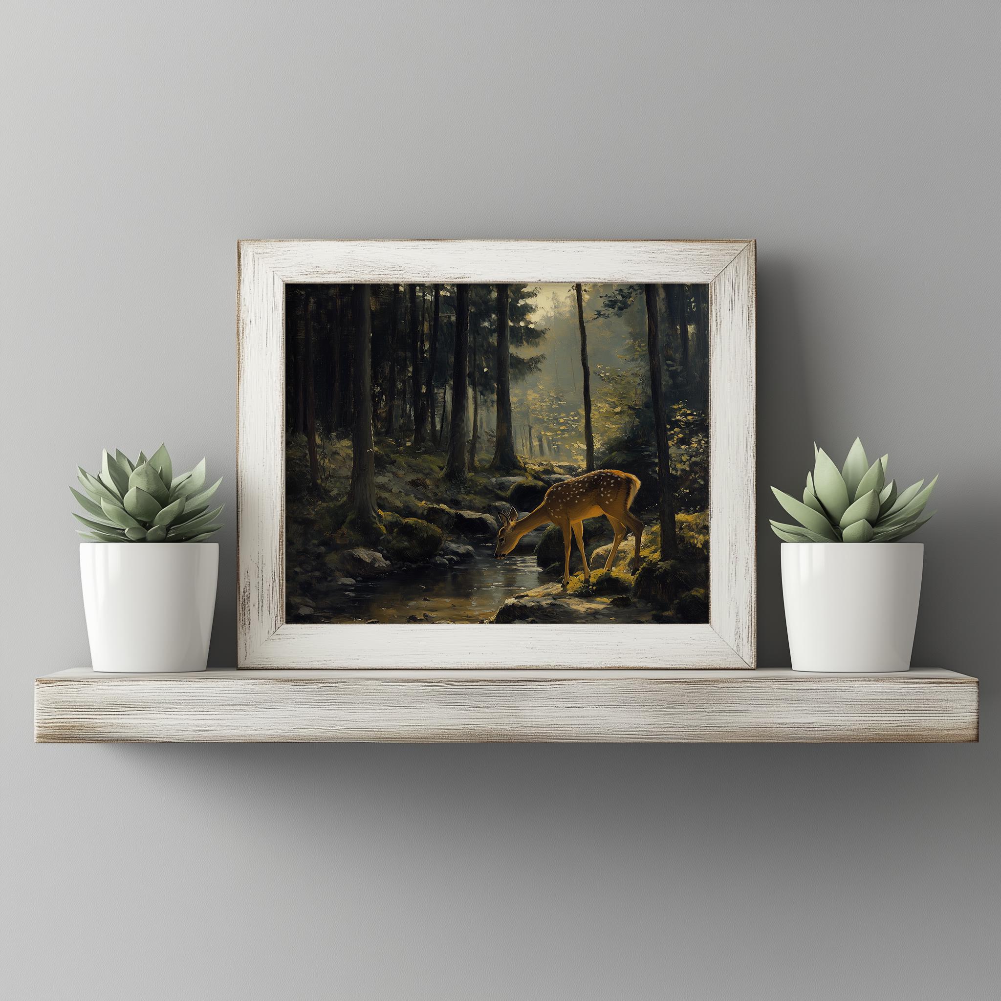 Rustic Forest Oil Painting: Mossy Woodland Cottagecore Art (Digital Download