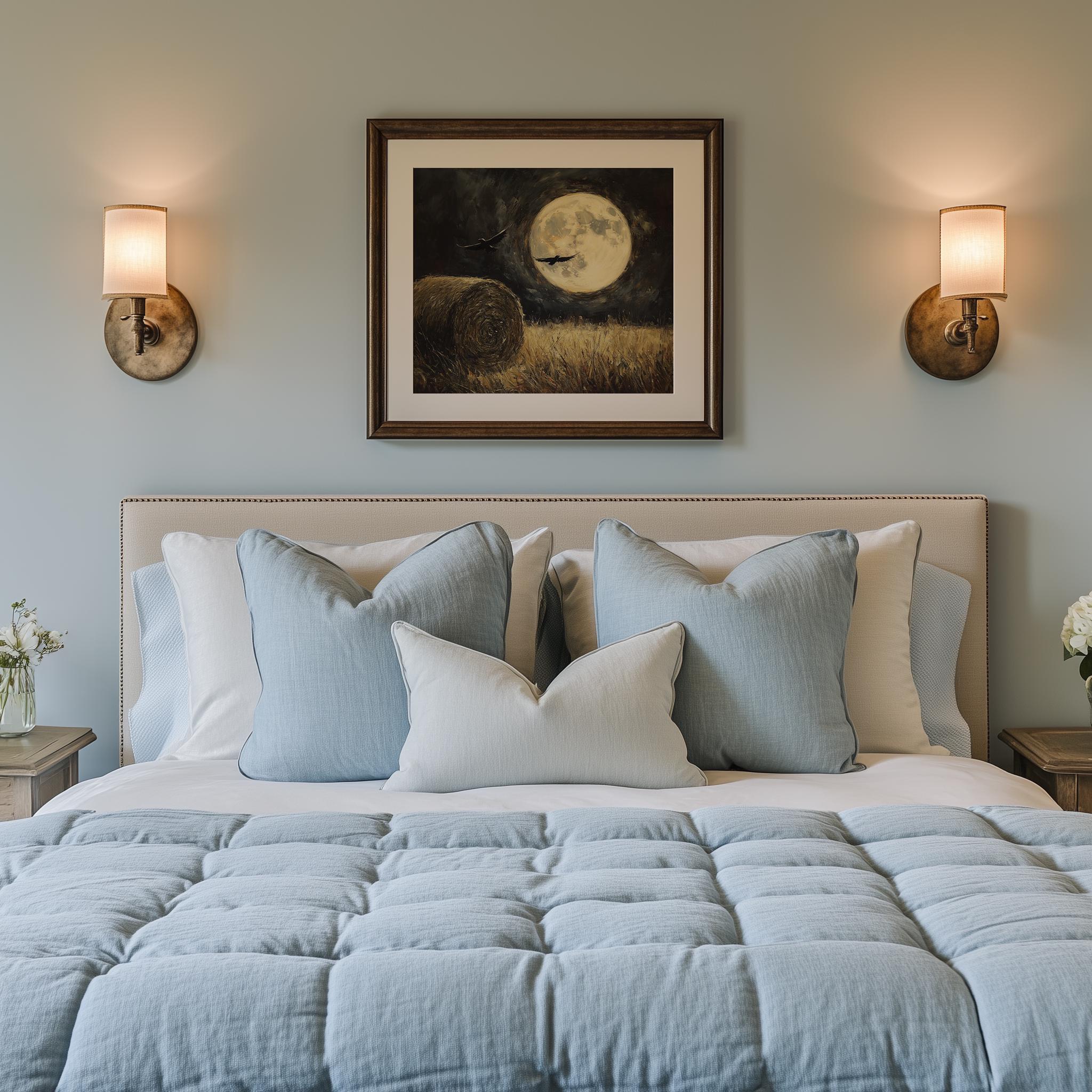 Moonlit Field Art Print: Rustic Cottagecore Landscape (Digital Download)