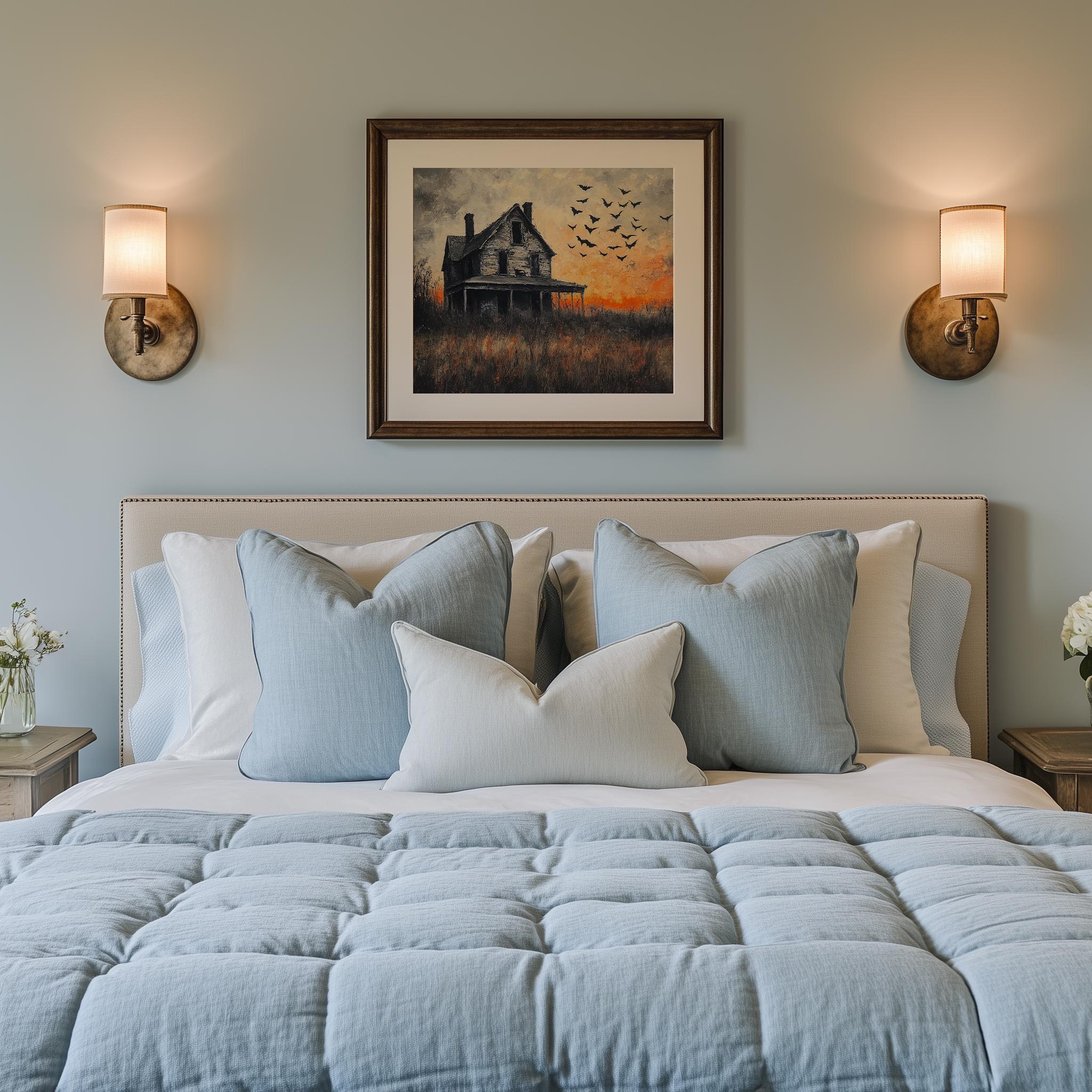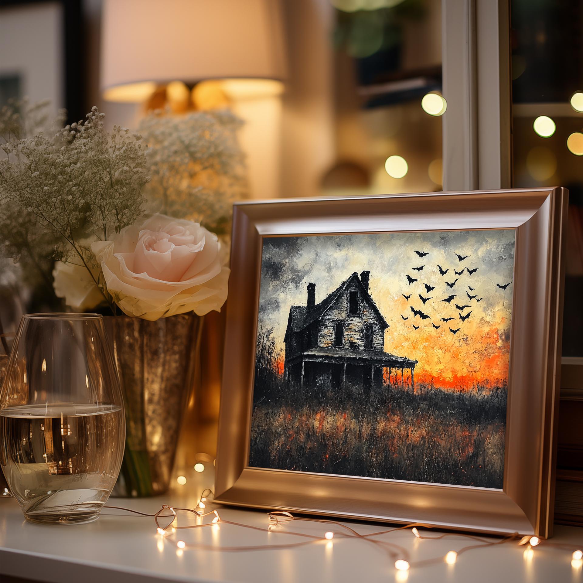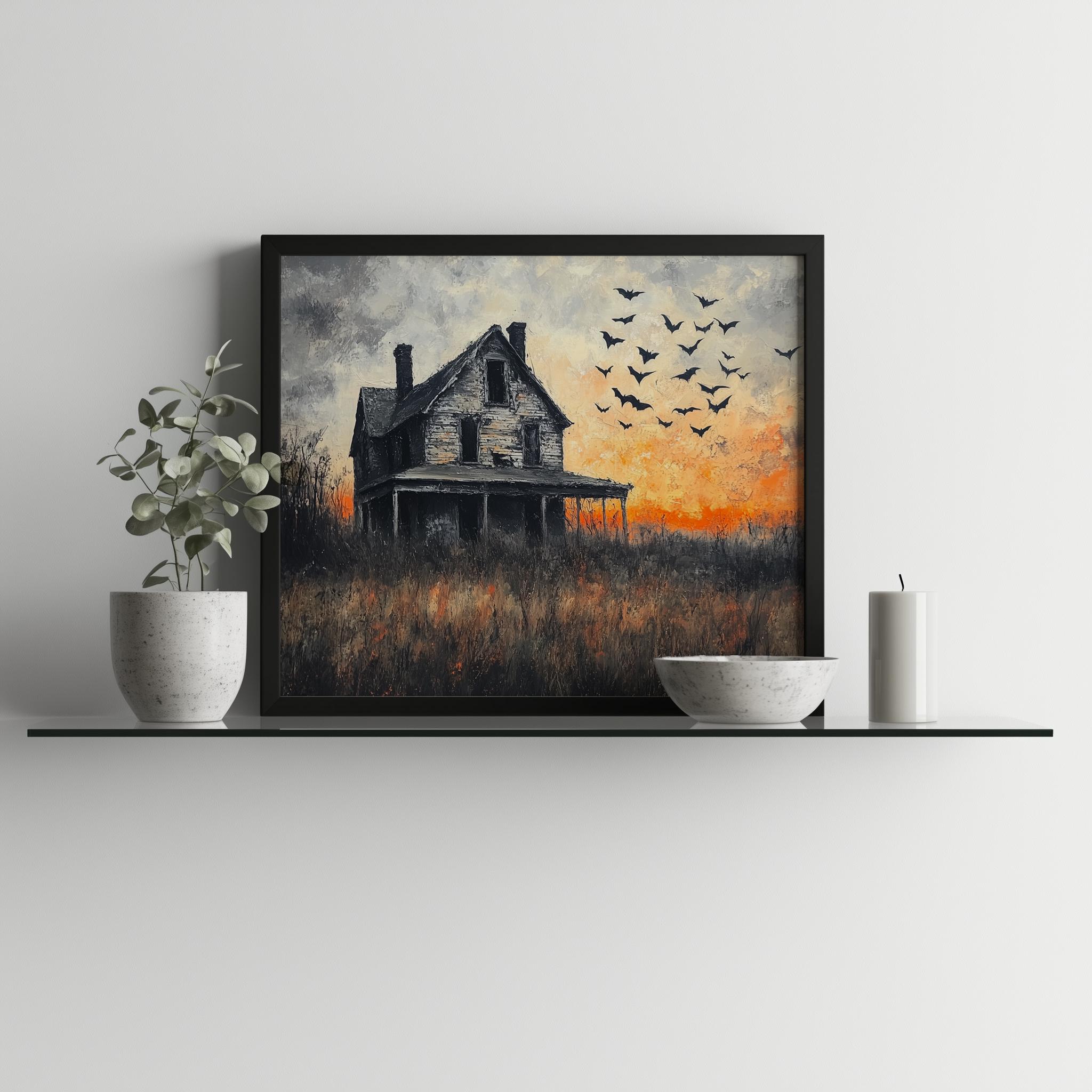 Rustic Autumn Farmhouse Scene - Printable Wall Art Immerse yourself in the tranquil beauty of an abandoned farmhouse at sunset with this stunning vintage landscape painting. Perfectly capturing the essence of countryside charm, this printable decor brings warmth and nostalgia to any space. Ideal for cottagecore enthusiasts and those who appreciate rustic aesthetics, this artwork invites a sense of peace and reflection into your home. Autumn