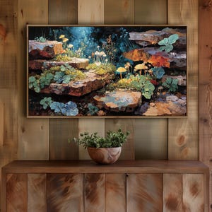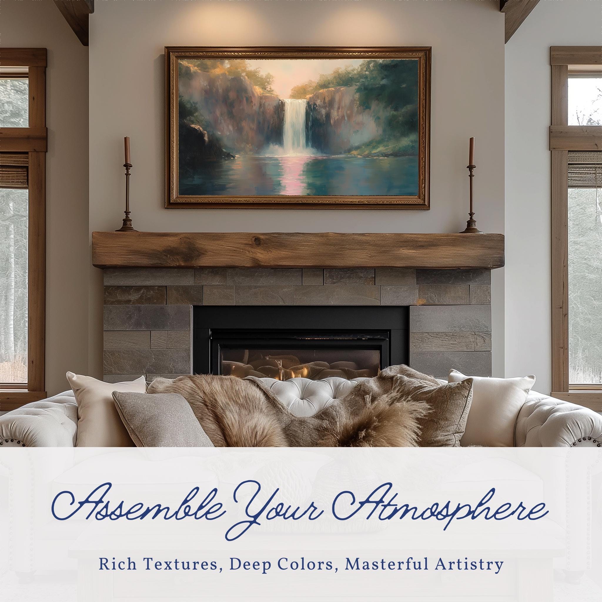 Rustic Waterfall Landscape Frame TV Art Transform your living space with this breathtaking depiction of nature's serenity, featuring a stunning waterfall surrounded by lush greenery. This oil painting captures the essence of tranquil wilderness, creating a peaceful atmosphere that complements any cozy home decor. Perfect for enhancing your Frame TV, this digital download offers a unique way to showcase the beauty of autumn landscapes. Autumn
