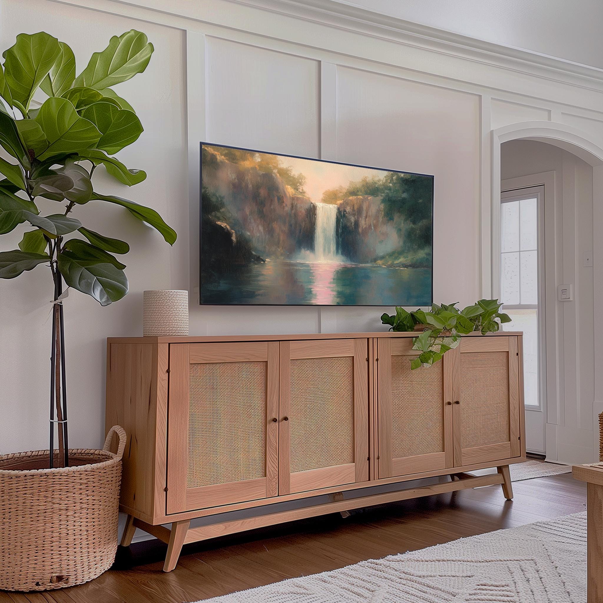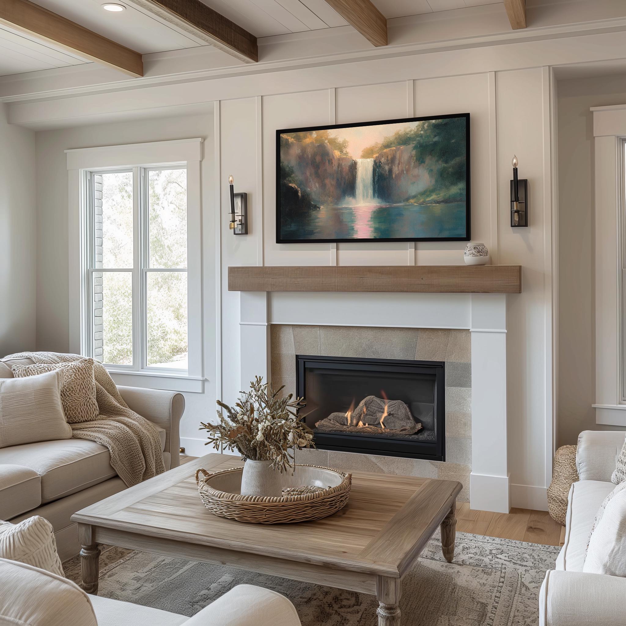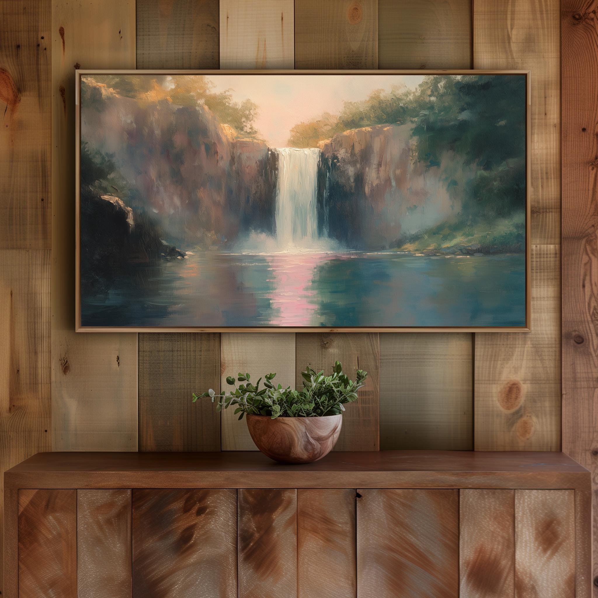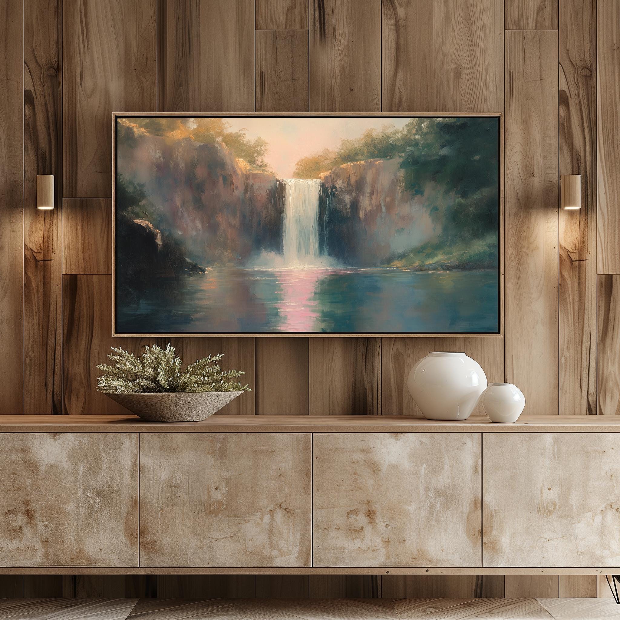 Rustic Waterfall Landscape Frame TV Art: Serene Nature Painting (Digital Download)