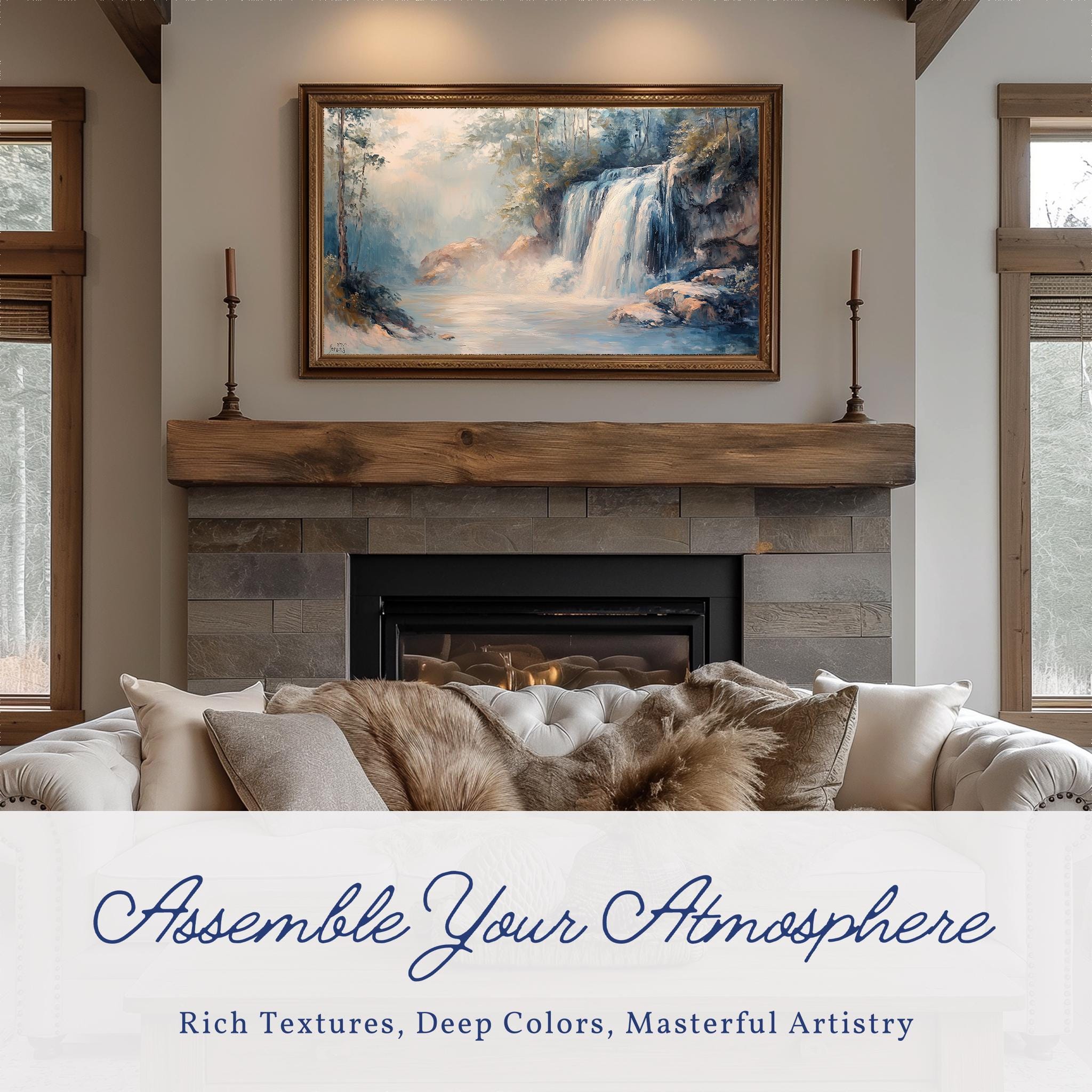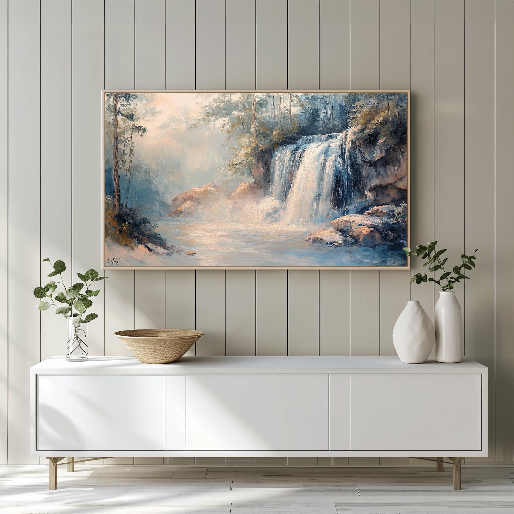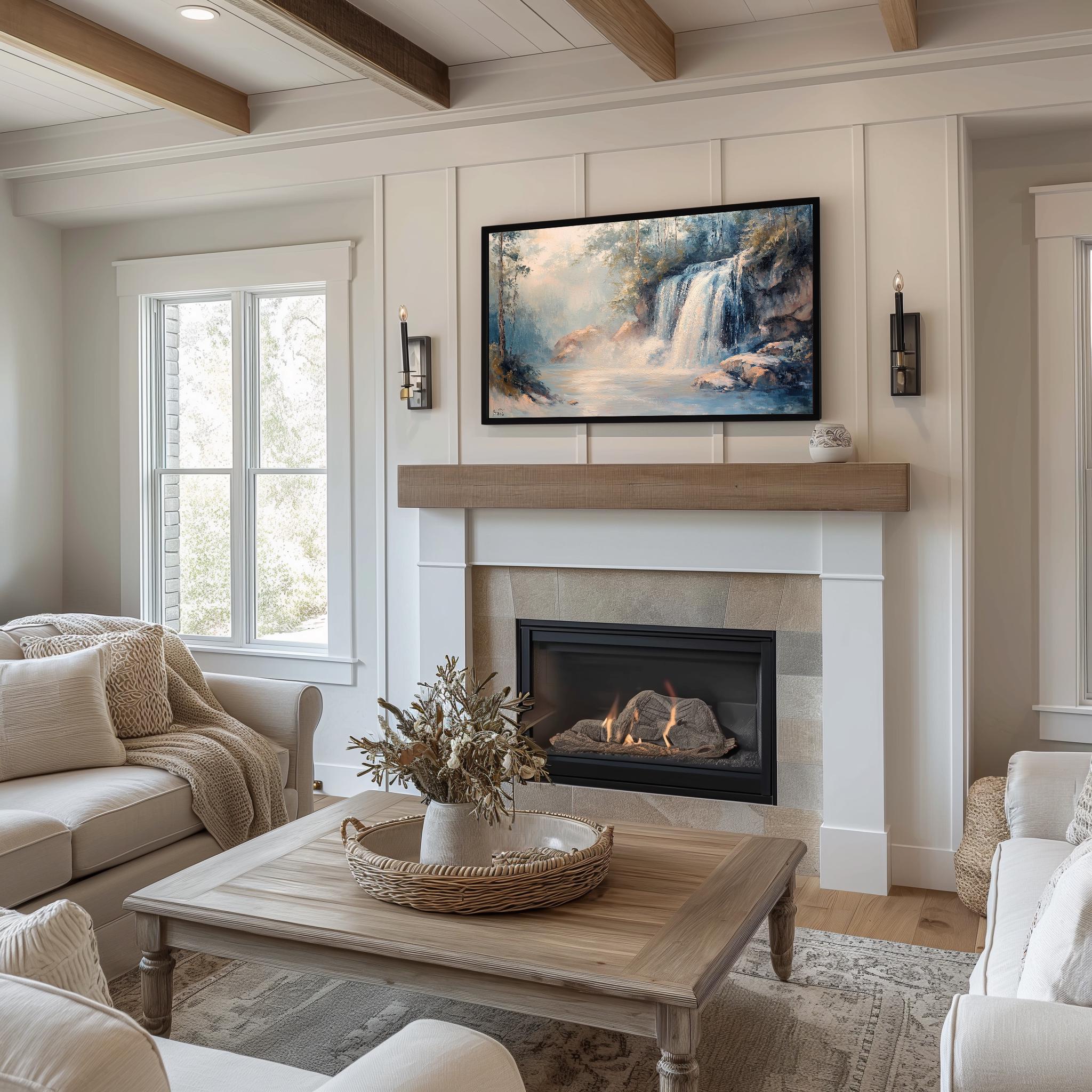 Cascading Waterfall TV Art - A Serene Escape into Nature Transform your living space with this exquisite Rustic Nature Oil Painting, featuring a breathtaking Rocky Landscape that brings the beauty of the outdoors into your home. Perfect for Frame TVs, this digital download allows you to effortlessly showcase stunning art that enhances your decor while providing a calming atmosphere. Perfect for every season, this art piece adds a refreshing touch to your home all year round.