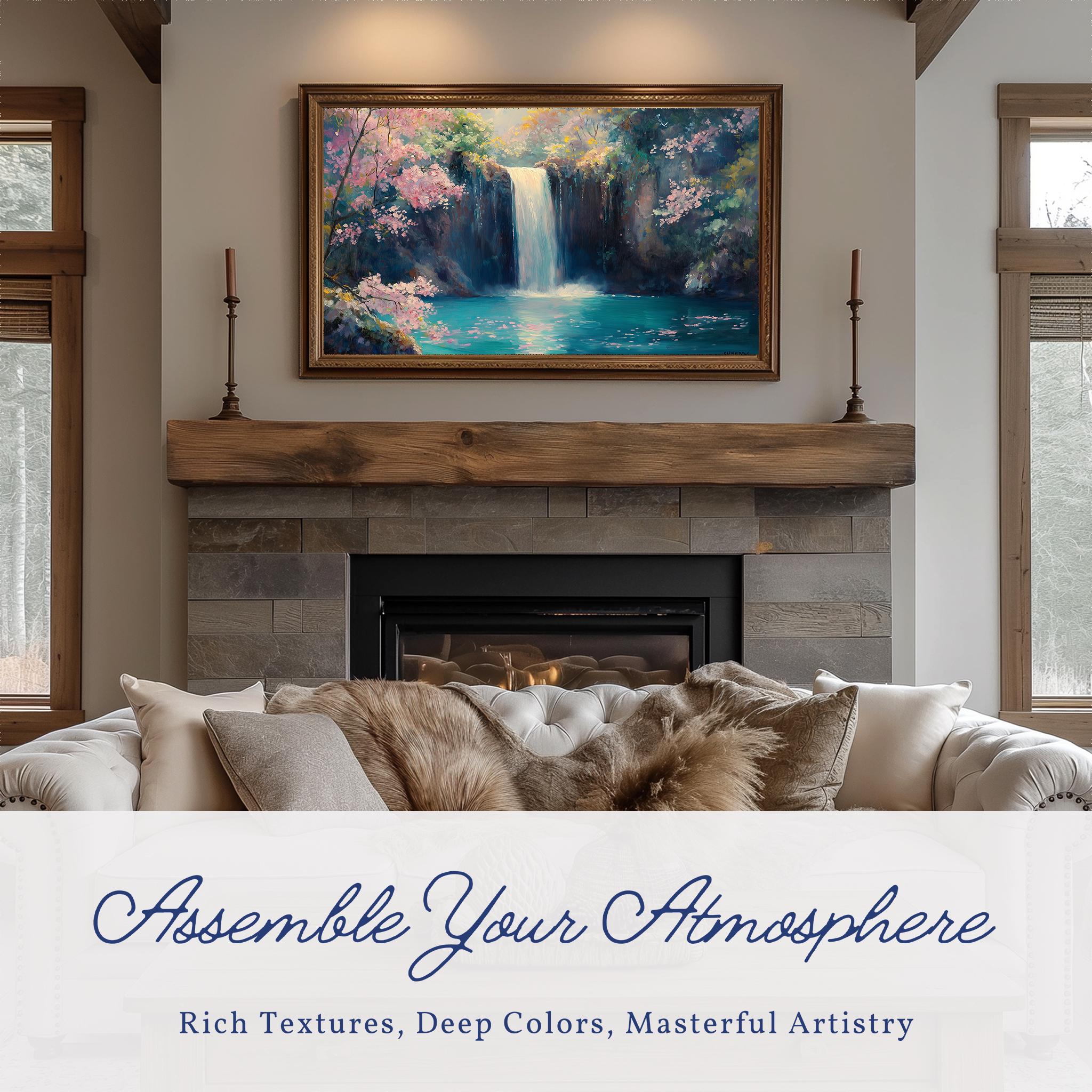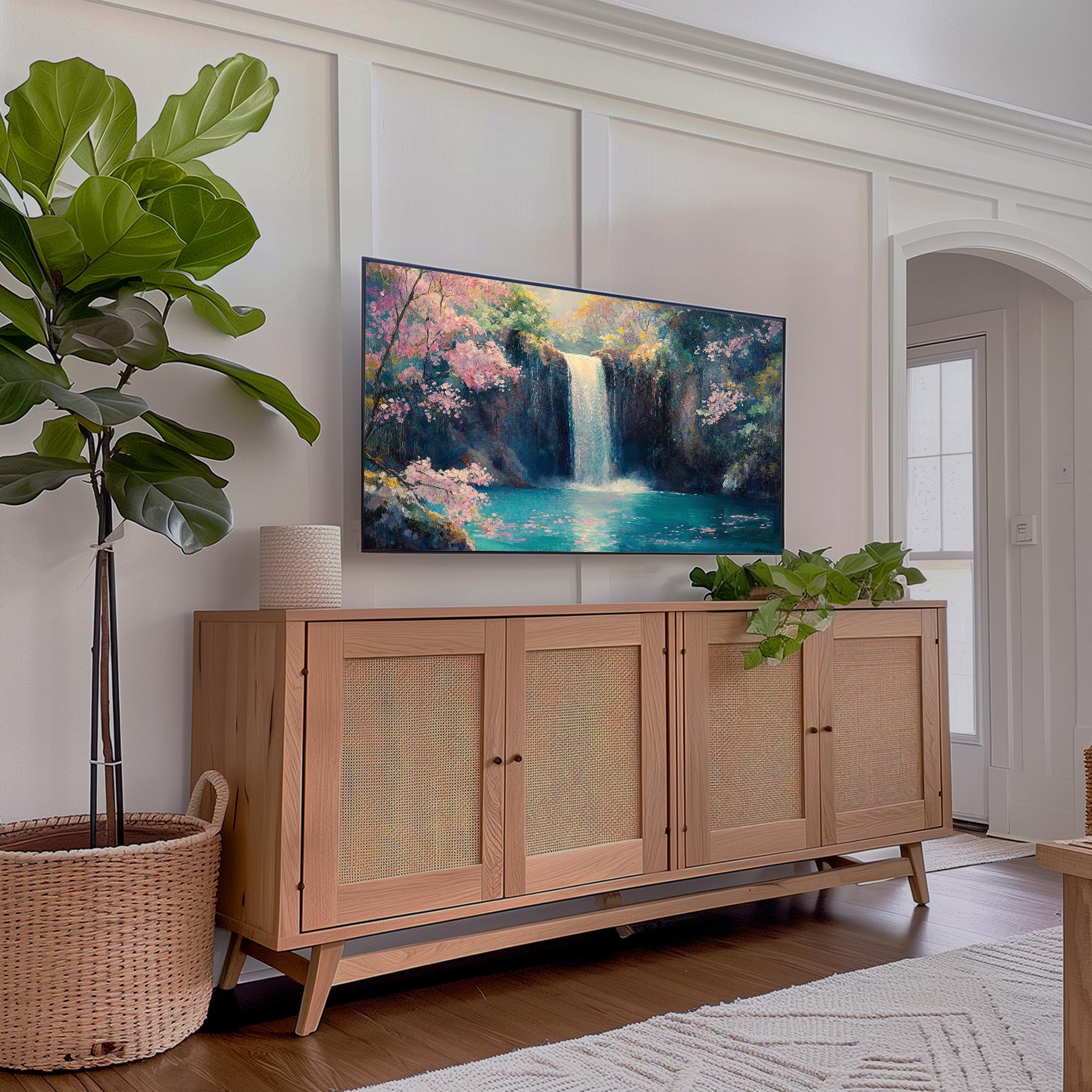 Waterfall Oil Painting Frame TV Art - A Serene Escape for Your Home Transform your living space with this stunning Waterfall Oil Painting Frame TV Art, designed to bring the tranquility of nature indoors. Featuring a tall waterfall scene, this piece captures the essence of peaceful landscapes, making it an ideal addition to your decor. Perfect for Samsung Frame TVs, this digital download allows you to enjoy a beautifully crafted nature painting that enhances your wall decor and creates a calming atmosphere. Perfect for all seasons, this art piece adds a refreshing touch to your home decor year-round.