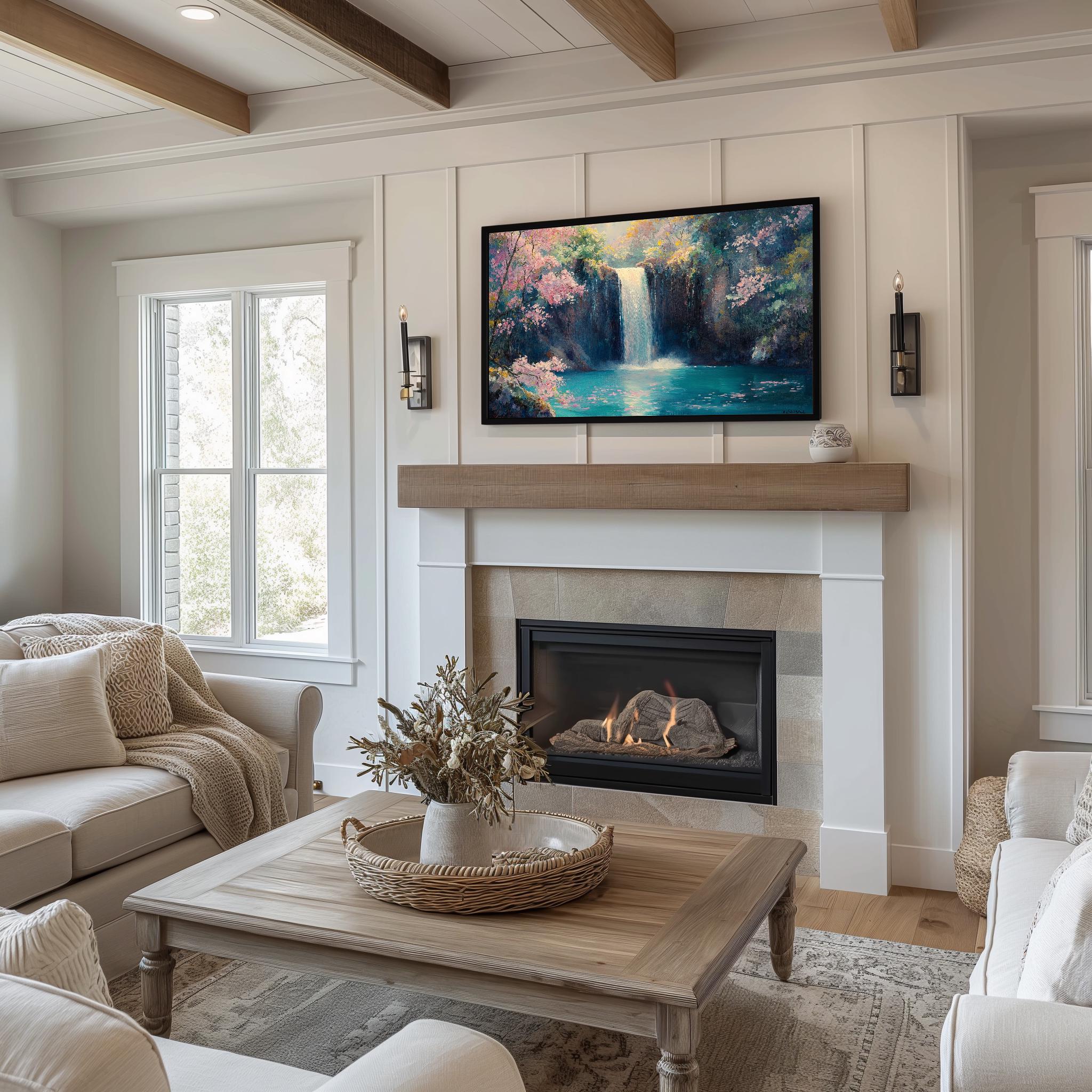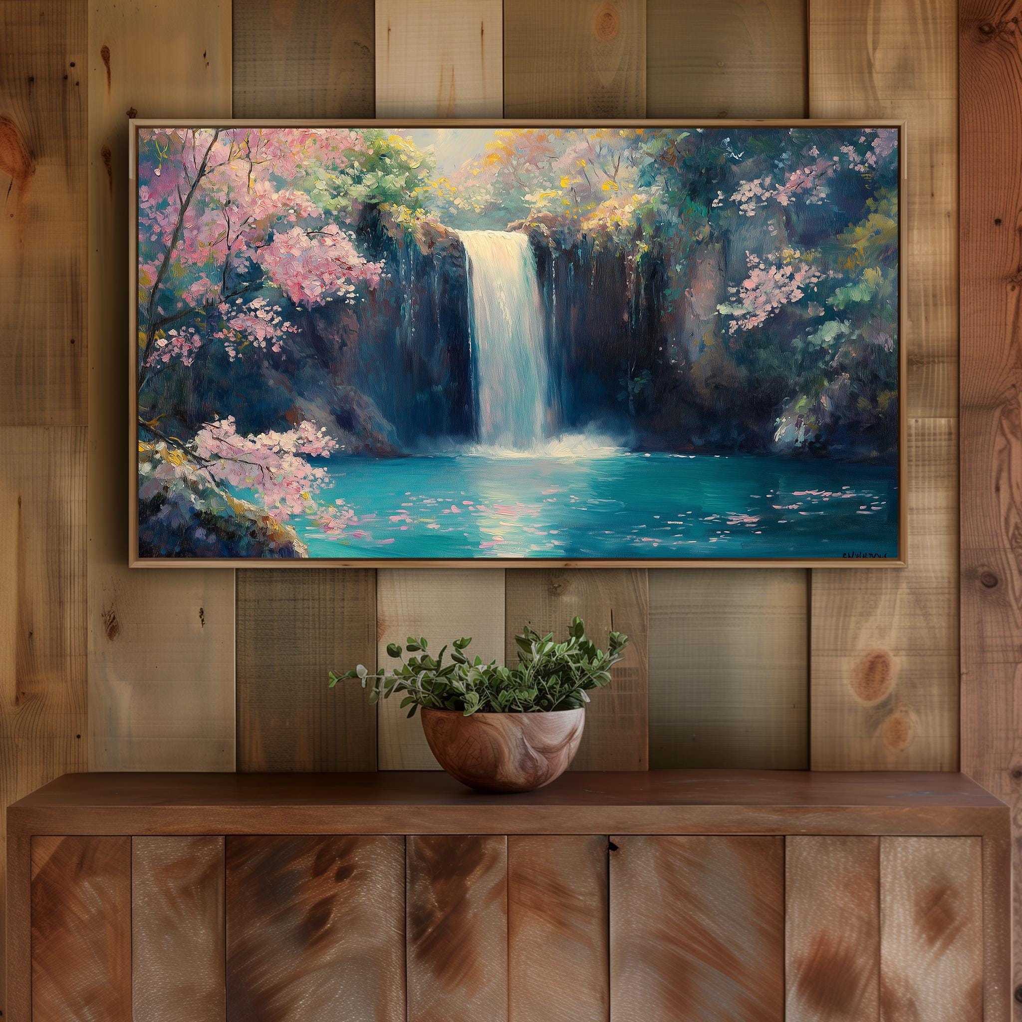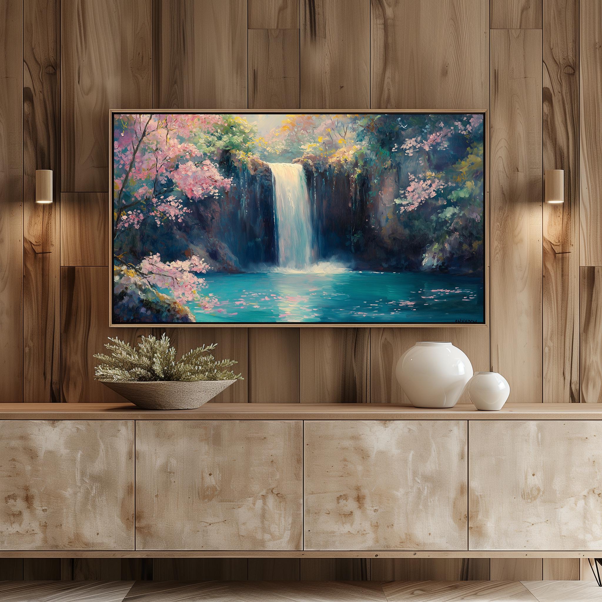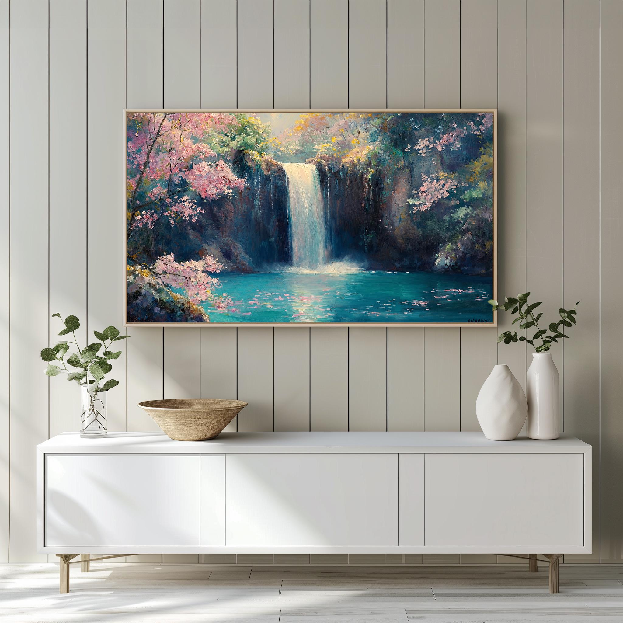 Waterfall Oil Painting: Peaceful Nature Scene for Samsung Frame TV (Digital Download)