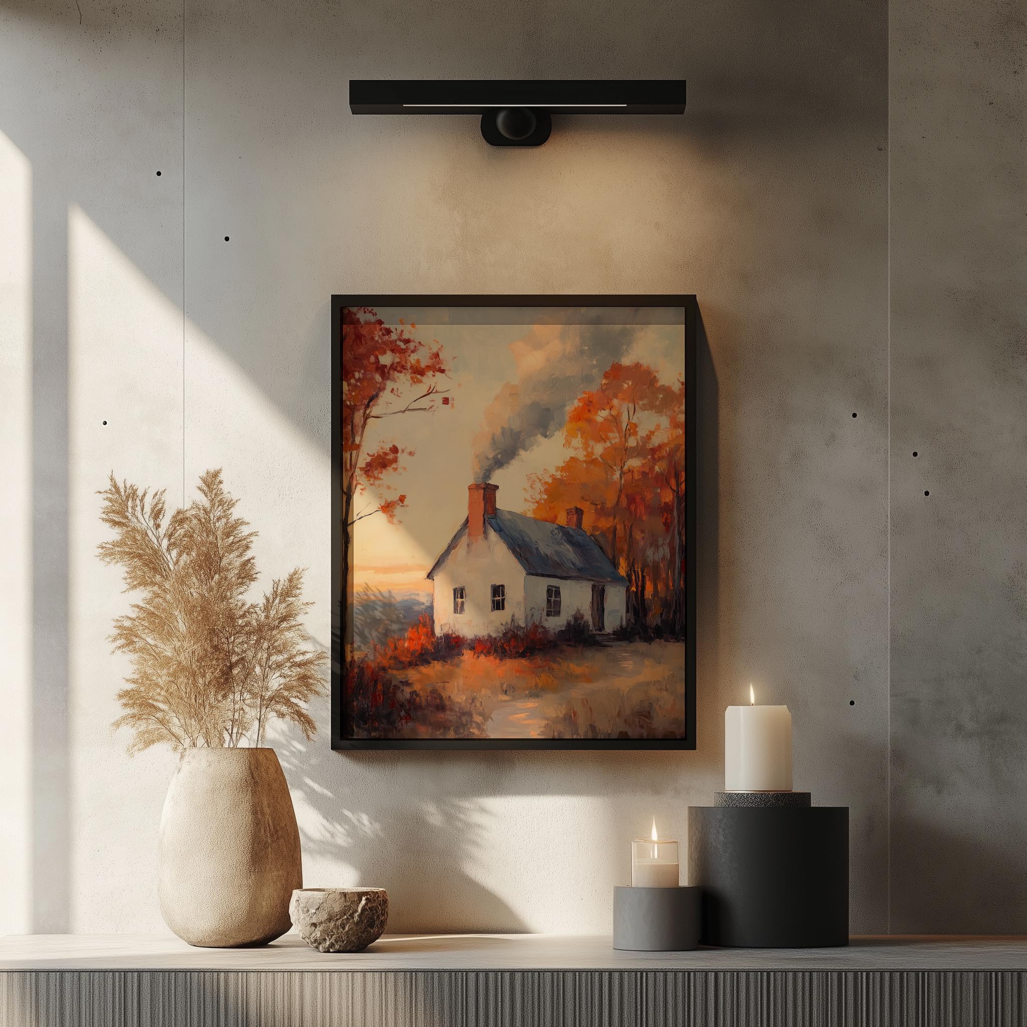 Rustic Autumn Cottage Painting - Cozy Countryside Cottage Scene, Printable Fall Wall Art Immerse yourself in the charm of the countryside with this enchanting Rustic Autumn Cottage Painting. Featuring a cozy cottage nestled in a vibrant fall landscape, this artwork captures the essence of autumn with its rich colors and vintage appeal. Perfect for adding a touch of warmth to your home, this digital print is ideal for seasonal decor enthusiasts and lovers of rustic aesthetics alike. Ideal for framing or displaying as a statement piece, it brings the beauty of nature indoors. Autumn